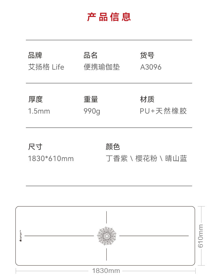 艾扬格 life A3096便携瑜伽垫1.5MM薄垫旅行户外可随意折叠瑜伽垫