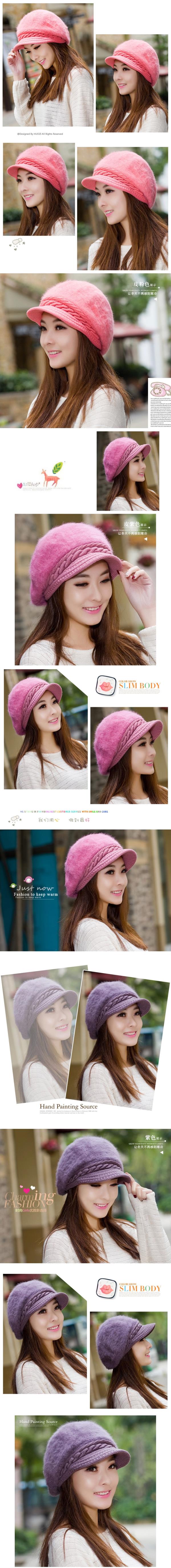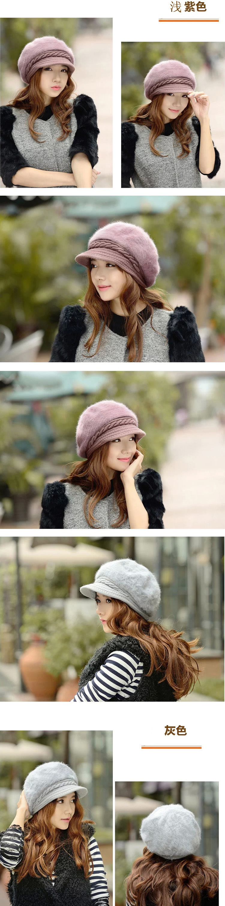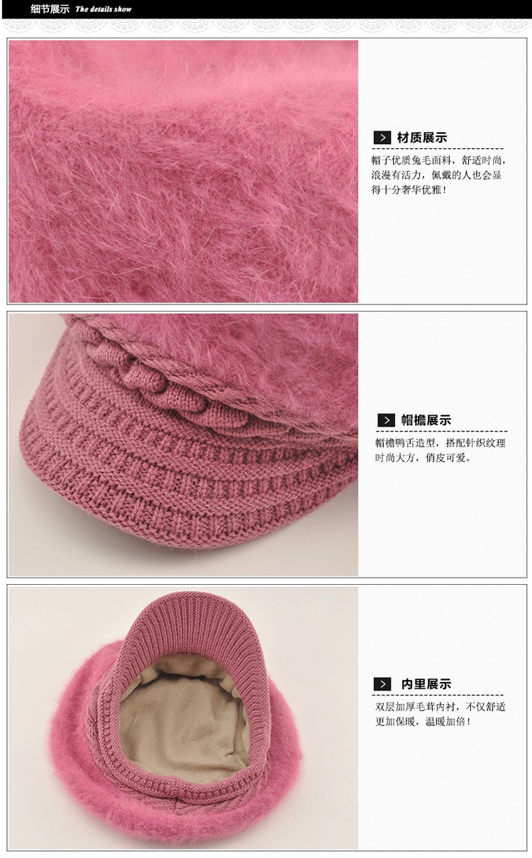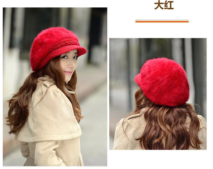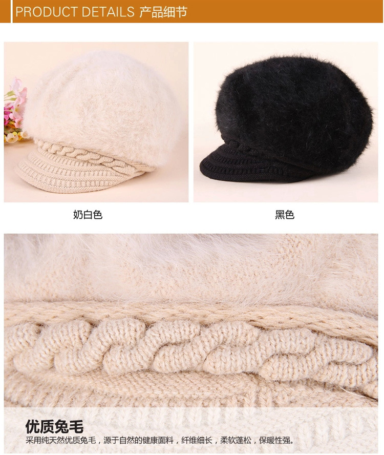 雀说冬季款女士针织贝雷帽韩版秋加厚兔毛帽子加绒护耳鸭舌帽子批发ALW01