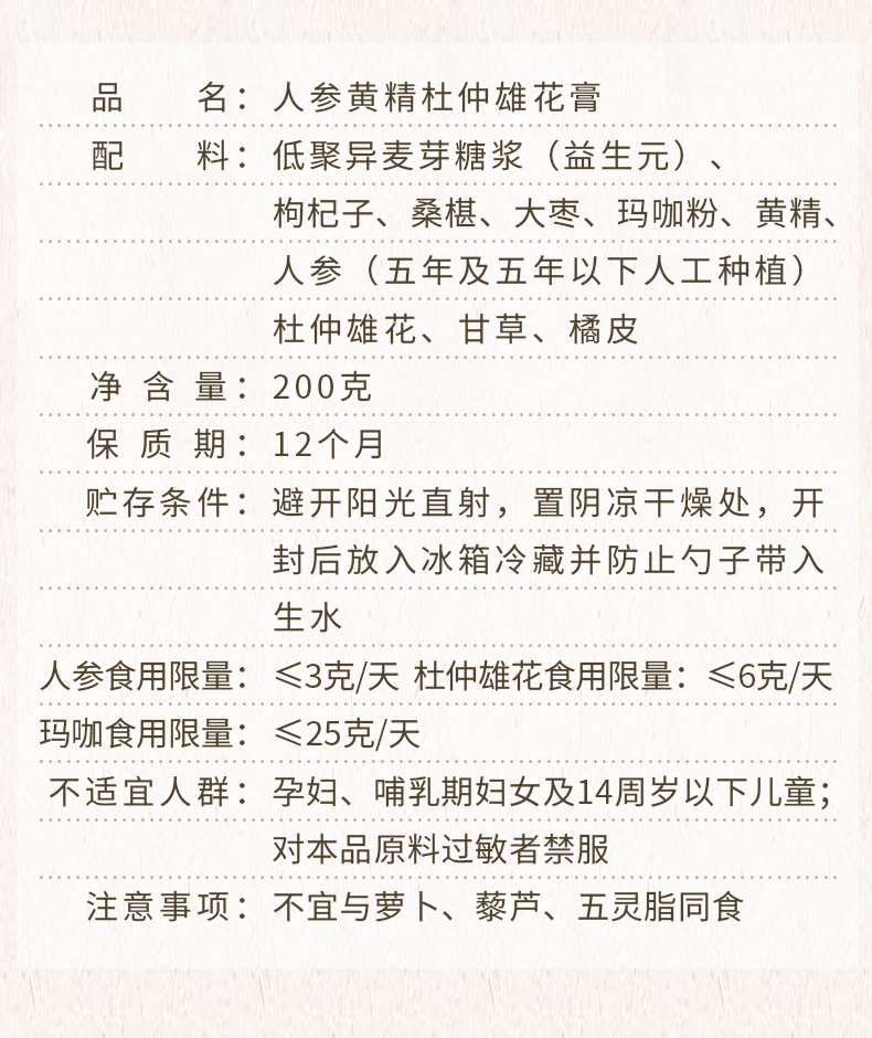 【长白山人参】黄精杜仲雄花膏滋200g