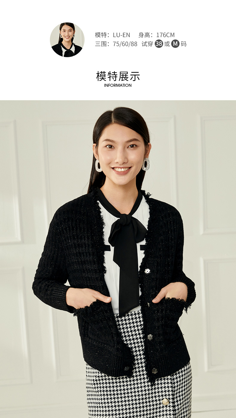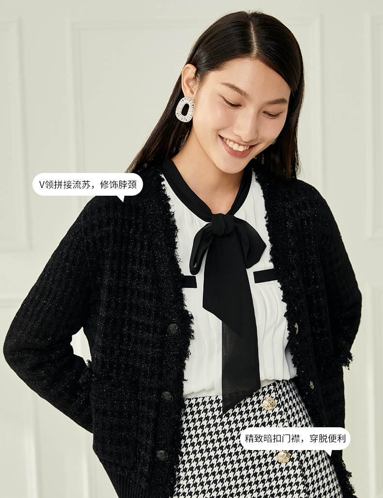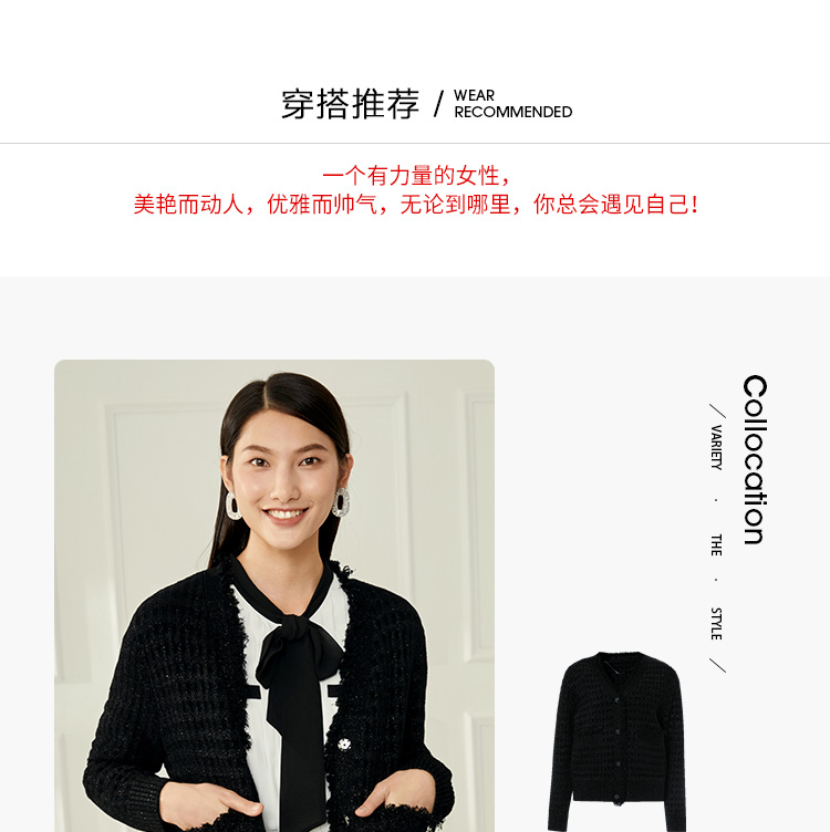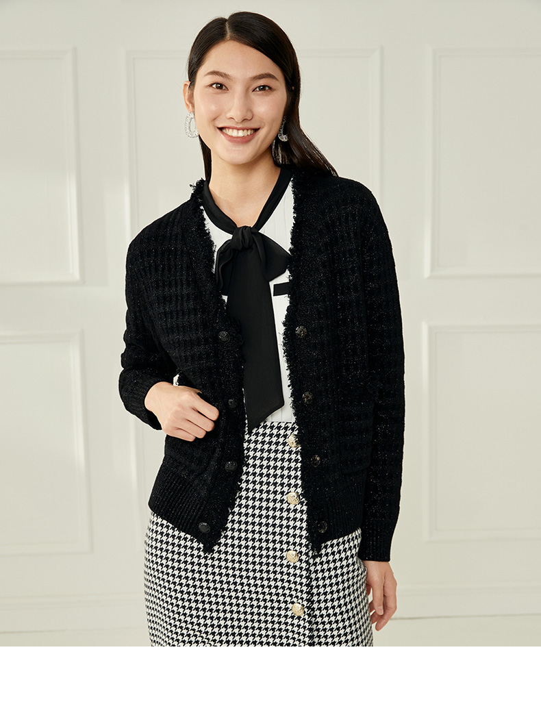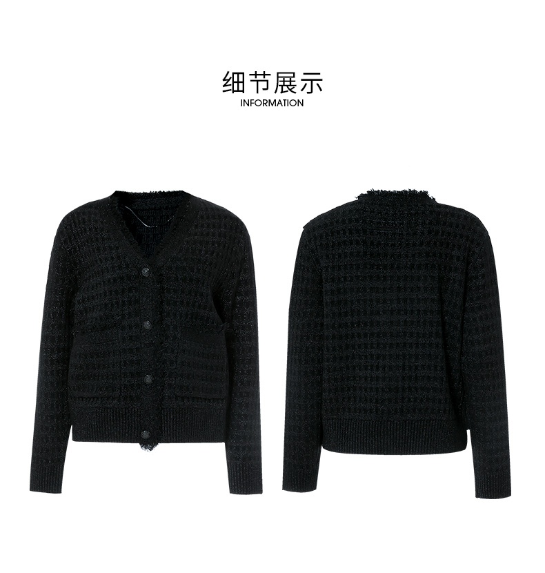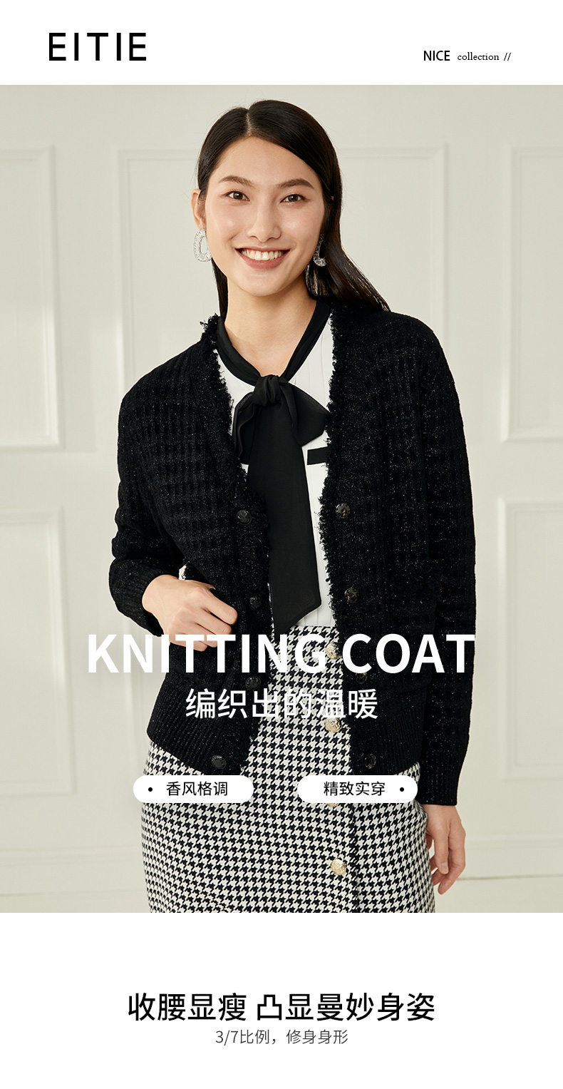 EITIE爱特爱冬季新款款时尚百搭纯色V领针织衫短外套女6801524