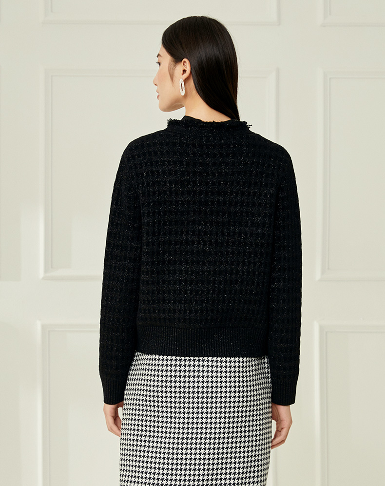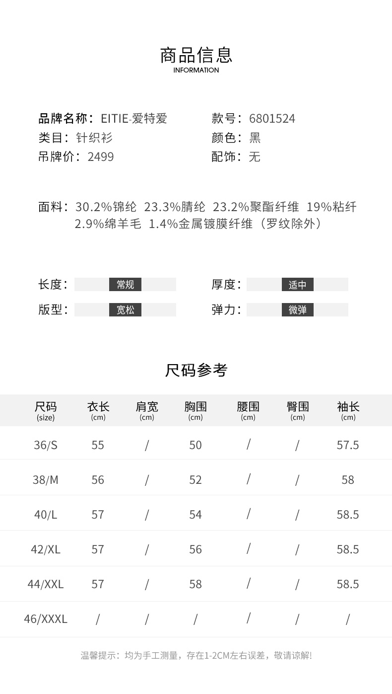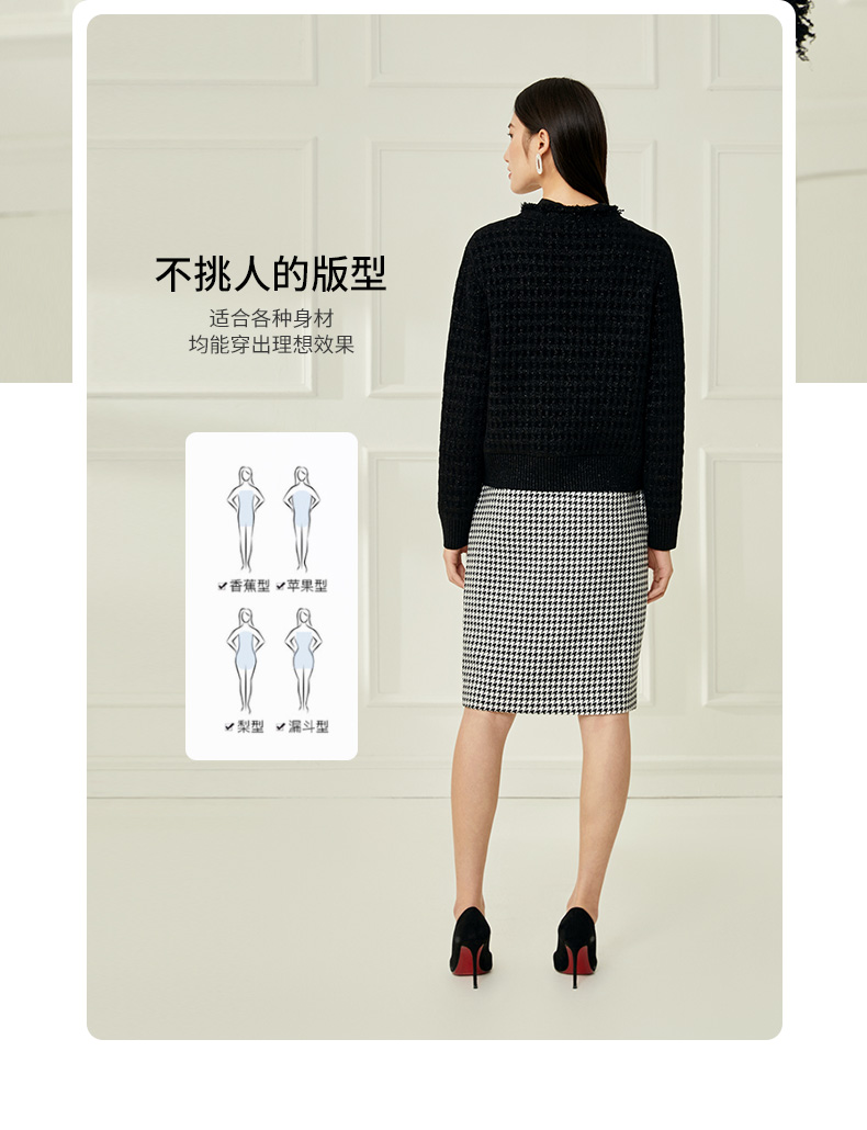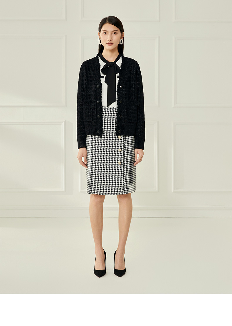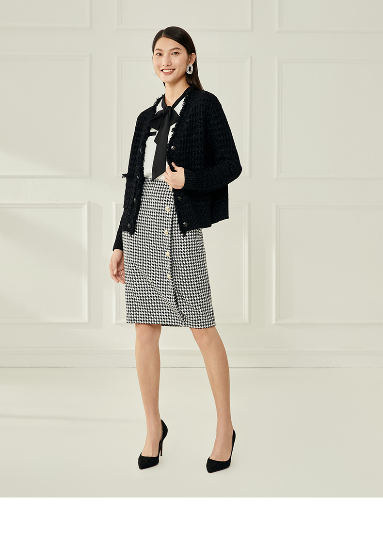 EITIE爱特爱冬季新款款时尚百搭纯色V领针织衫短外套女6801524