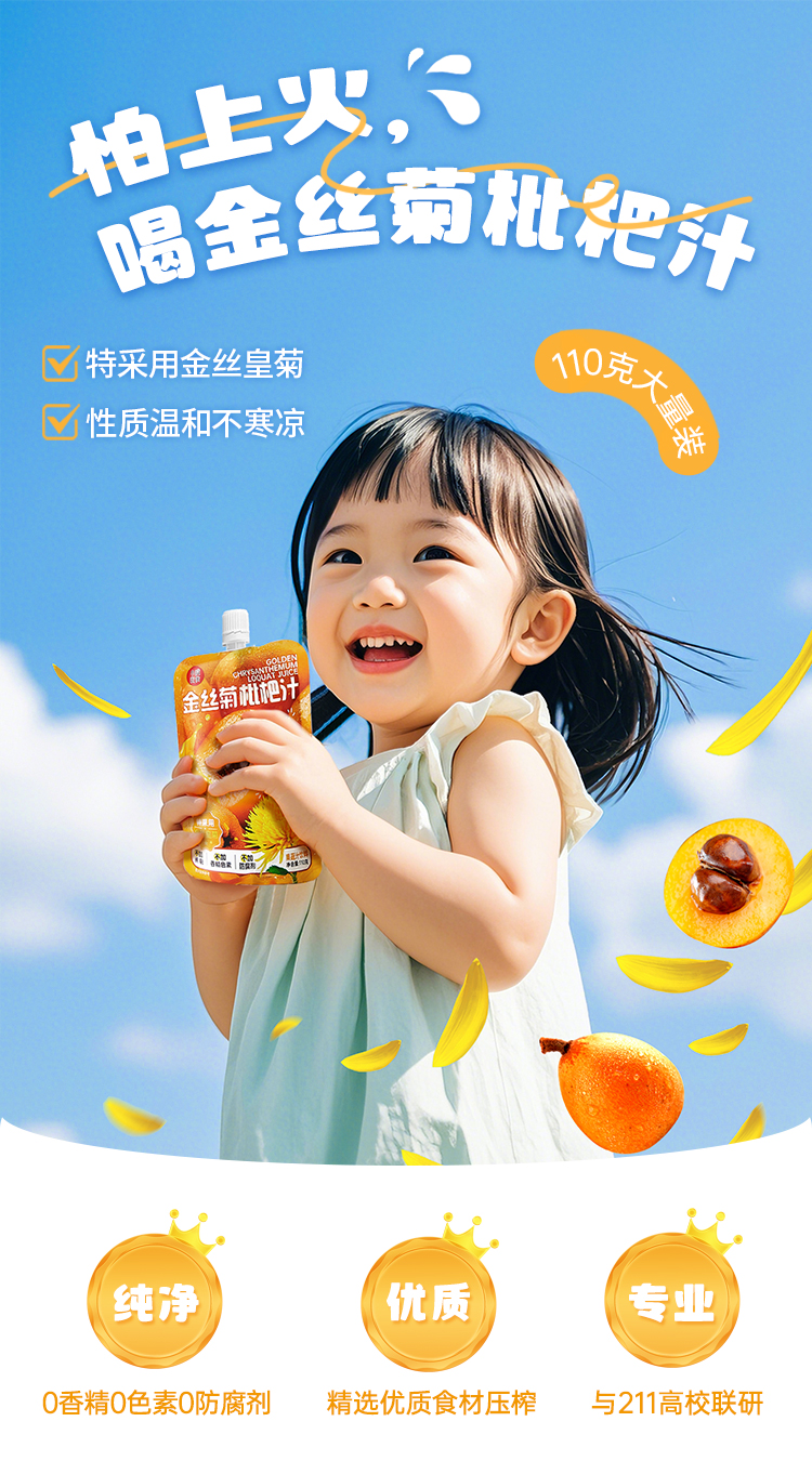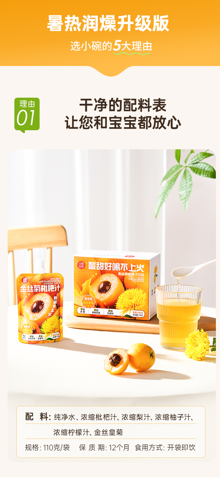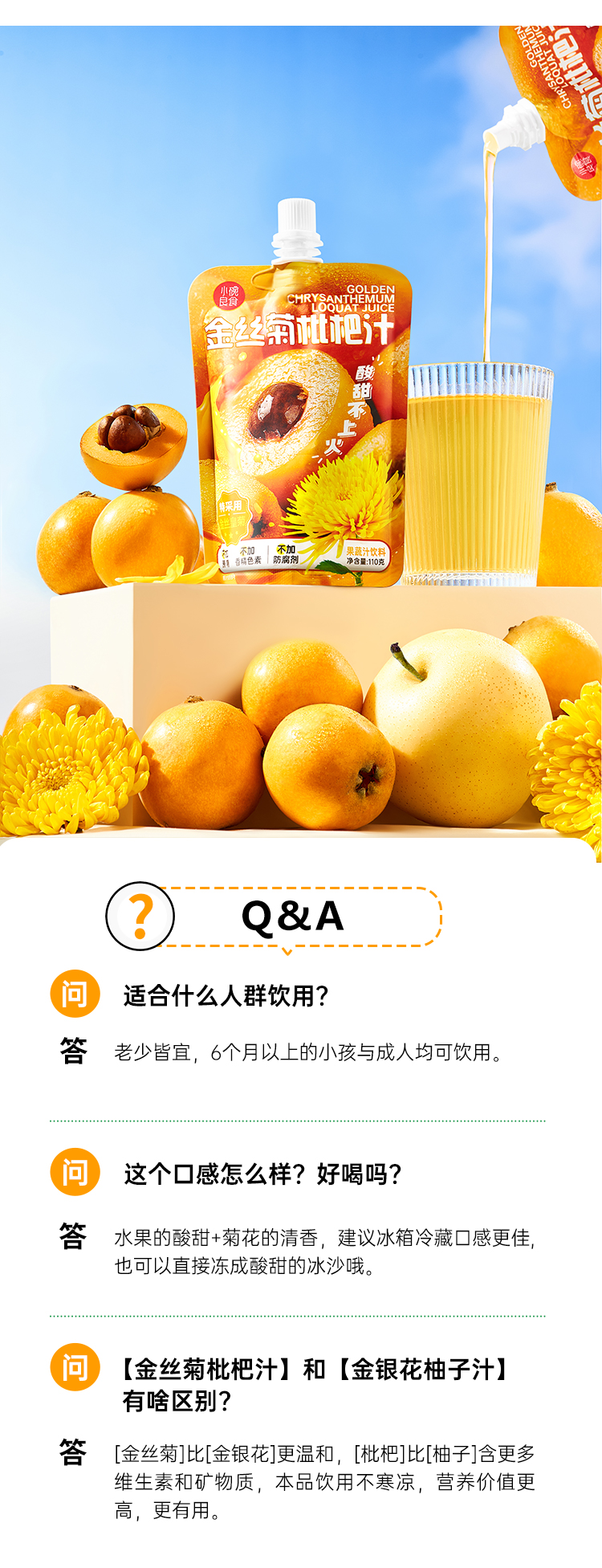金丝菊枇杷汁:纯净水、浓缩枇杷汁、浓缩梨汁、浓缩柚子汁、浓缩柠檬汁、金丝菊皇