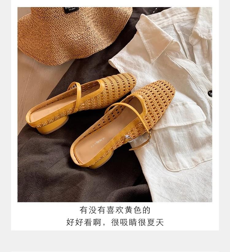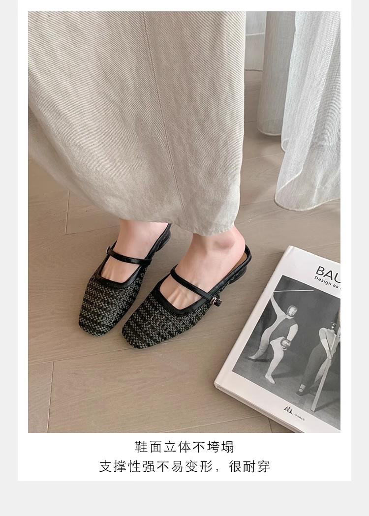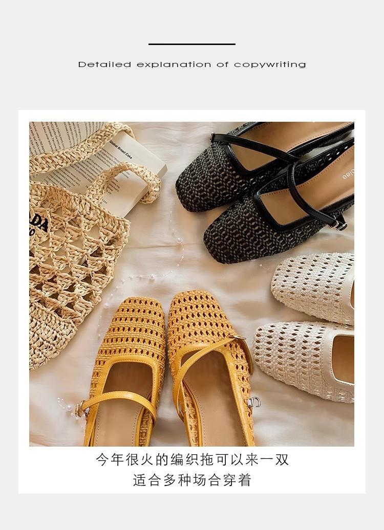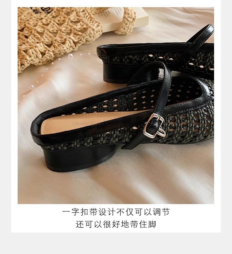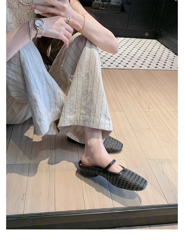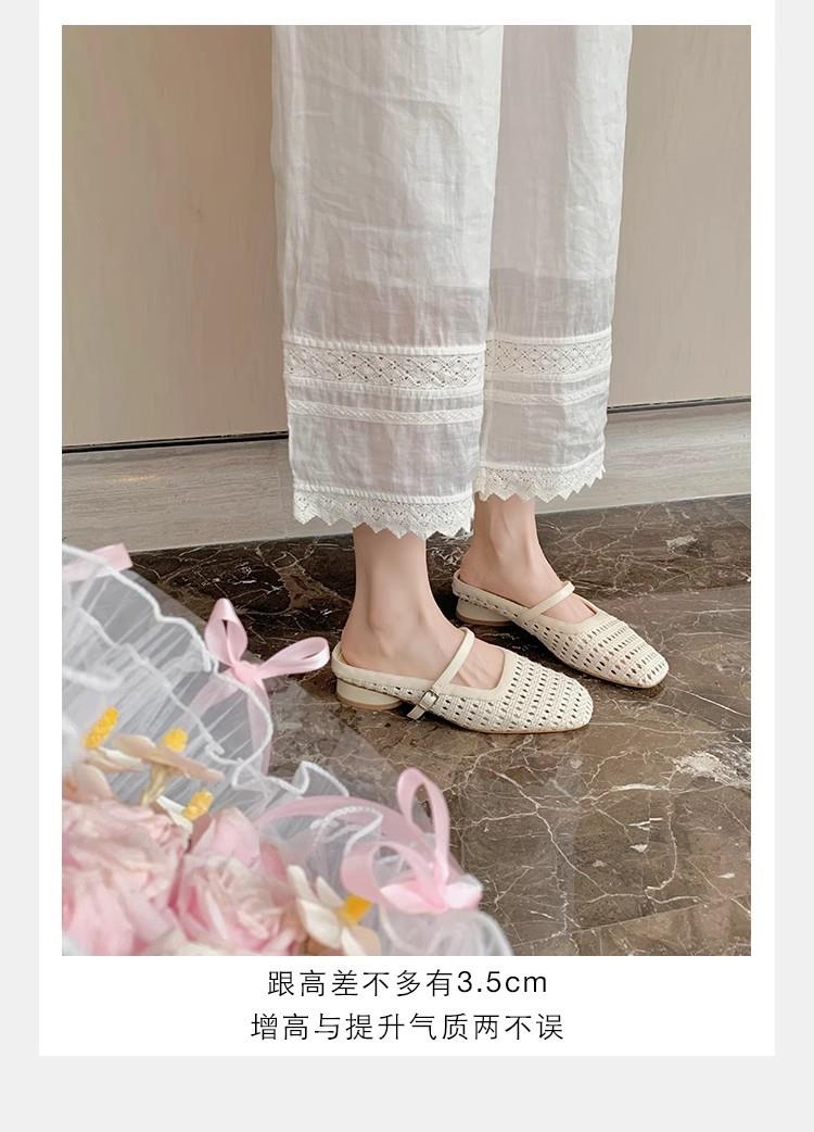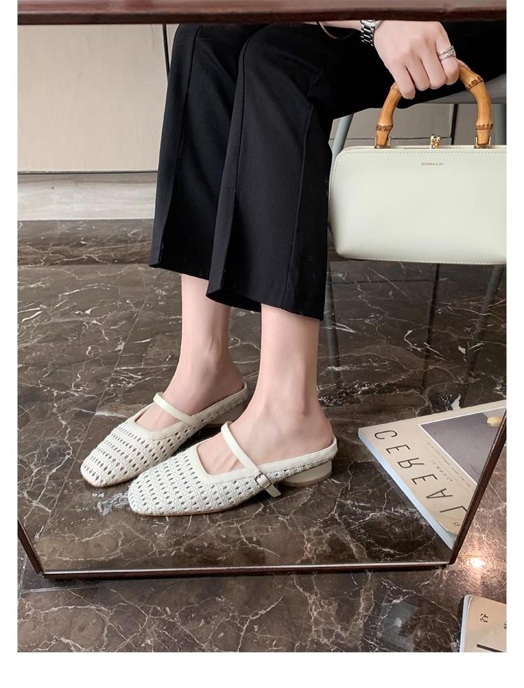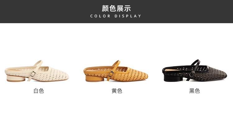 复古编织镂空方头一字带粗跟凉拖穆勒半拖鞋女夏新款