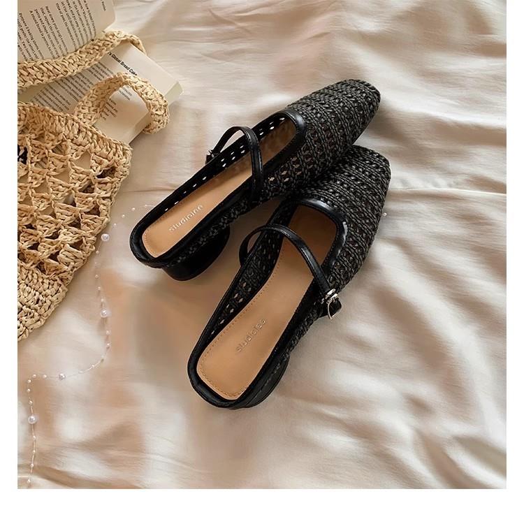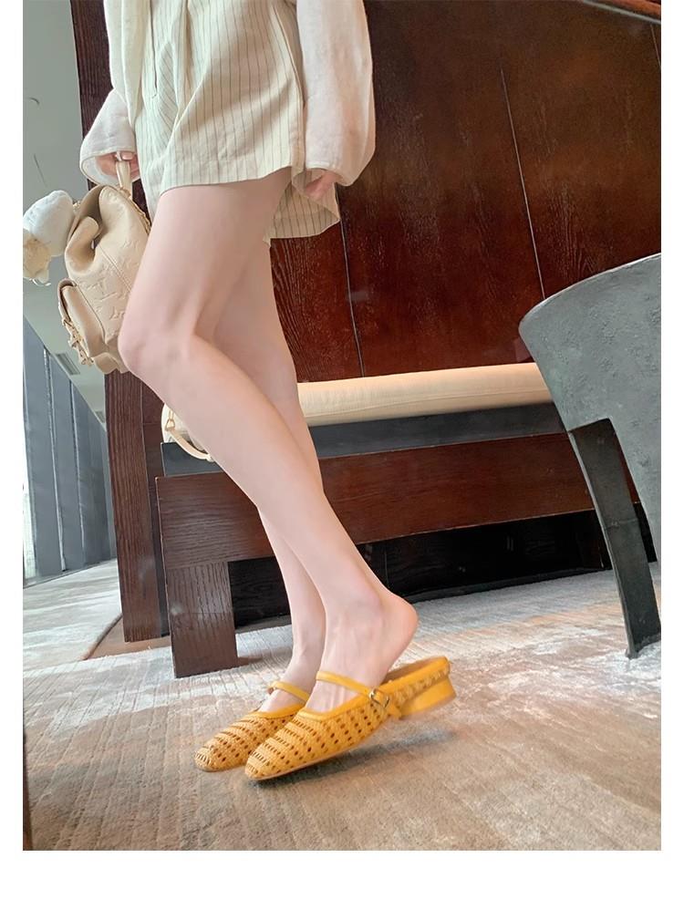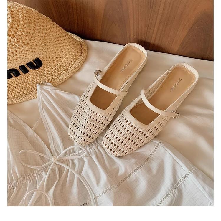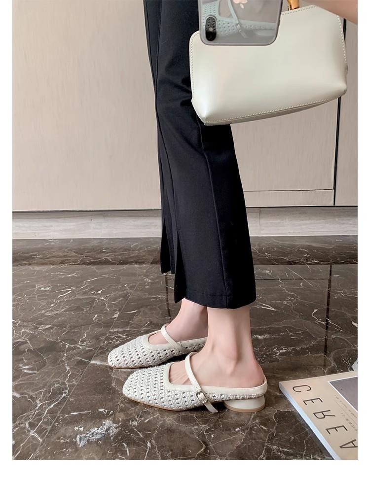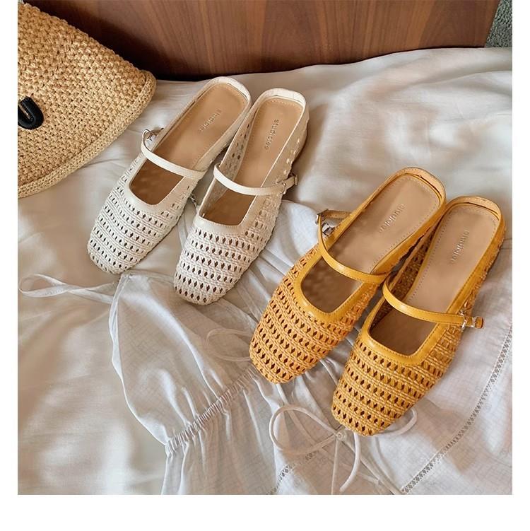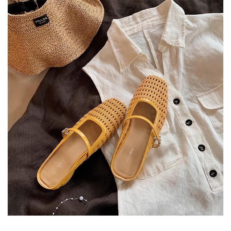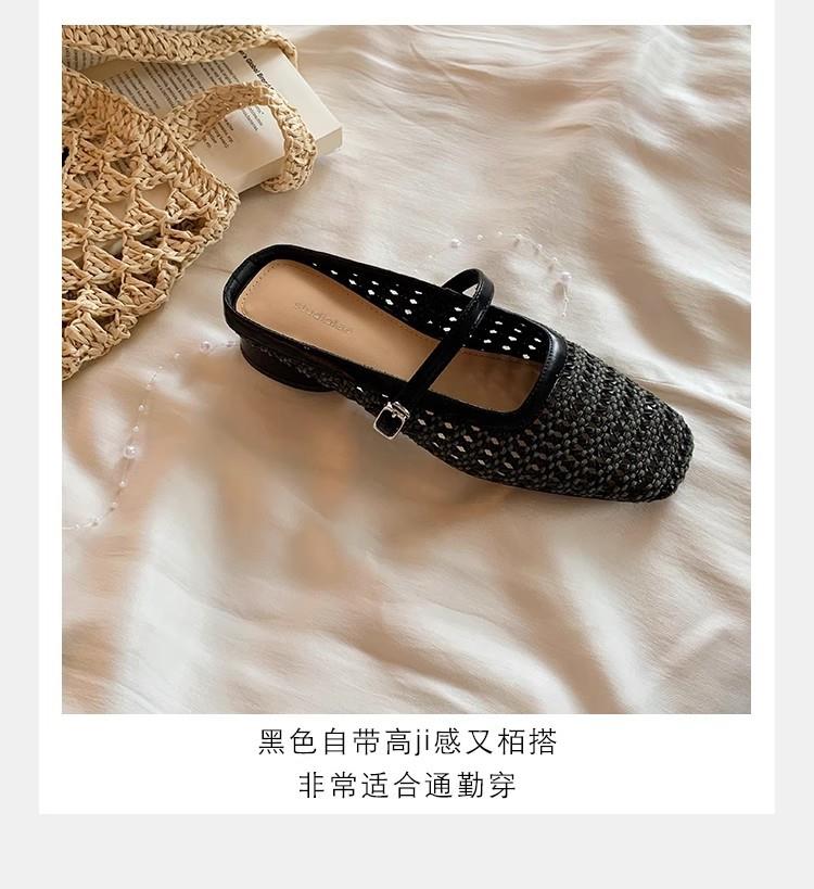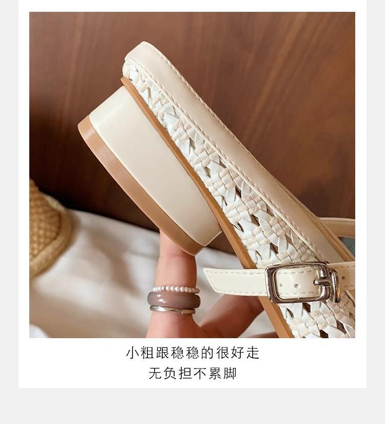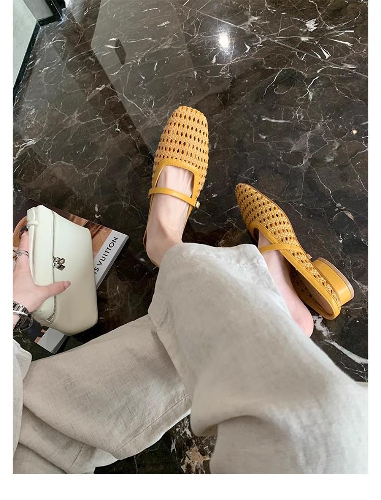 复古编织镂空方头一字带粗跟凉拖穆勒半拖鞋女夏新款