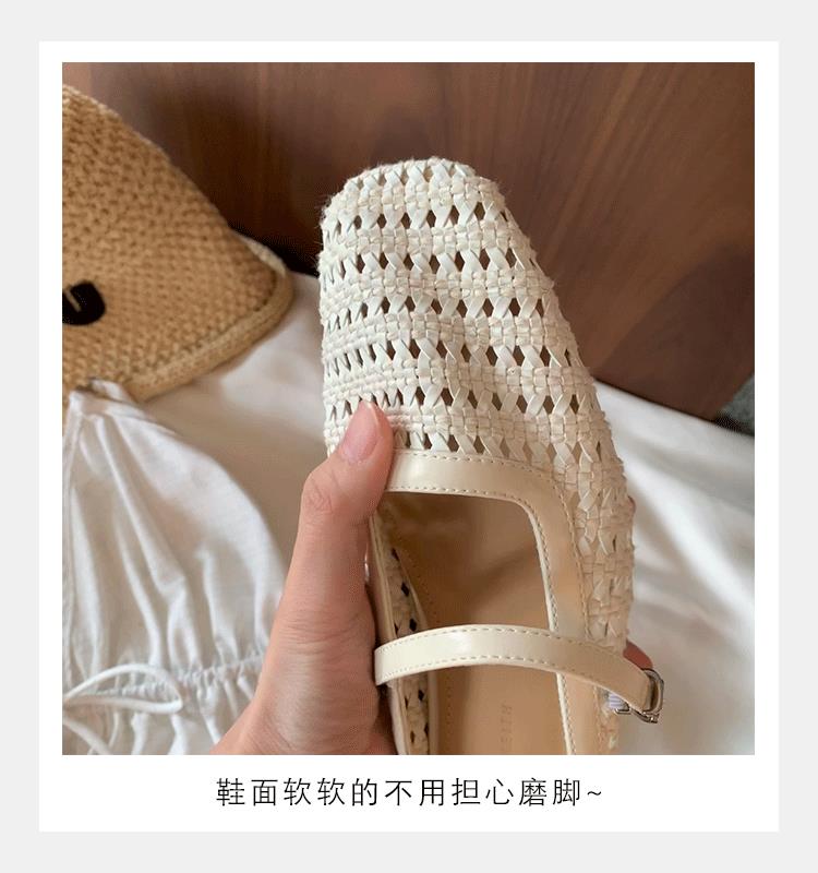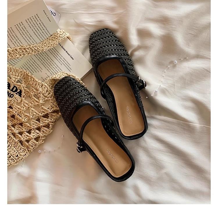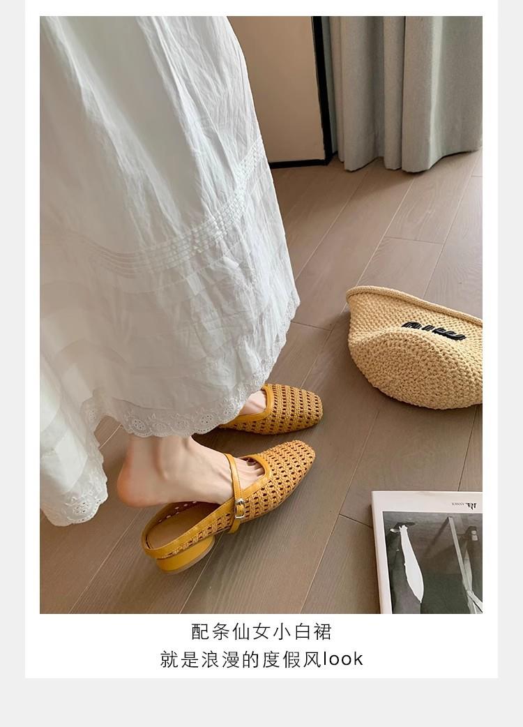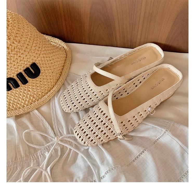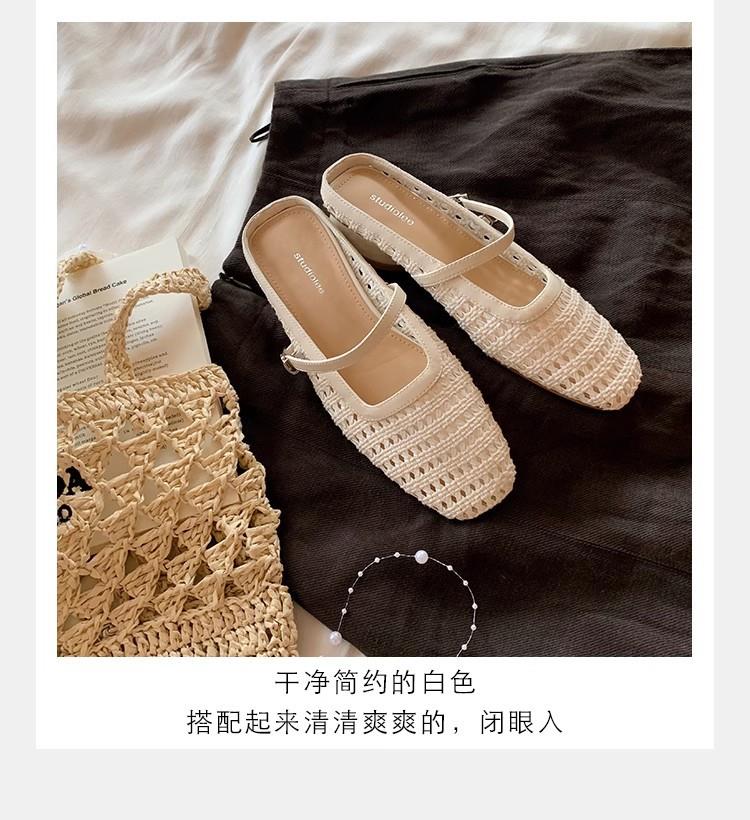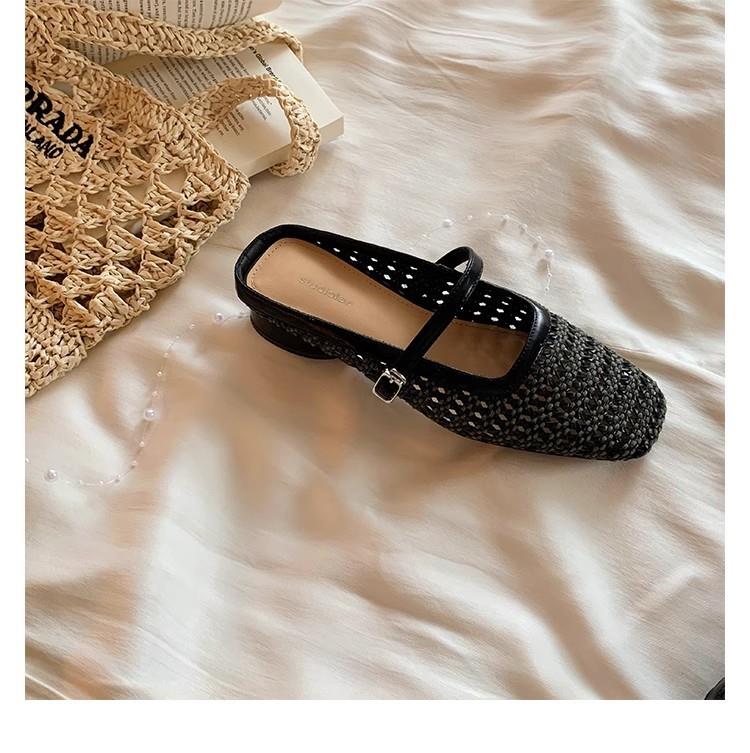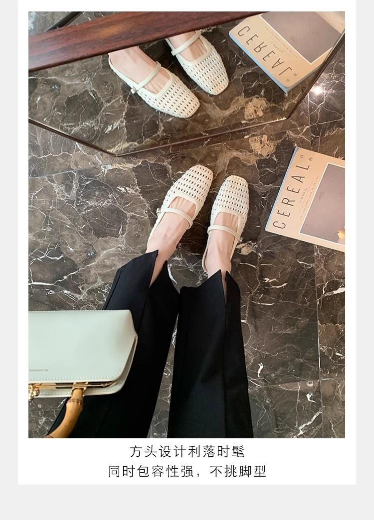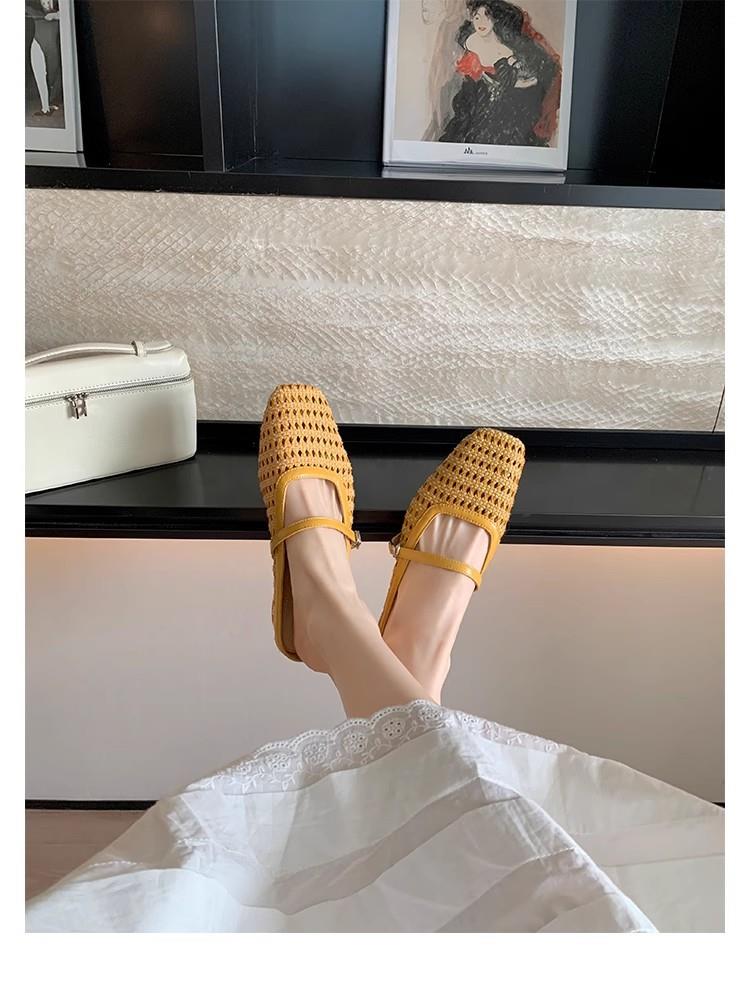 复古编织镂空方头一字带粗跟凉拖穆勒半拖鞋女夏新款