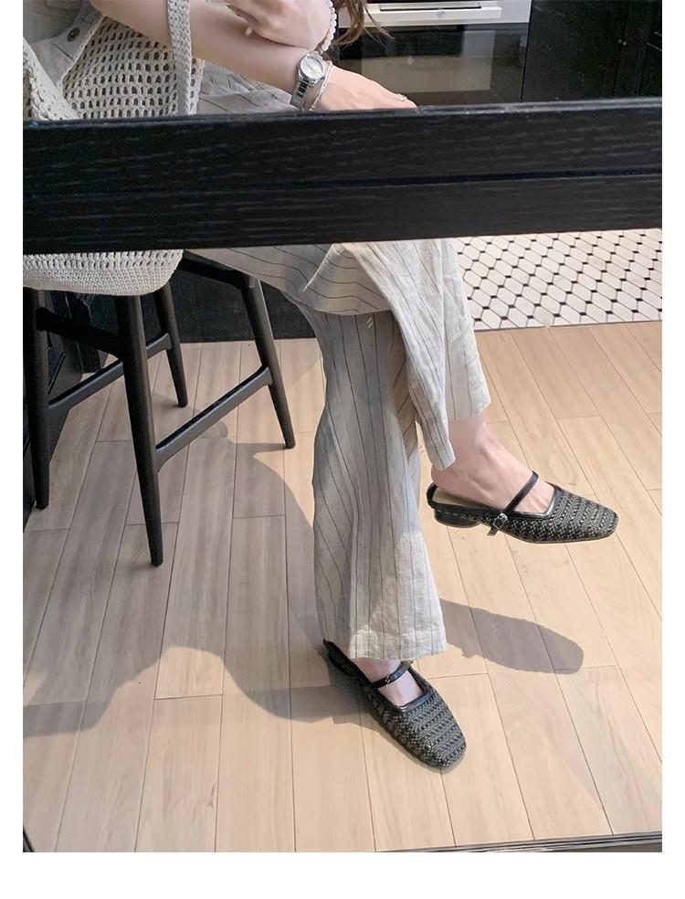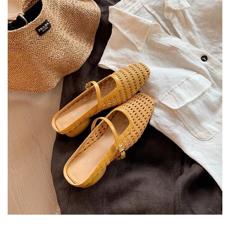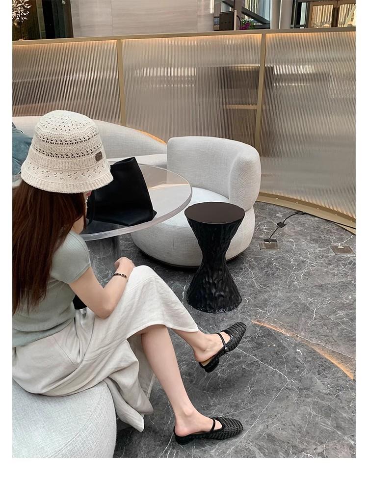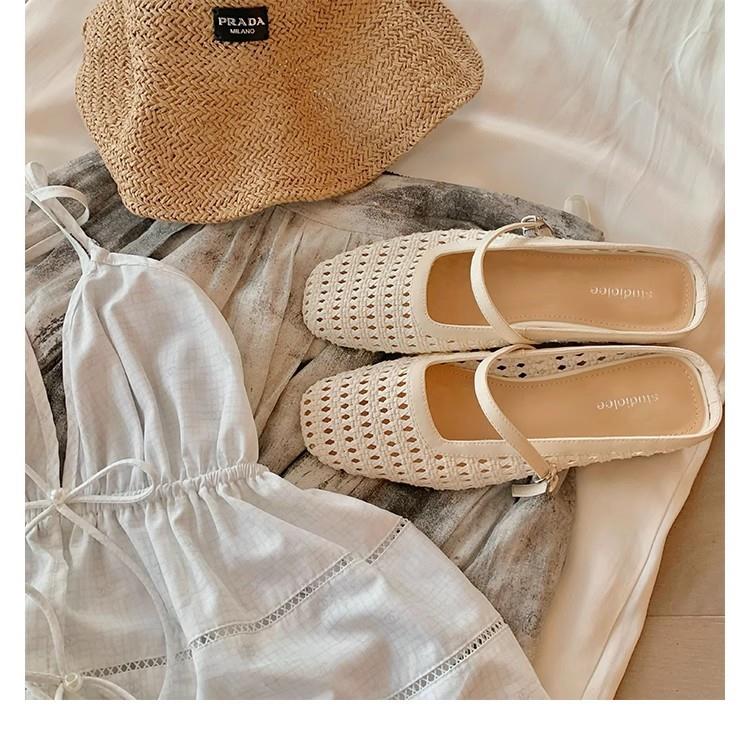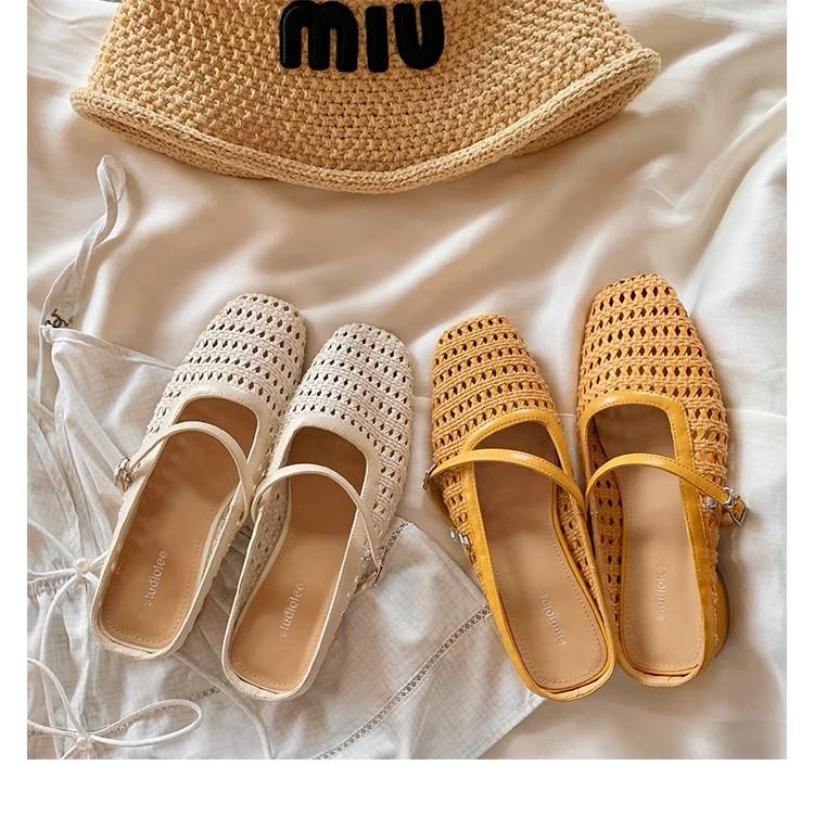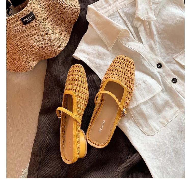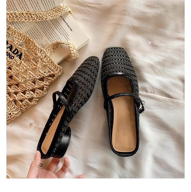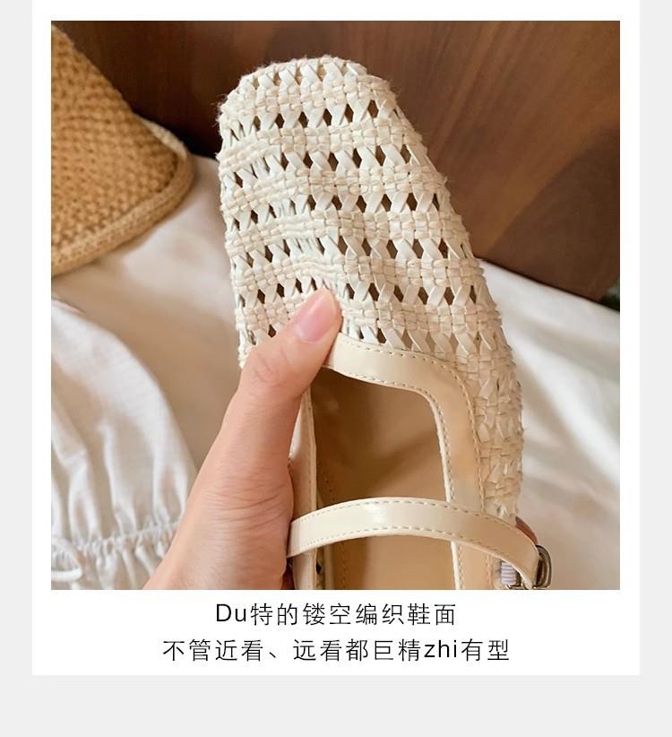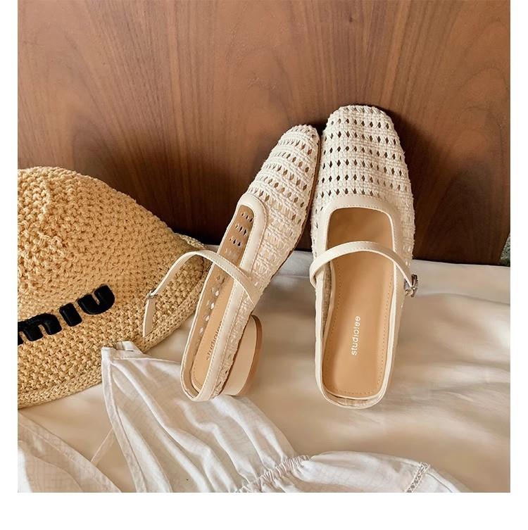 复古编织镂空方头一字带粗跟凉拖穆勒半拖鞋女夏新款