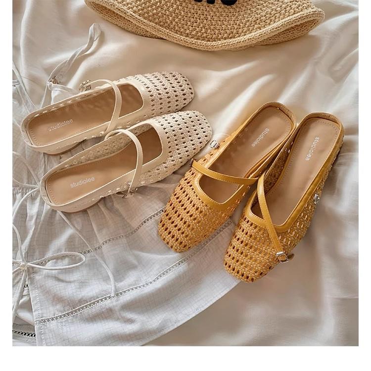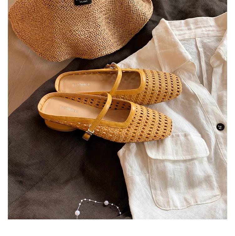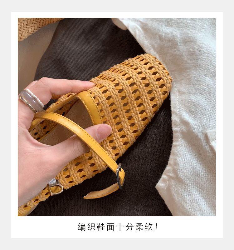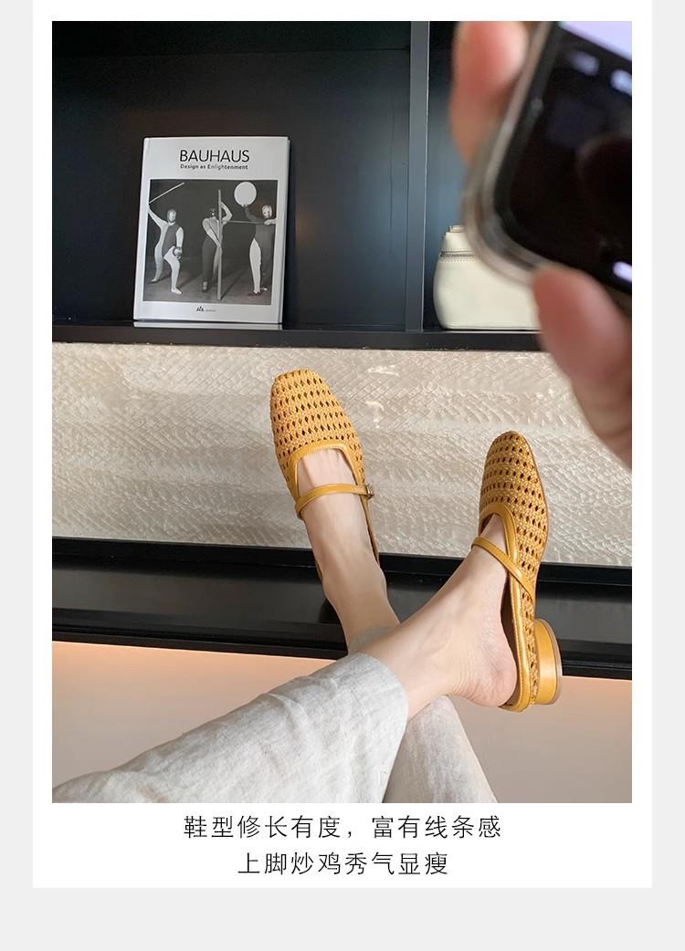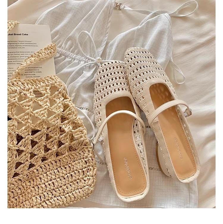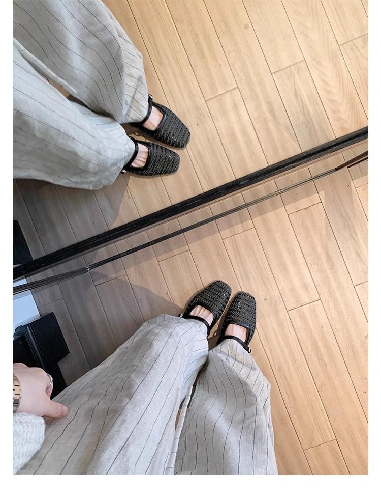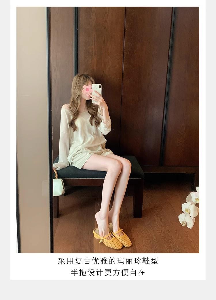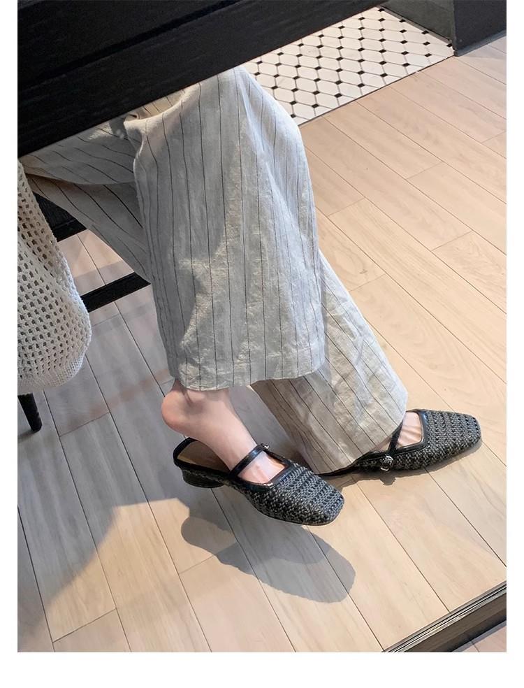 复古编织镂空方头一字带粗跟凉拖穆勒半拖鞋女夏新款
