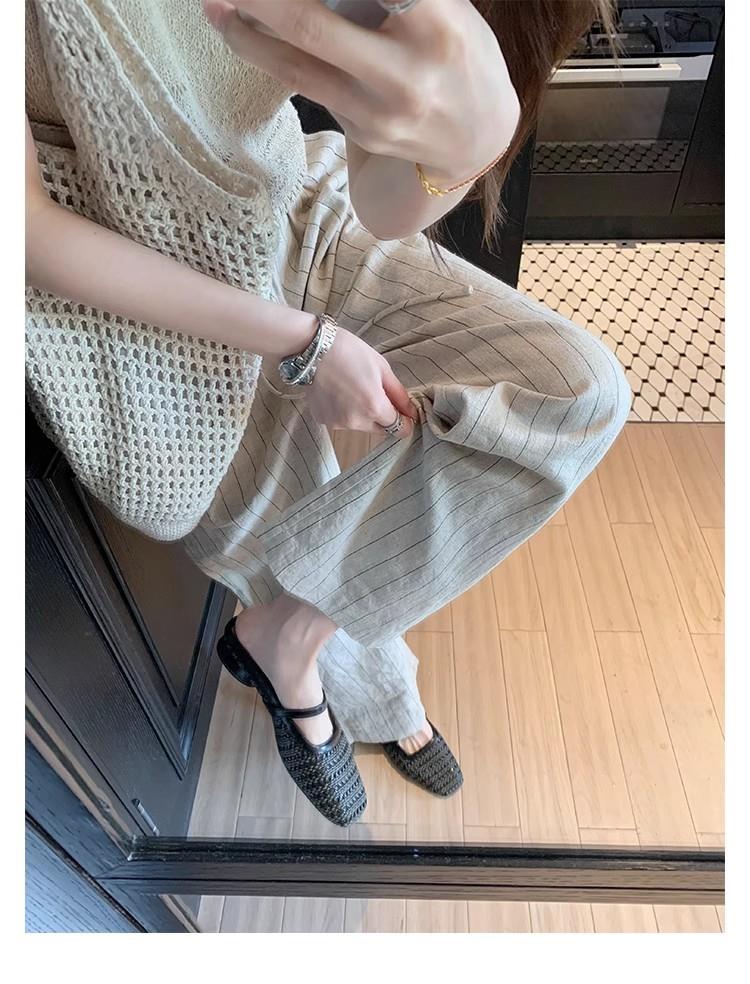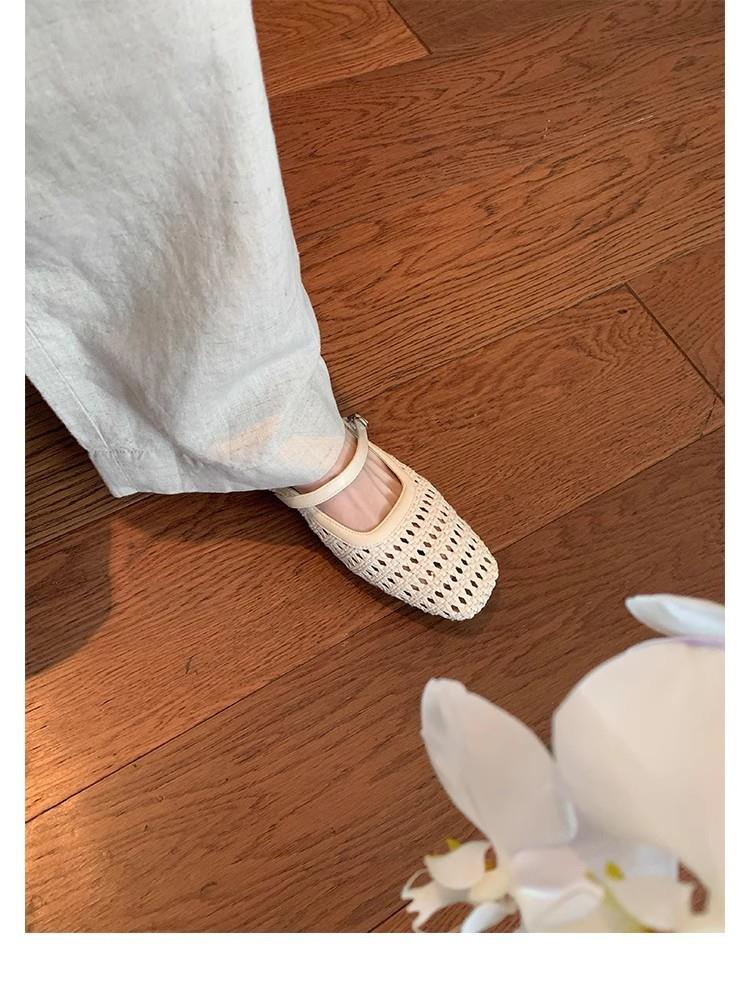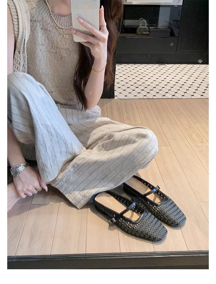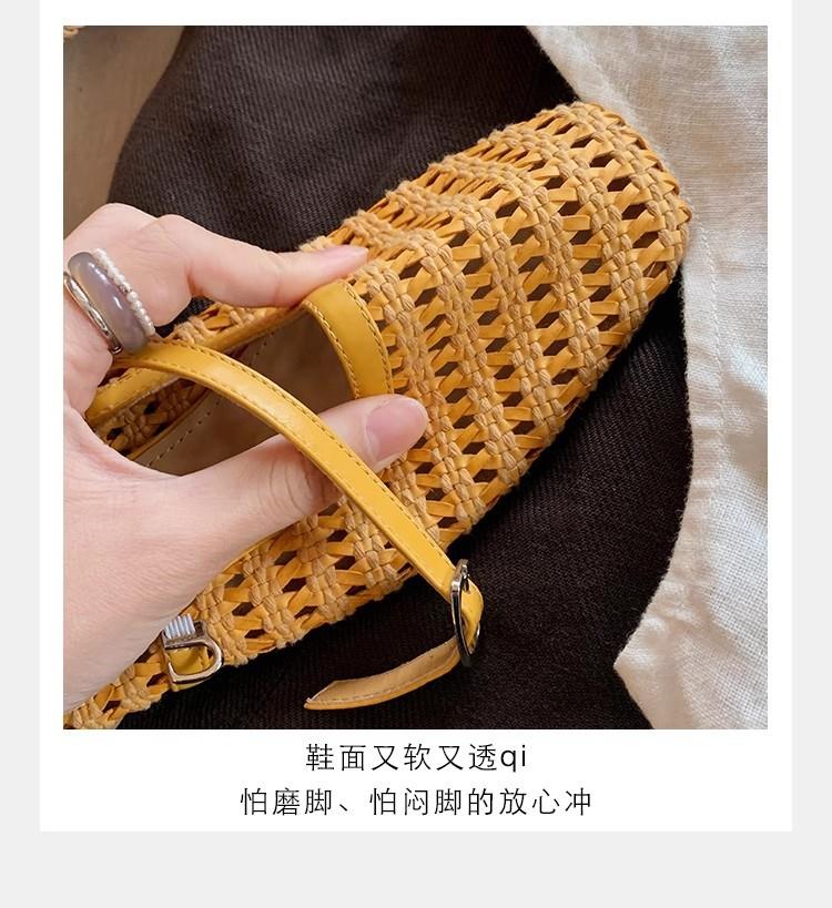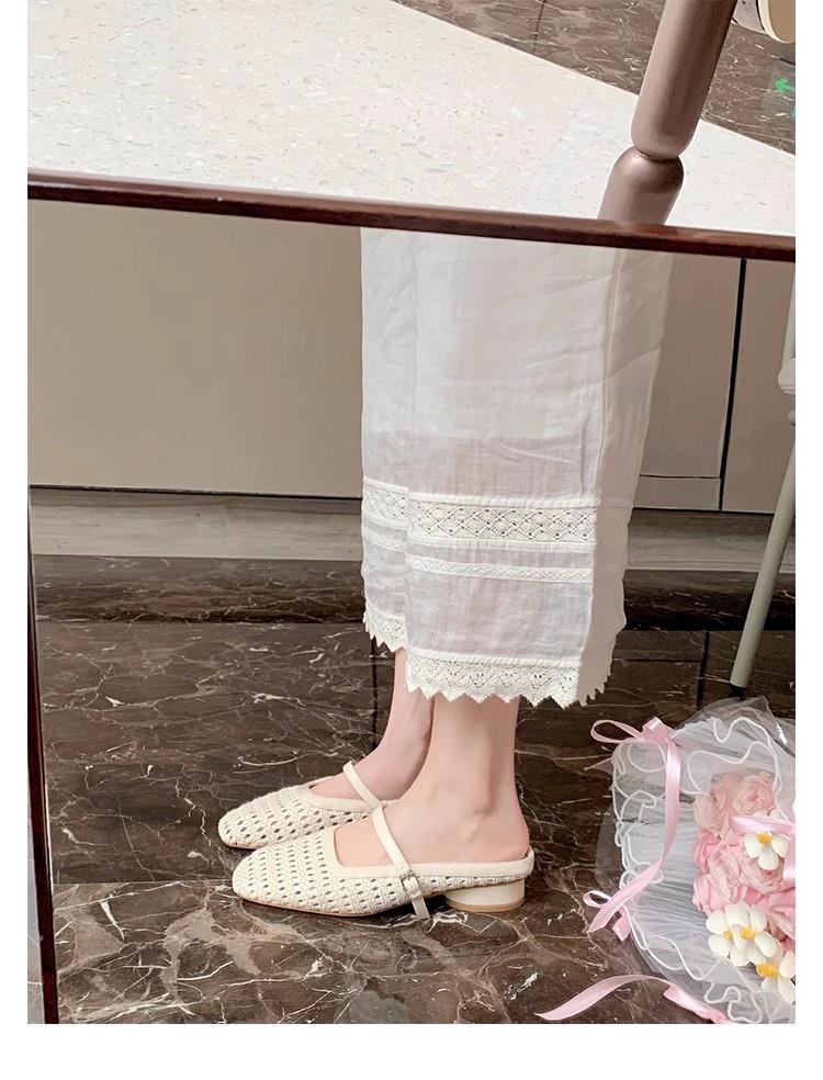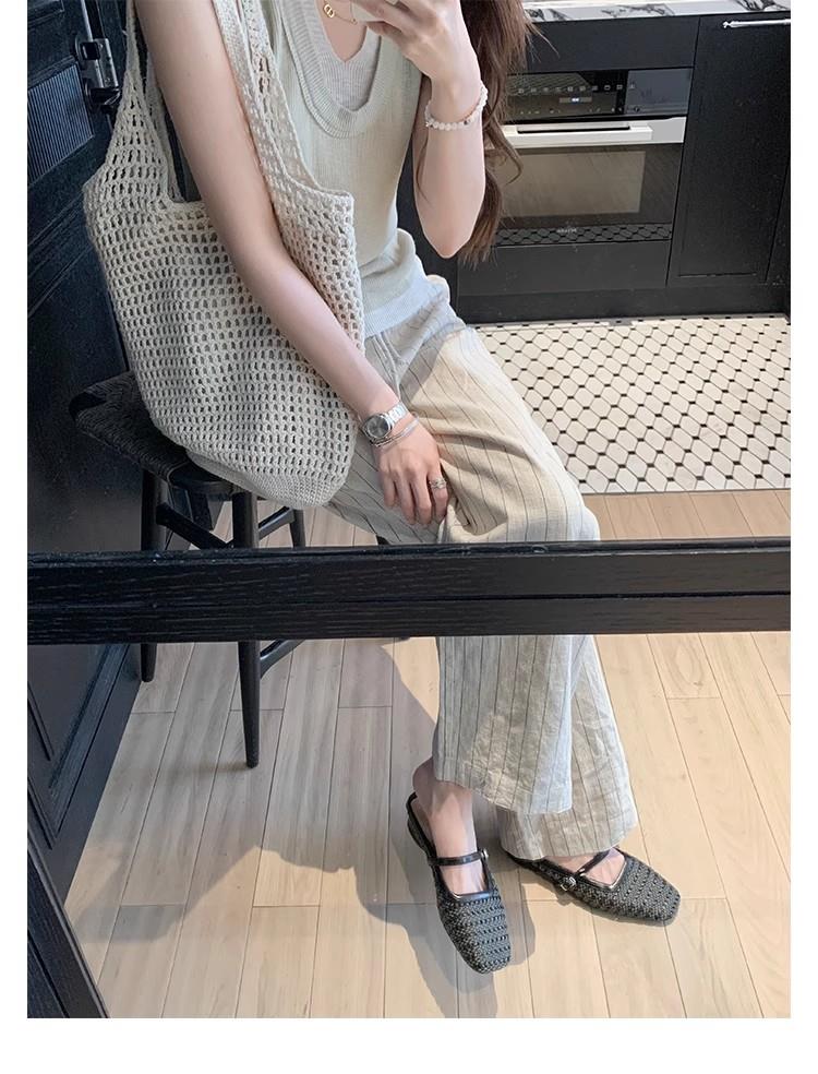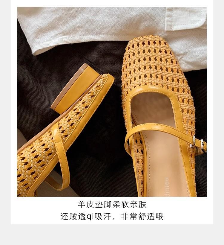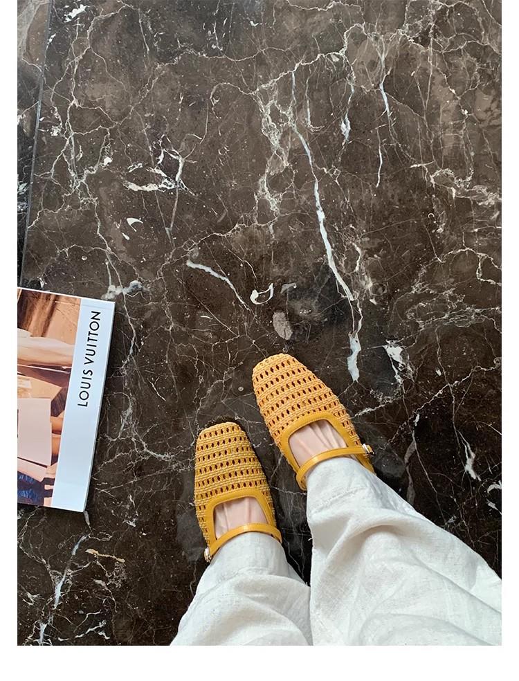 复古编织镂空方头一字带粗跟凉拖穆勒半拖鞋女夏新款