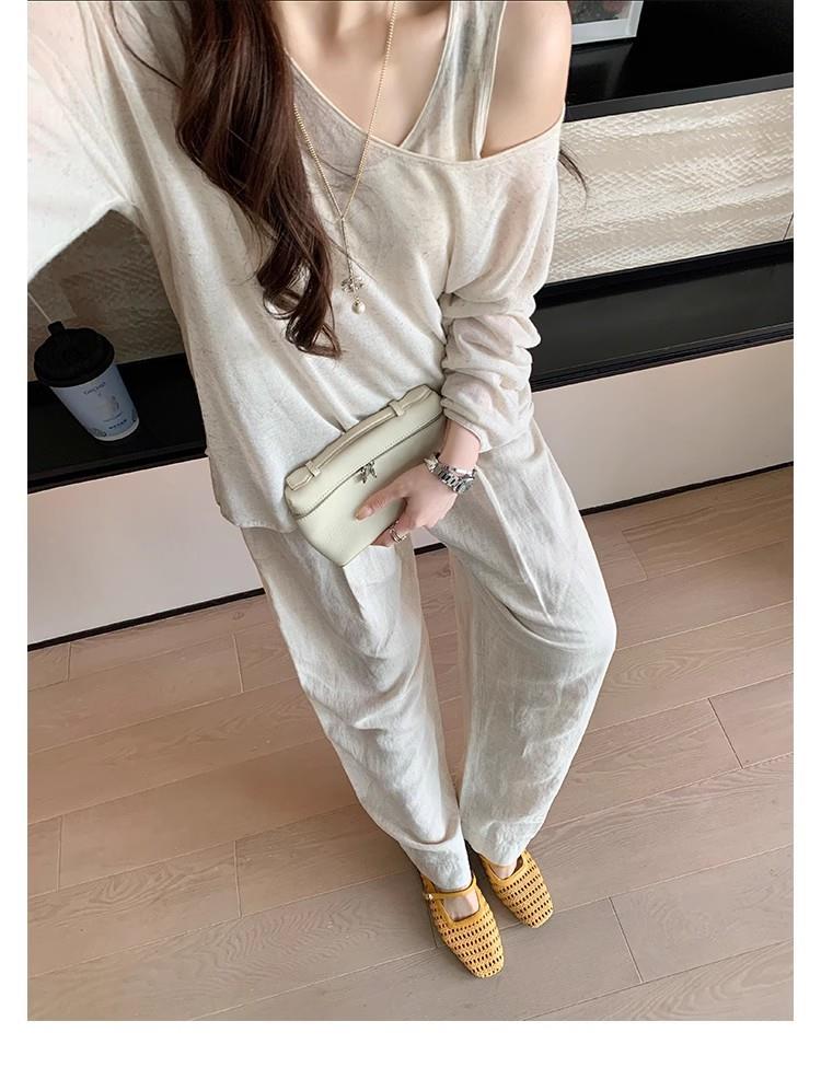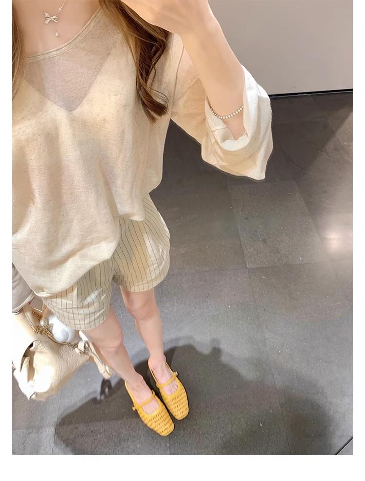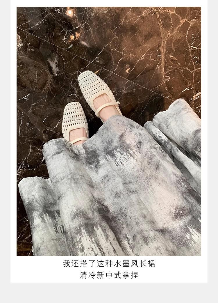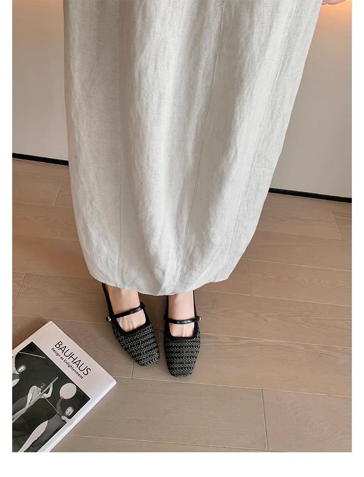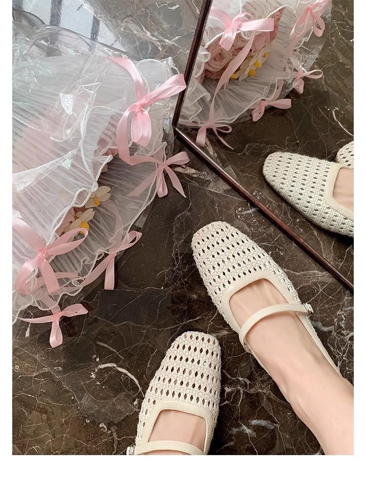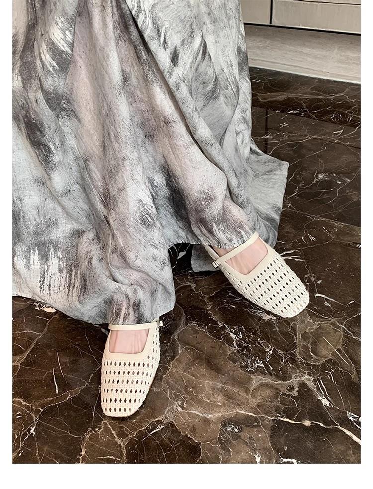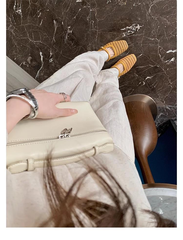 复古编织镂空方头一字带粗跟凉拖穆勒半拖鞋女夏新款
