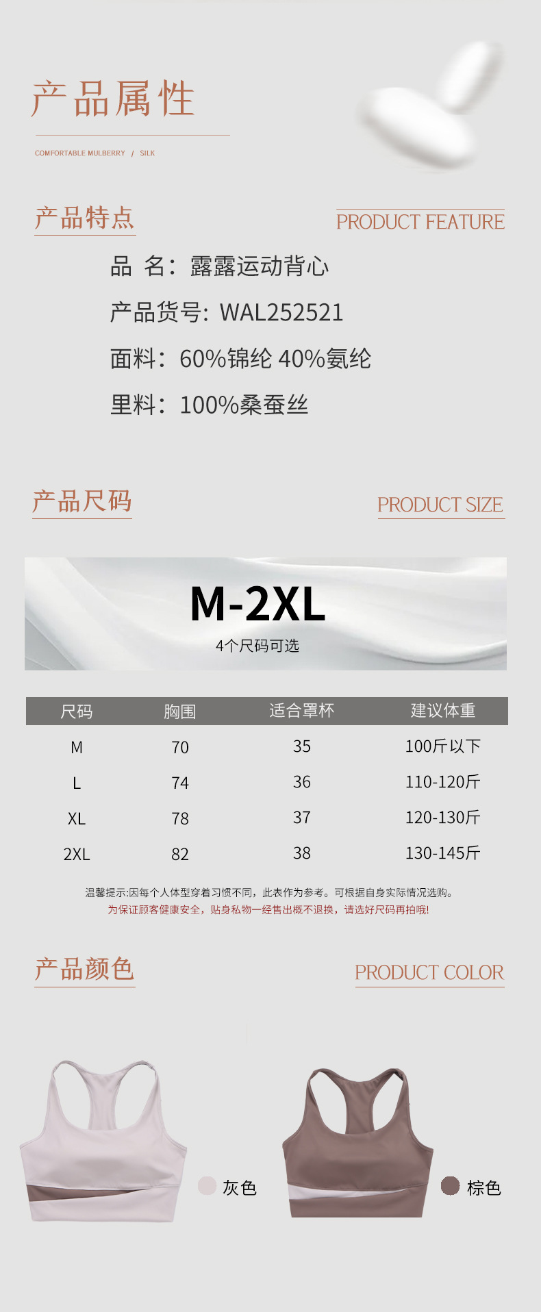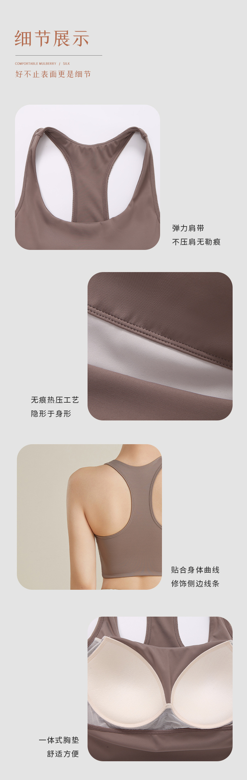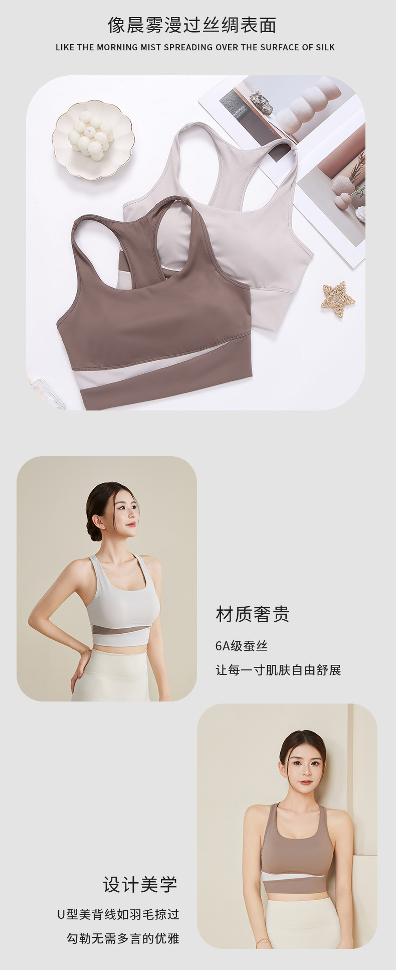 丁摩 真丝运动内衣女防震防下垂跑步瑜伽文胸健身上衣MX-048