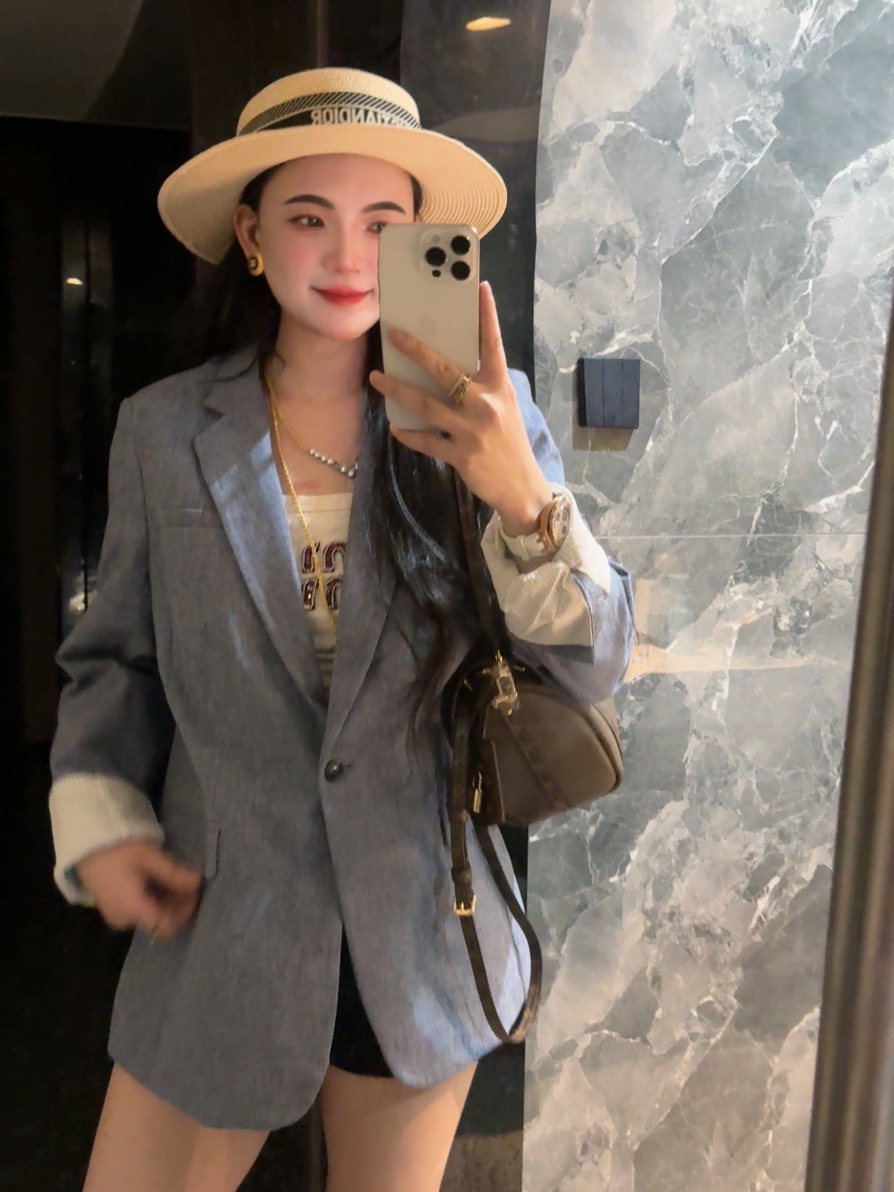 大牌剪标‼️ 高端潮牌老钱风撞色条纹水洗设计高品质西装 外套还在穿沉闷黑西装?试试这款西装,让你在职场轻松穿出高级感。棉混纺面料自带细腻肌理,透气不闷汗😓,秋天穿刚刚好。经典西装领+一粒扣设计,利落又显精神,不管是搭配衬衫西裤走专业路线,还是配裙装、牛仔裤打造休闲职场风,都能完美适配。精致的品牌标彰显品质,实用口袋设计加分。穿上它,开会时气场全开,下班后约会逛街也毫不违和,一件解锁多种风格,职场穿搭从此告别单调,让你每天都能自信满满地出门~ 面料有厚度!有弹力!对标千元品质货⚠️ 蕾姐实拍14码参考⚠️ 14码130以内⚠️ 16码145以内⚠️ 18码160以内⚠️ 女生根据喜好长度选择 ⚠️