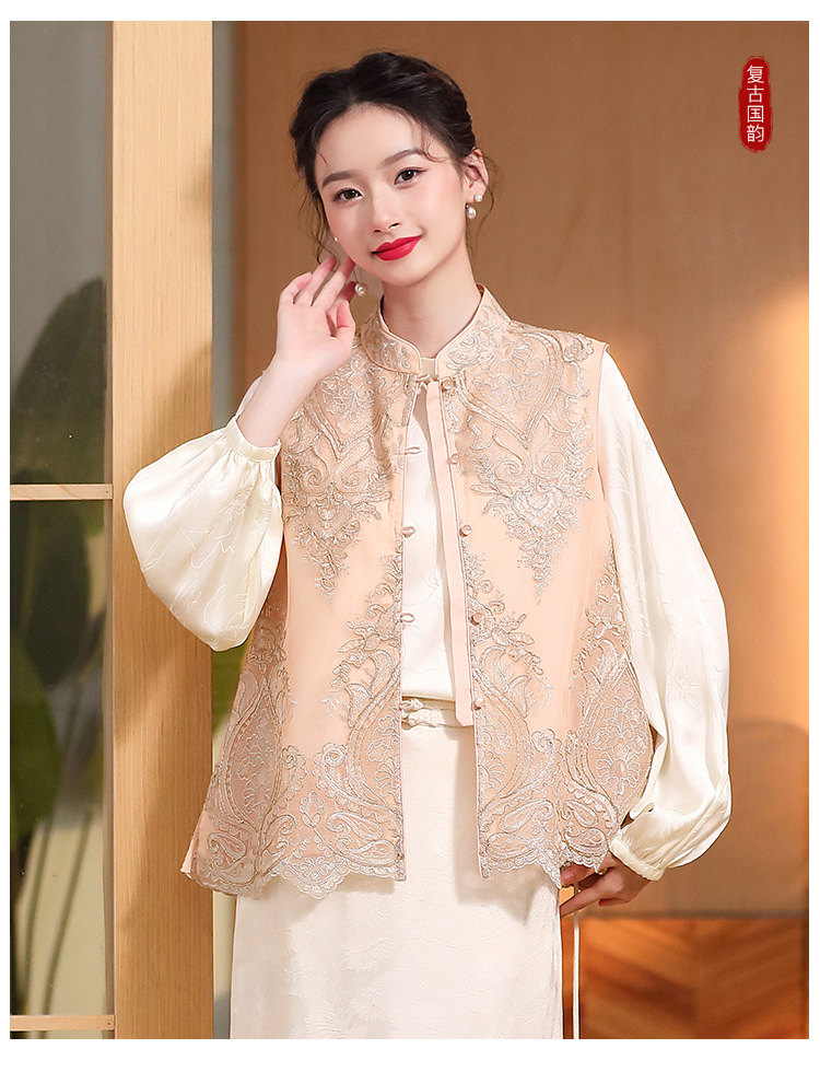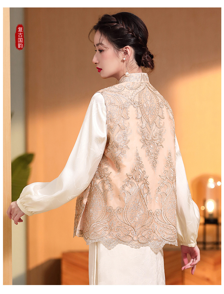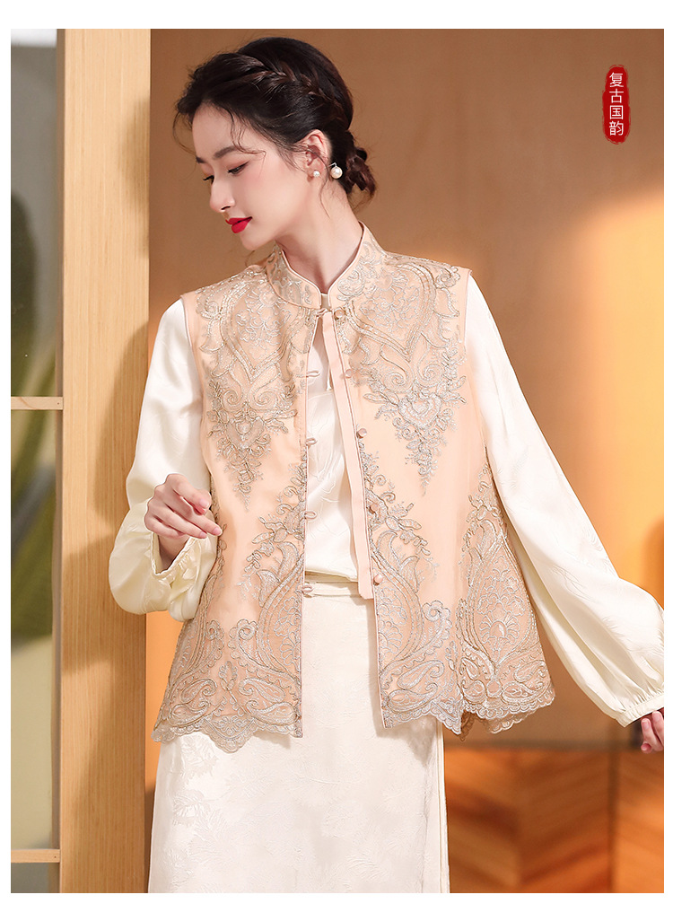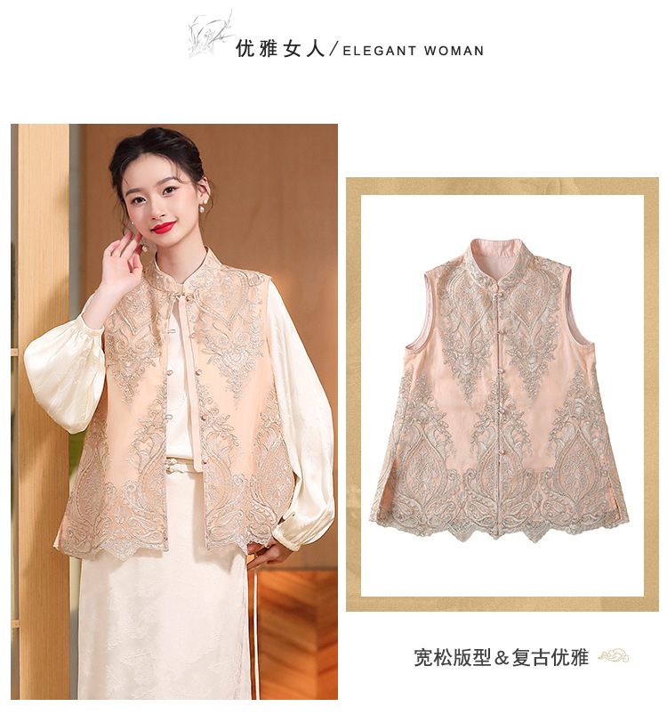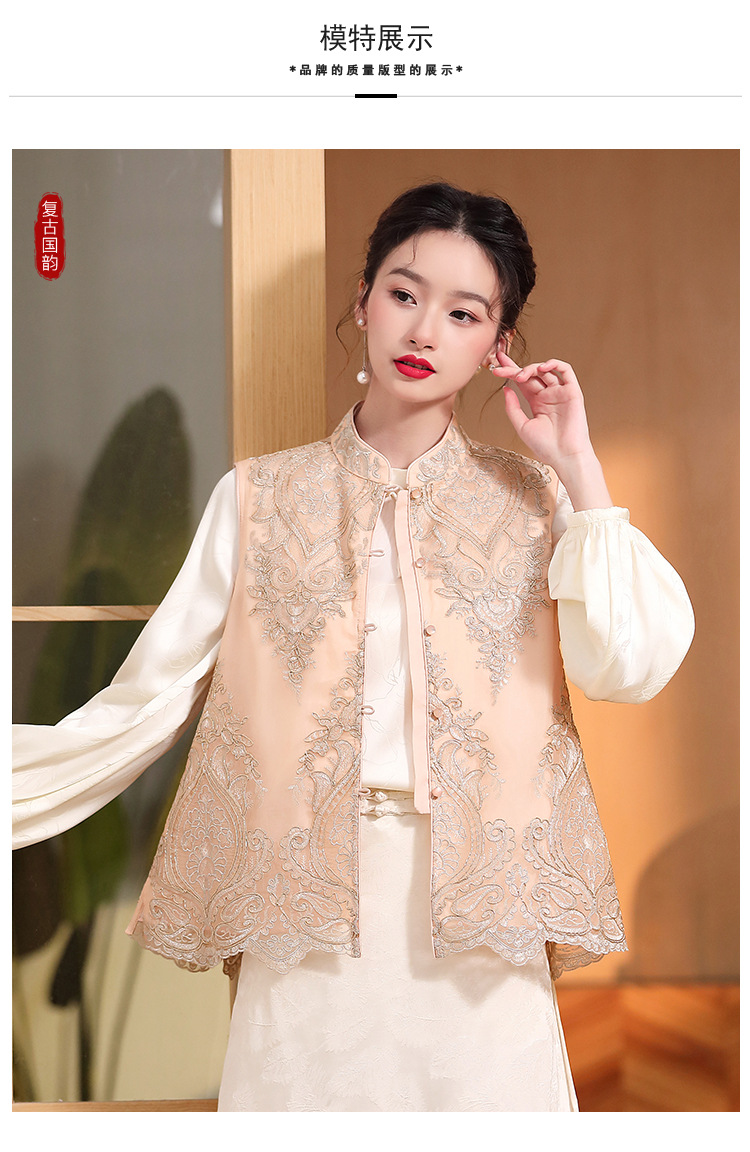 春夏新款国风上衣,唐装复古女装蕾丝盘绣马甲女立领马褂AYK-QF-2207147