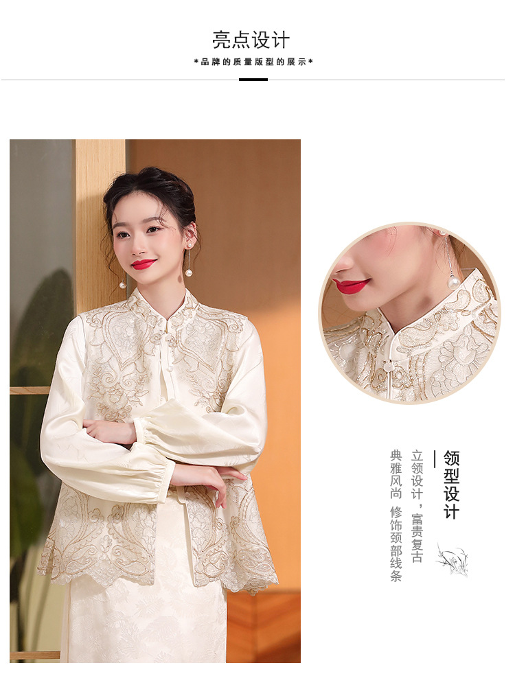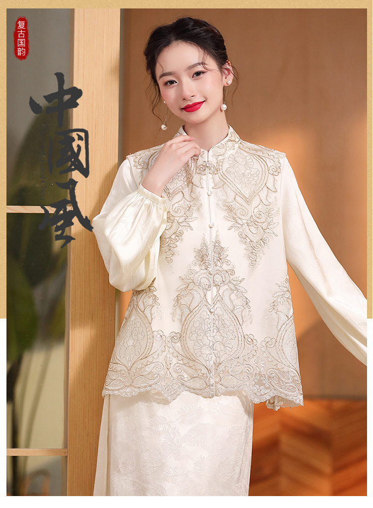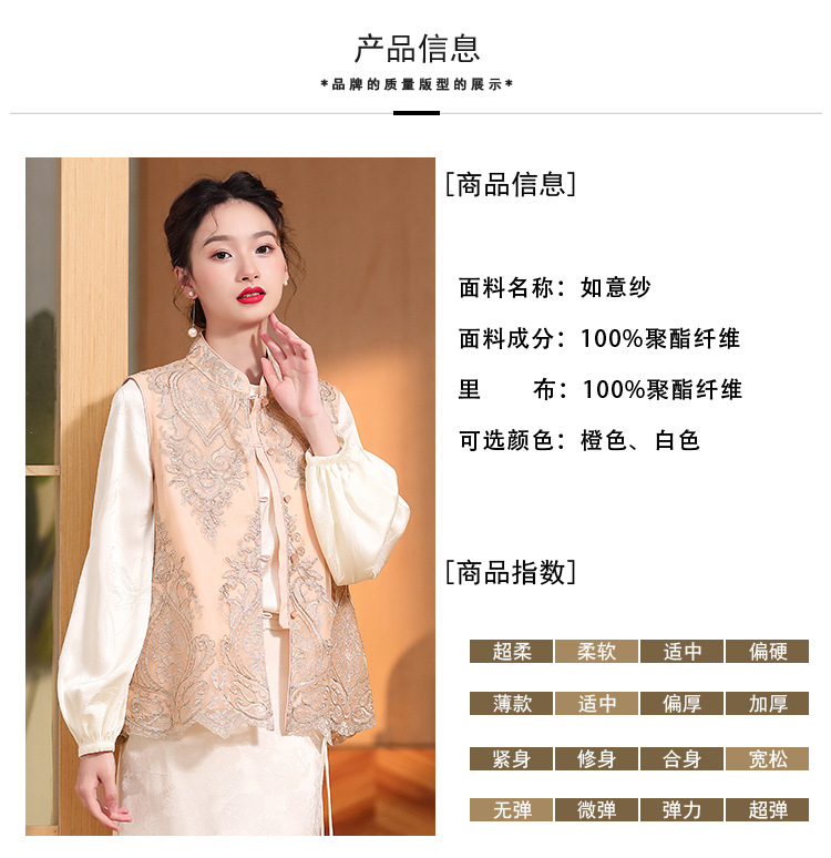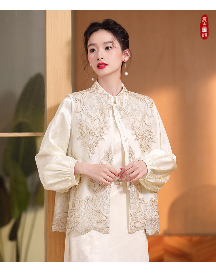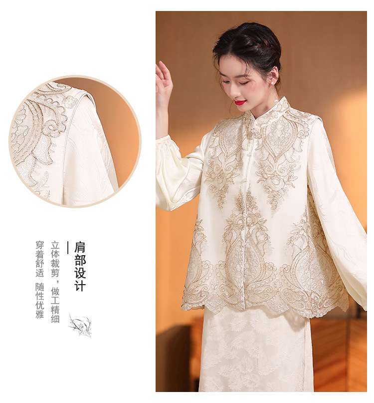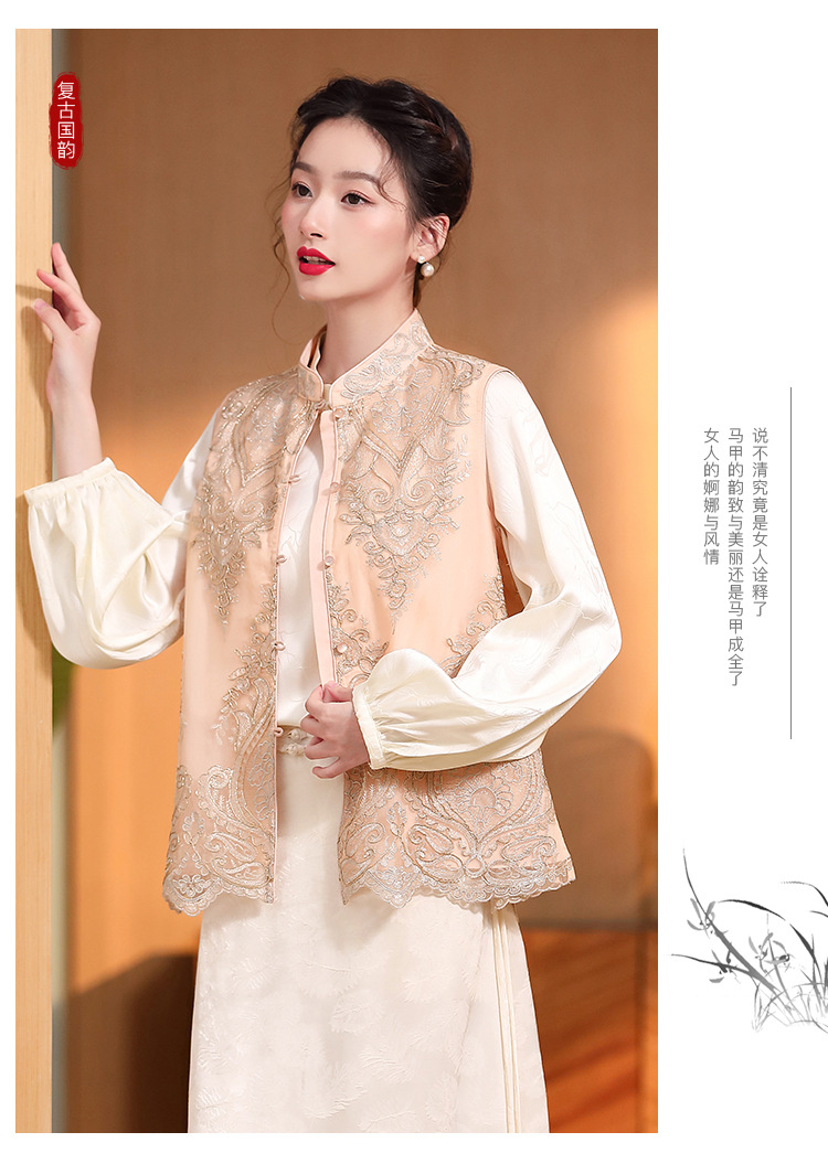 春夏新款国风上衣,唐装复古女装蕾丝盘绣马甲女立领马褂AYK-QF-2207147