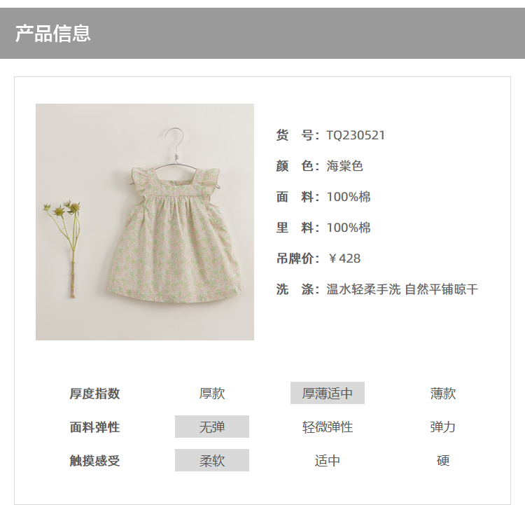 【马克珍妮 芦芙】夏装新款 女童海棠花开纯棉连衣裙230521