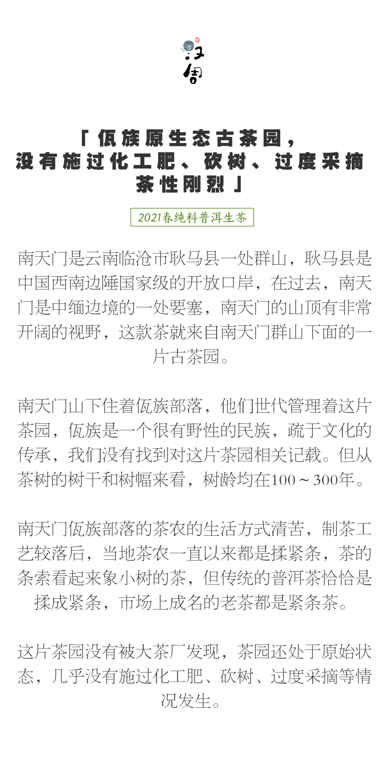 南天门 2021春纯料生普200g 中缅边境临沧耿马县佤族 限500饼