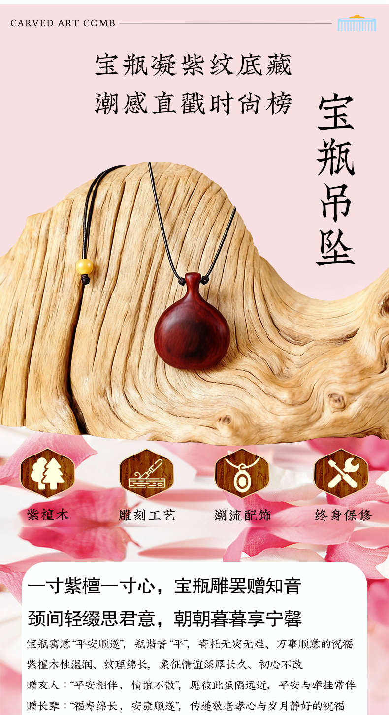 明星同款紫檀宝瓶吊坠护身符本命年轻奢节日礼物潮流毛衣链