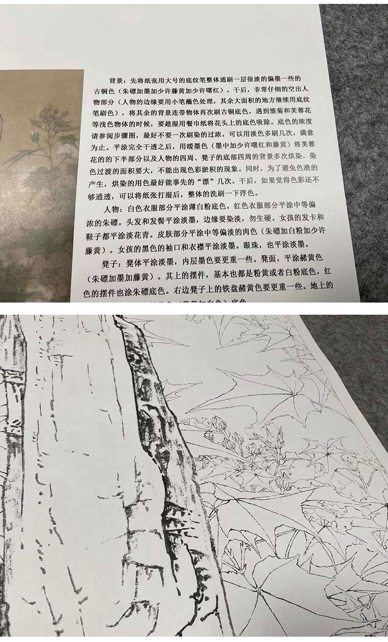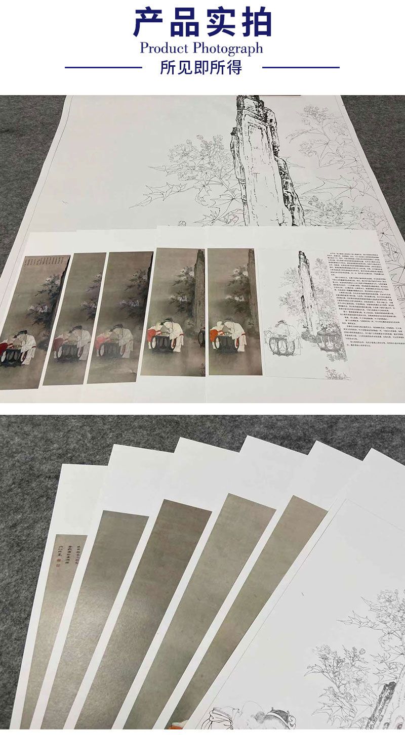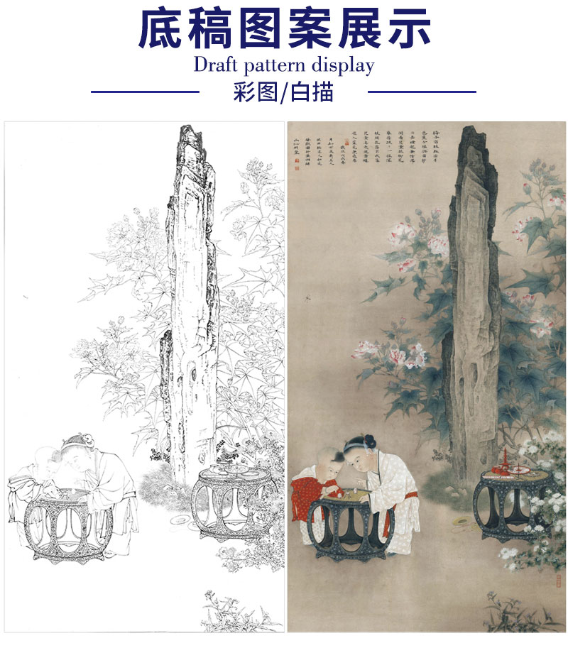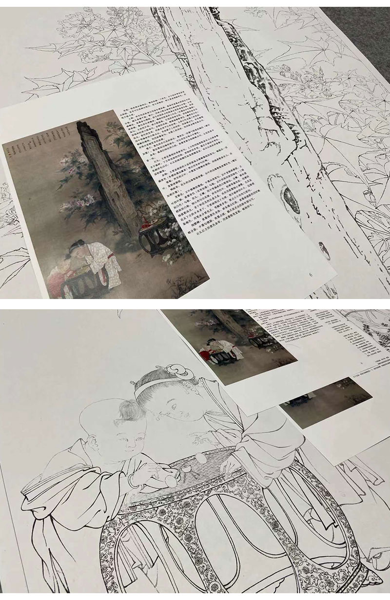 【有步骤、大彩图】李晓明工笔画白描底稿《临宋秋庭戏婴图》初学者临摹人物线稿KC25