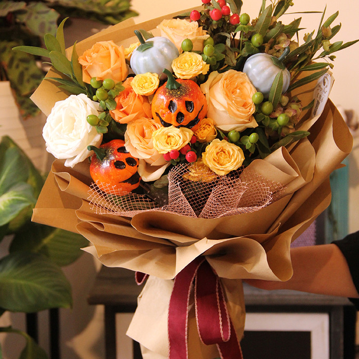 【不送花就捣蛋】万圣节南瓜精致创意混搭花束定制礼物送女友闺蜜朋友