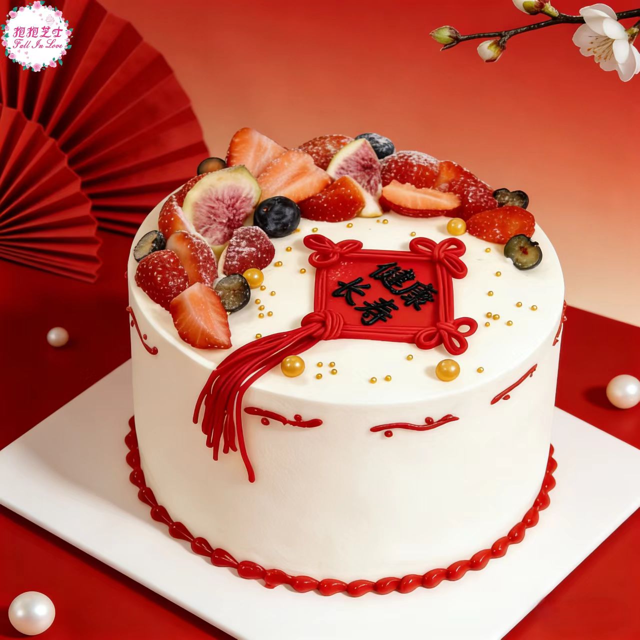 【新款】接福纳寿蛋糕 | 以缤纷鲜果和国风喜庆装饰,祝长辈岁岁安康,年年有福~