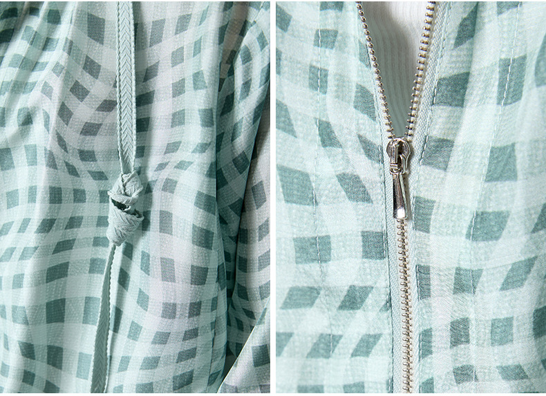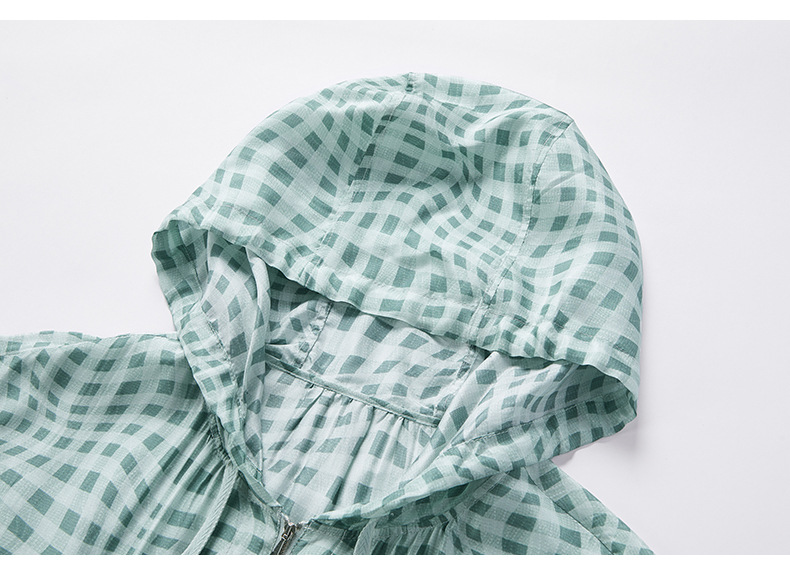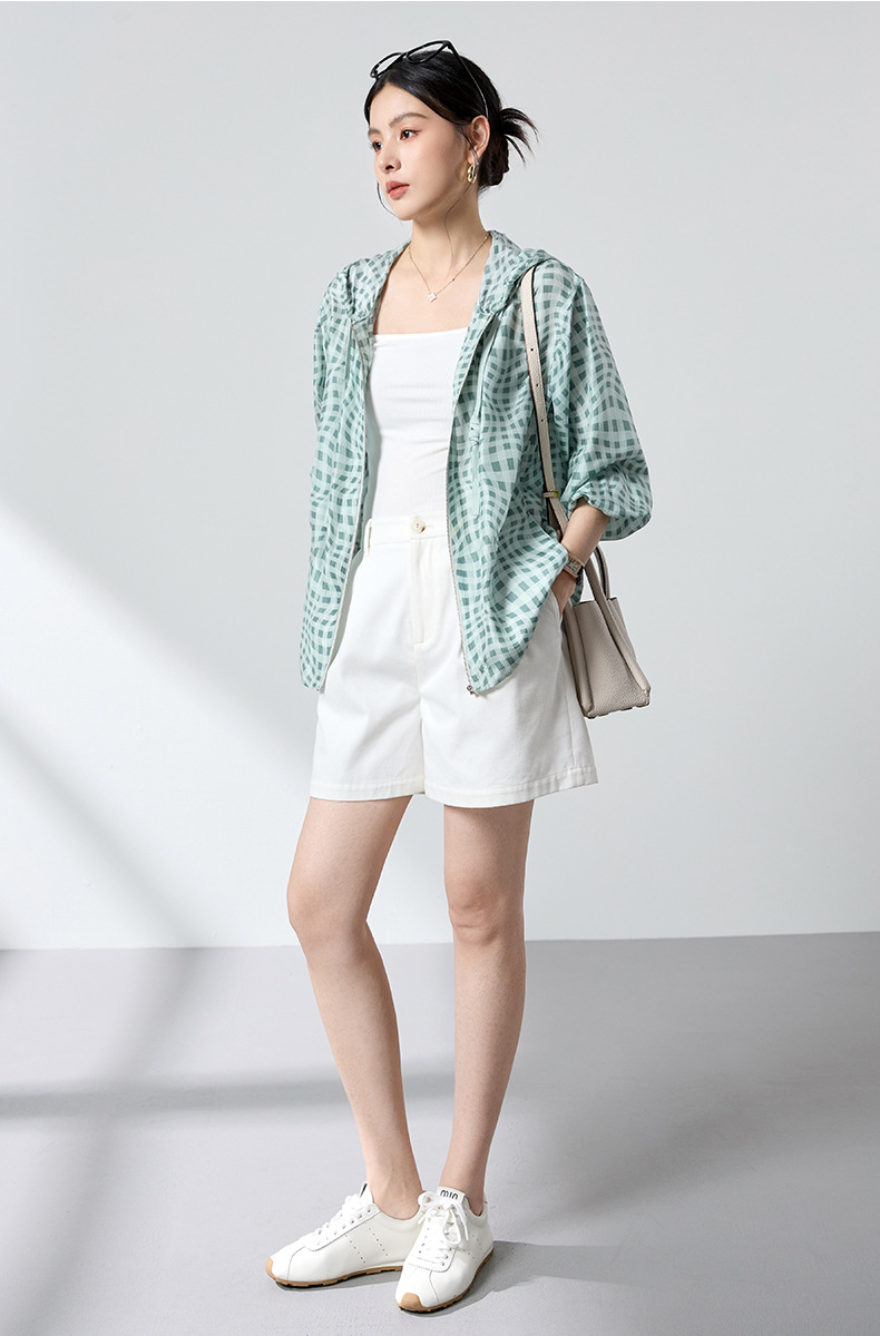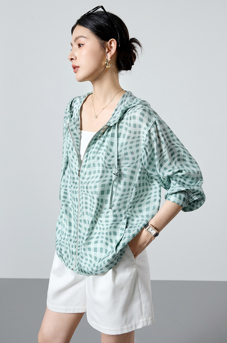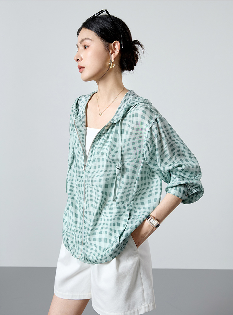 QS[100%桑蚕丝]26春格纹运动风透气连帽外套韩系防晒短外套2993