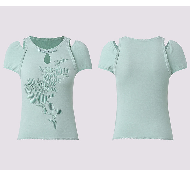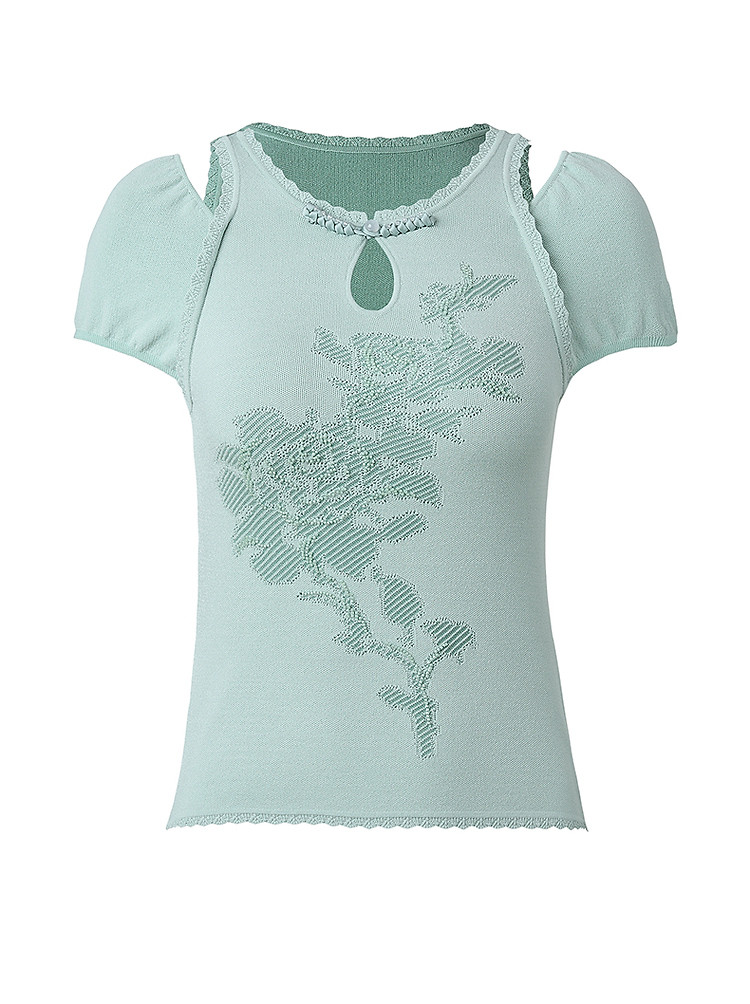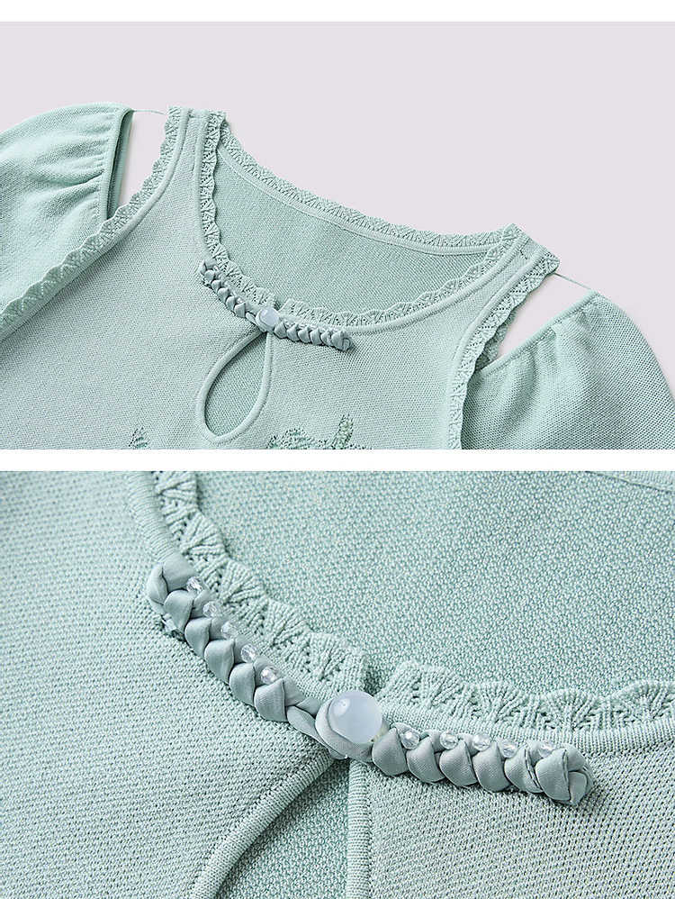 贵雅新中式薄荷绿提花针织盘扣上衣2025春季(货号:MF86SW001G0002)