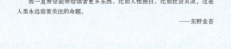 《单恋》(2016版)内容简介:《单恋》是东野圭吾令人动容的长篇小说杰作,不是推理小说,但情节扣人心弦,由一起杀人事件切入,描绘出现代社会中少数派的生存困境,质疑世俗对于性别的评判标准,关怀每一个为了自我认同、性别认同而焦虑不安的灵魂。与美月重逢,是哲朗人生中至为吃惊的。大学毕业十三年,十年没有见面,哲朗仍忘不了两人发生亲密关系的那一晚。那时美月如火一样热情,像是为了纪念一个时代的终结。可如今的美月却成了一个男人,嗓音沙哑陌生,并带来了惊人的消息:我杀了人,准备去自首。哲朗察觉另有隐情,决心彻查,却身不由己地陷入了一个越来越大的旋涡,越陷越深。