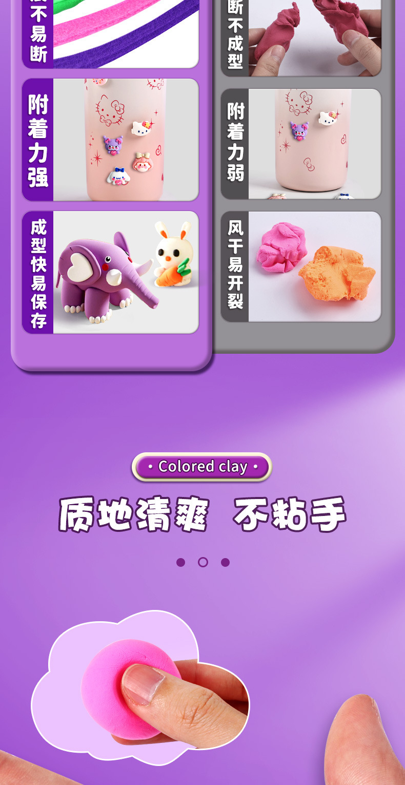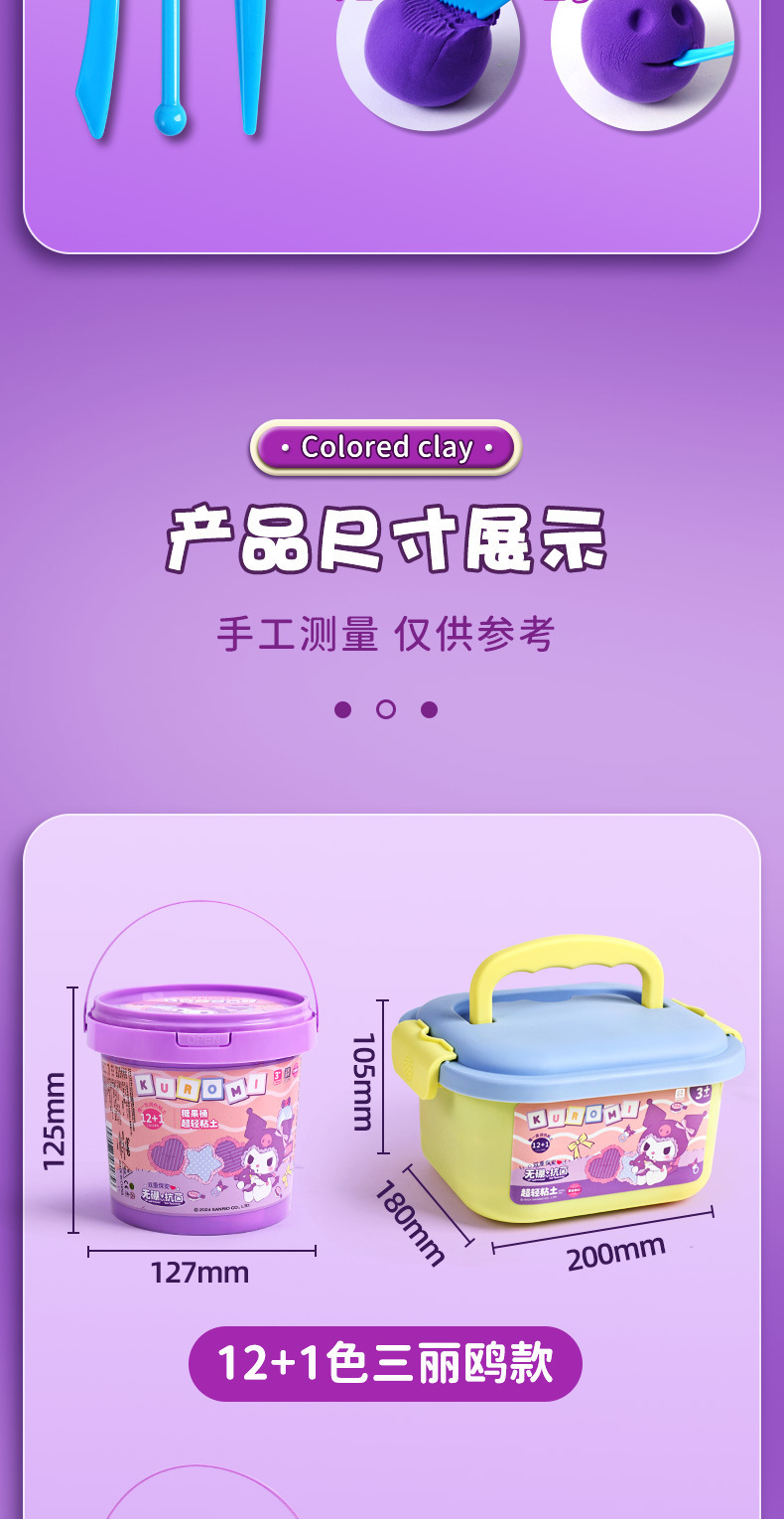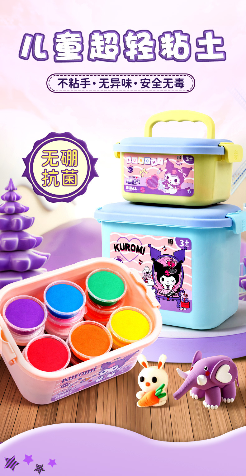 【不易褪色!不易干裂】不粘手,三丽鸥儿童超轻无硼粘土安全环保幼儿园库洛米手工橡皮泥套装。rb