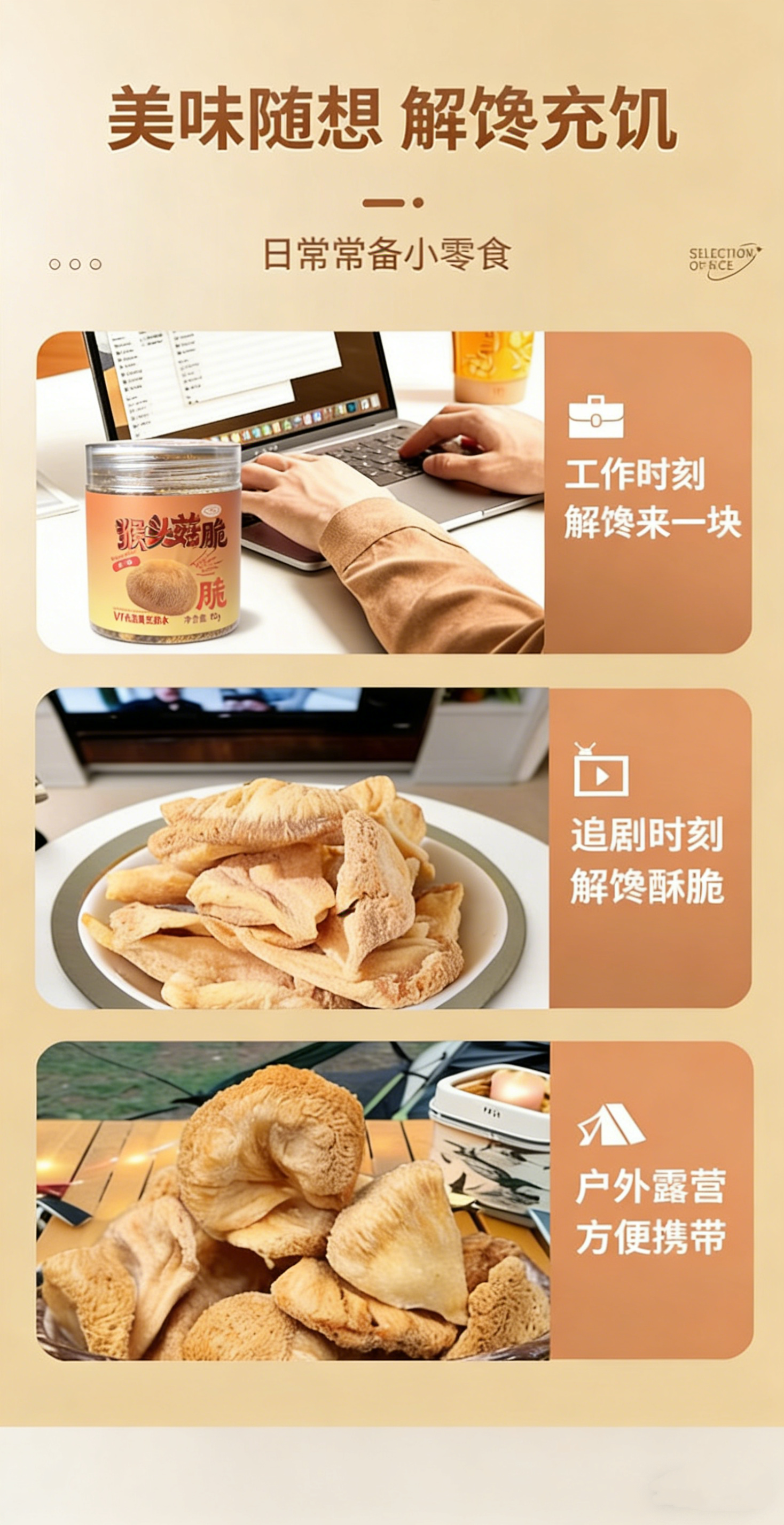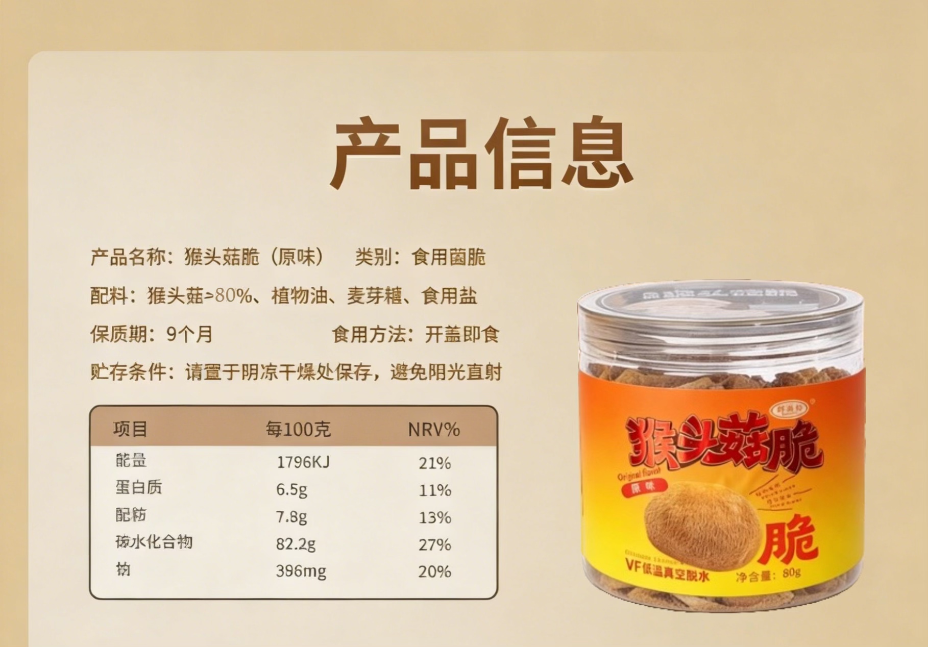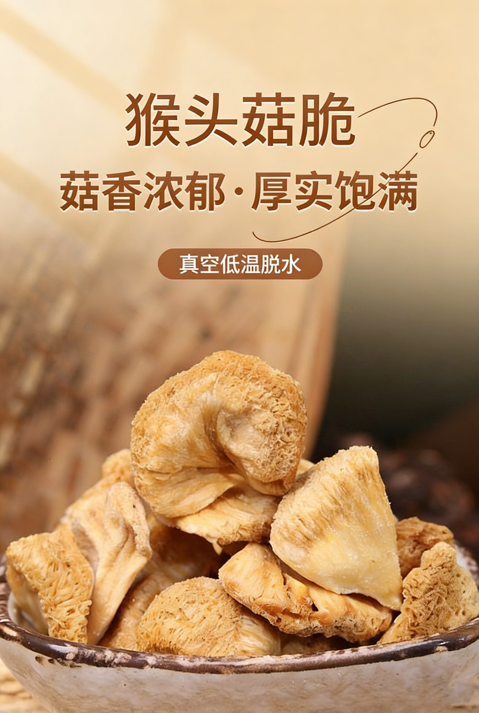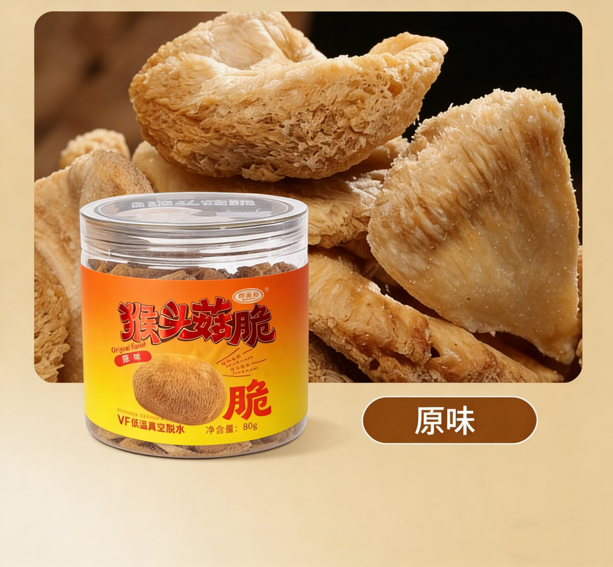 猴头菇脆片零食原味 精选福建古田有机猴头菇 非高温油炸 真空低温脱水 健康又美味 80克/罐