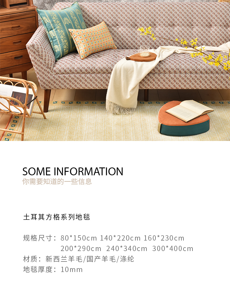 土耳其方格系列地毯新西兰羊毛地毯茶几客厅防滑地垫