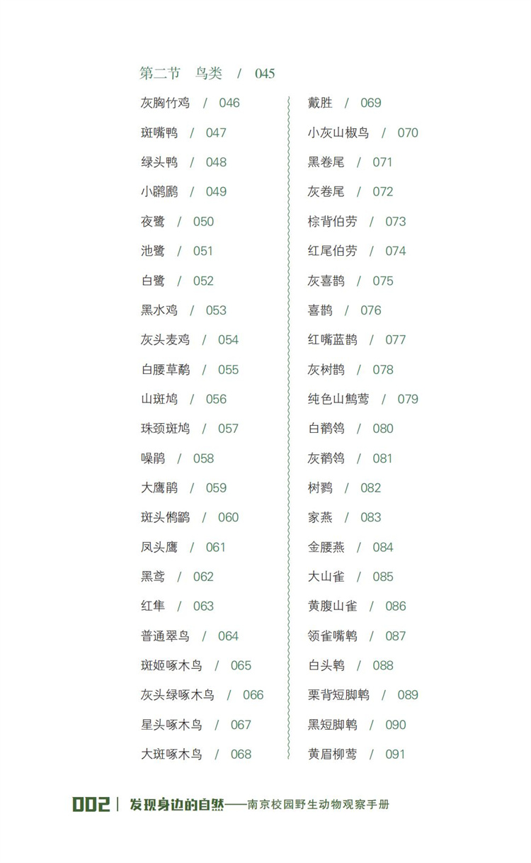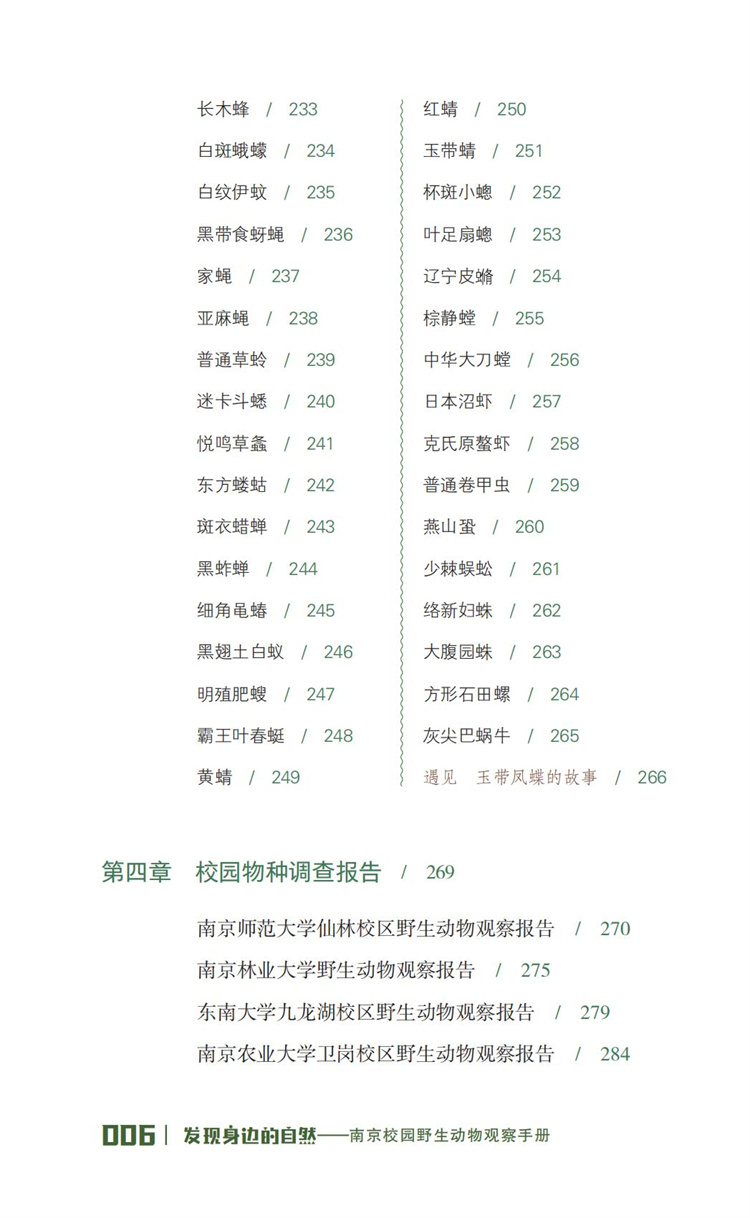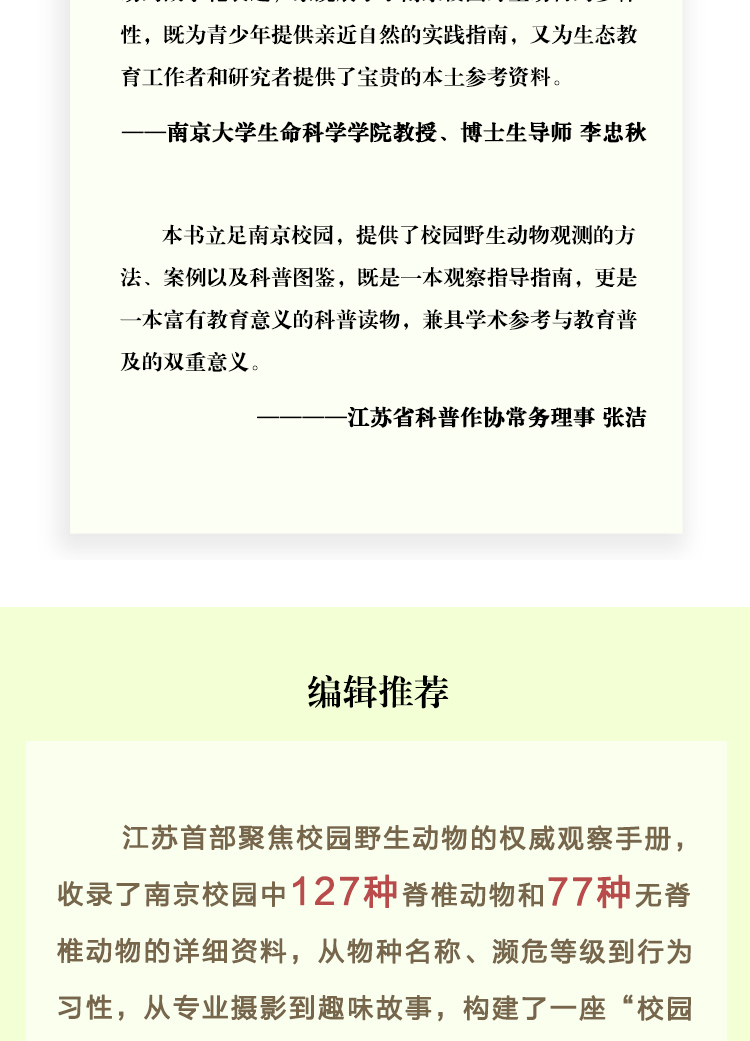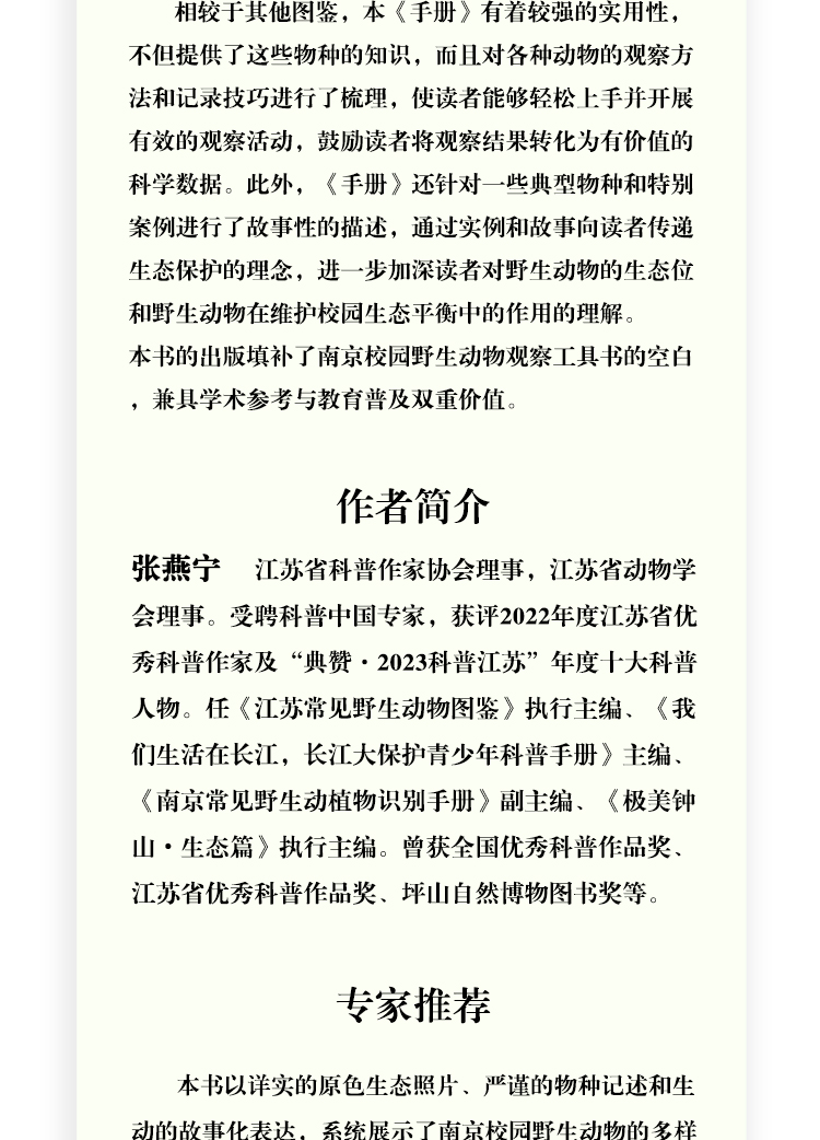 发现身边的自然 南京校园野生动物观察手册 收录了南京校园中127种脊椎动物和77种无脊椎动物的详细资料 江苏凤凰教育出版社