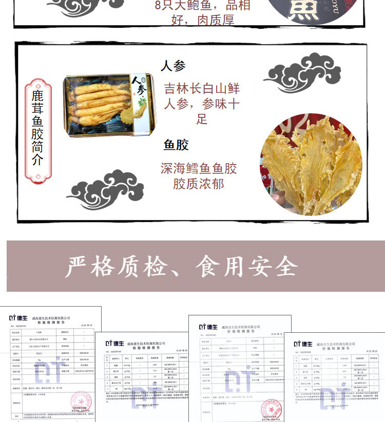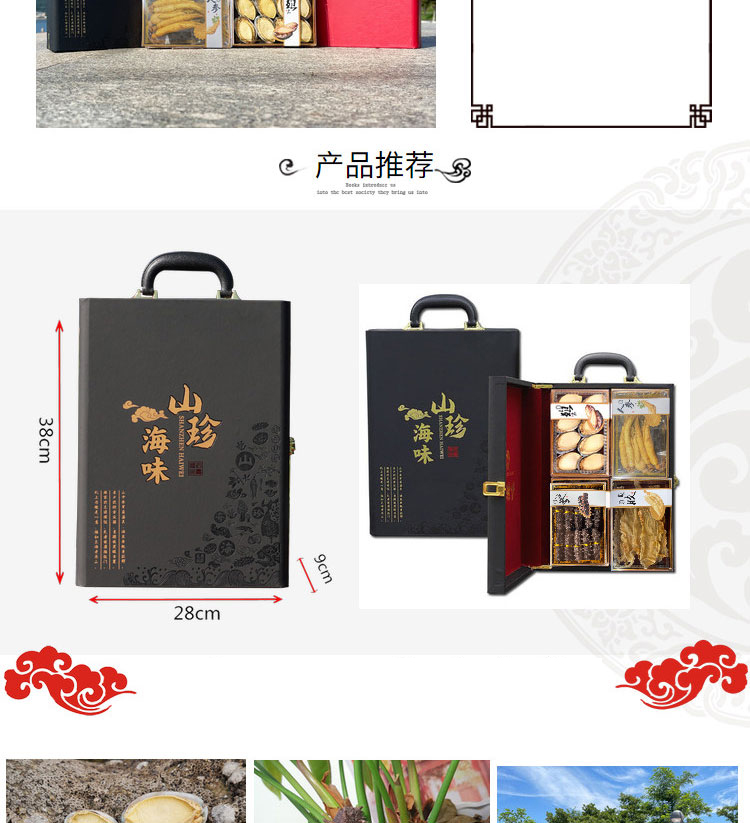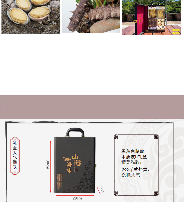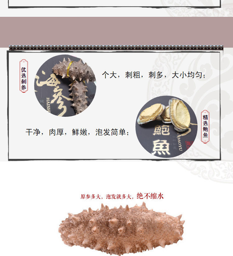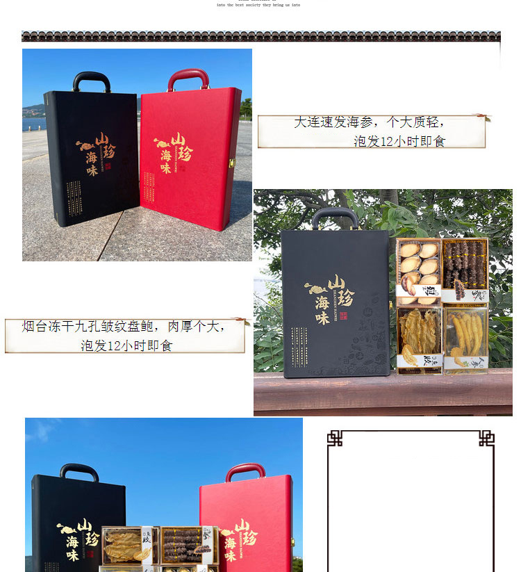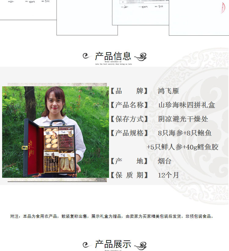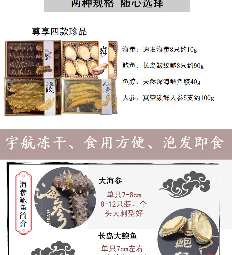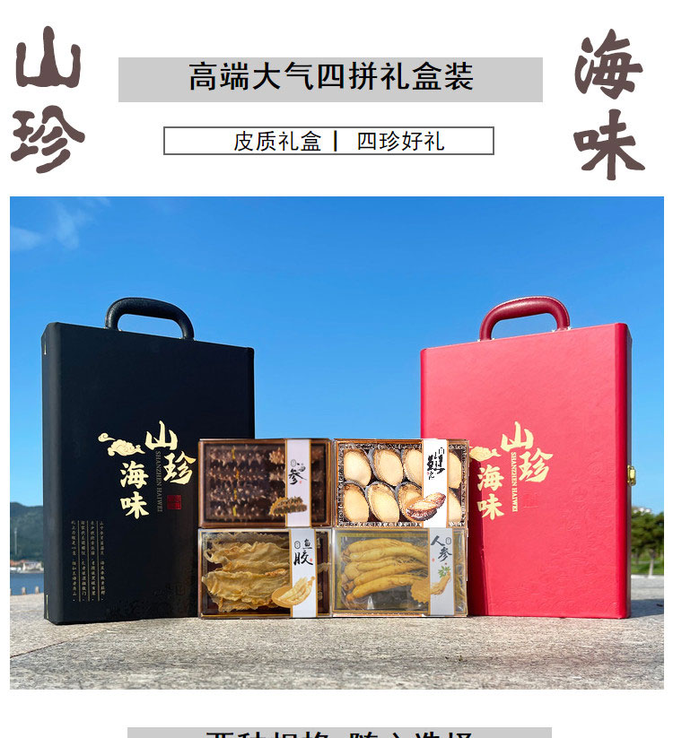 顺丰发货【山珍海味-四拼礼盒】过年节日送礼品高档淡干海参鲍鱼花胶人参四拼海味干货礼盒