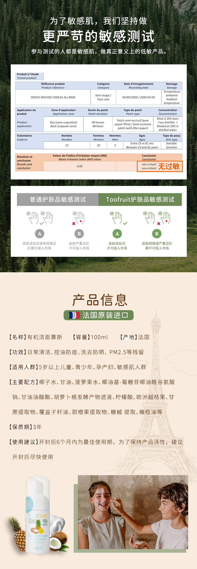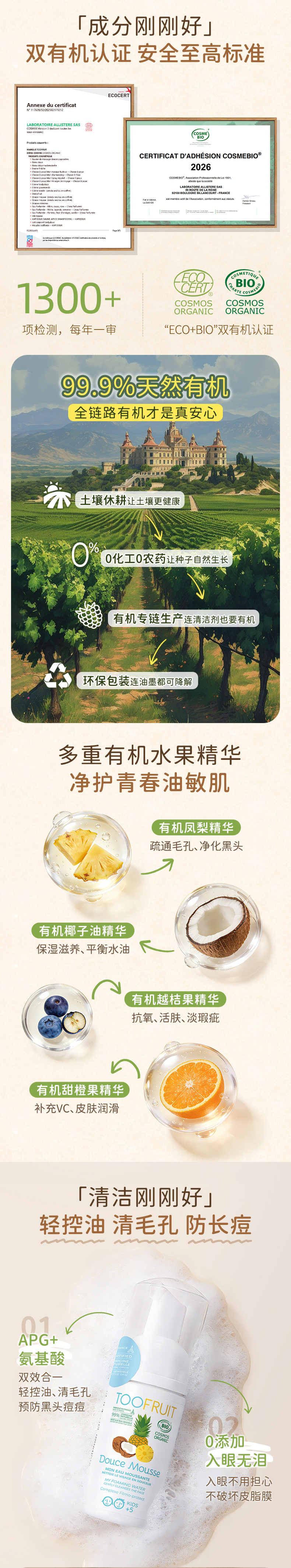 【专享】TOOFRUIT多果肤法国有机儿童洗面奶100ml
