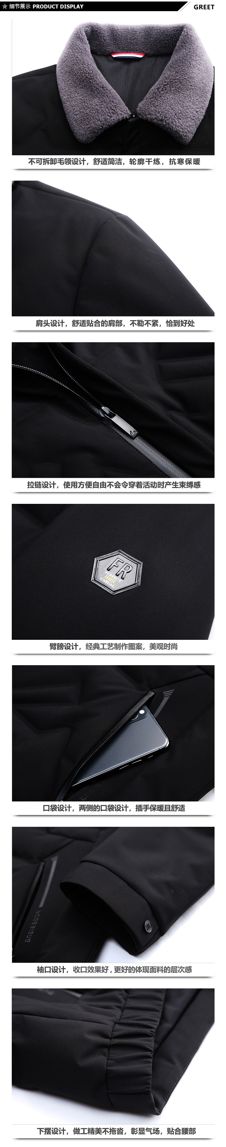 KJZY-男士潮时尚修身翻领羊羔毛领羽绒服男装保暖羽绒夹克外套