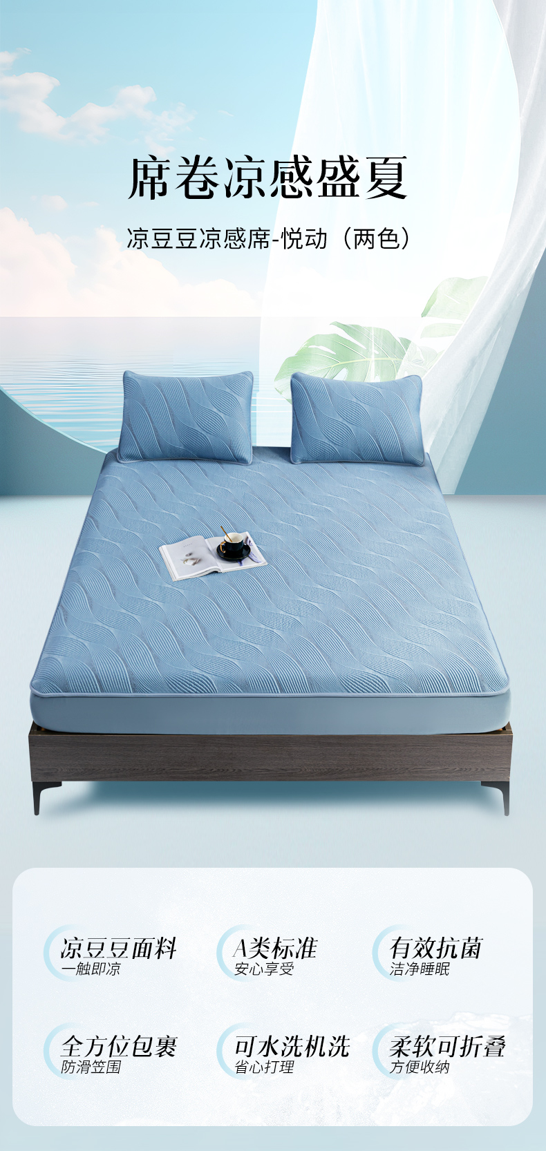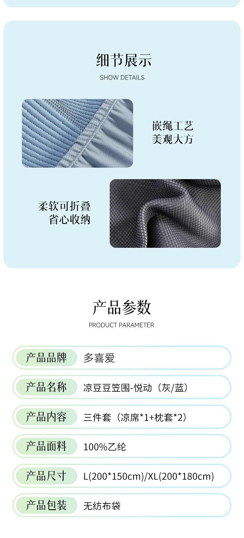 多喜爱 凉豆豆笠围三件套-悦动(蓝/灰)【可水洗机洗】【柔软可折叠】【凉感值0.28】【全方位包裹】 凉席子A类标准 有效抗菌 3D立体凉豆豆