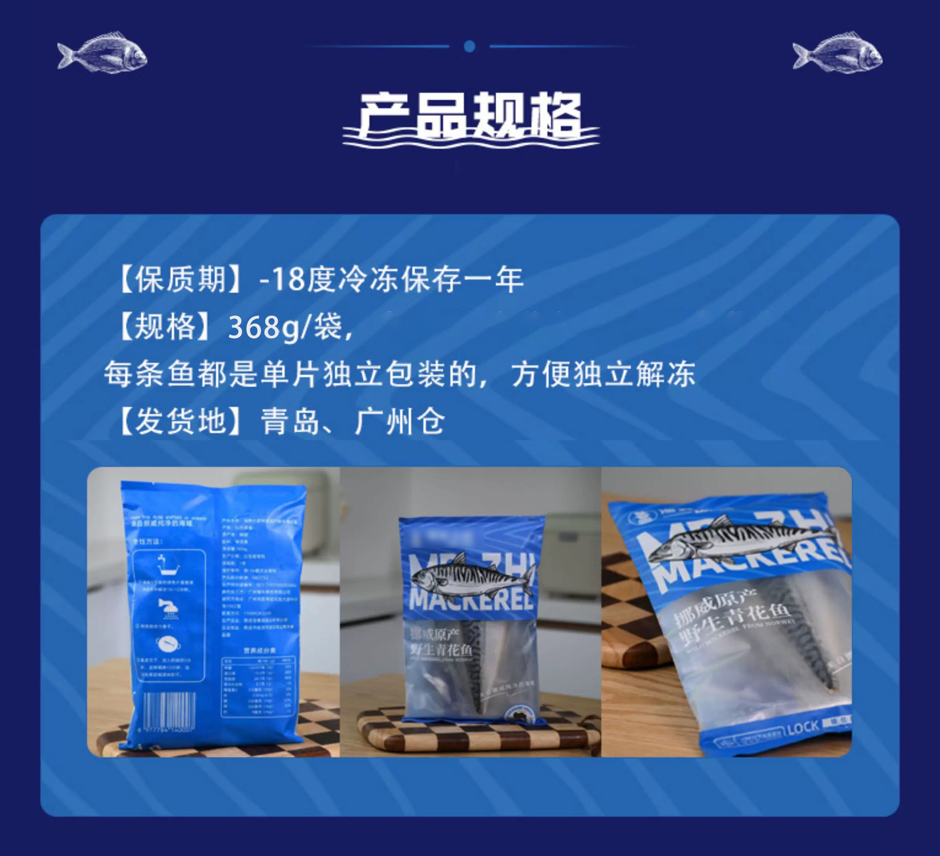 疯抢中!!冷链到家【挪威进口野生青花鱼】鱼油营养丰富 肉质鲜嫩 0添加0调味 368g/袋(2片)