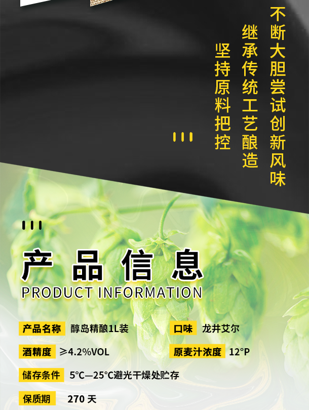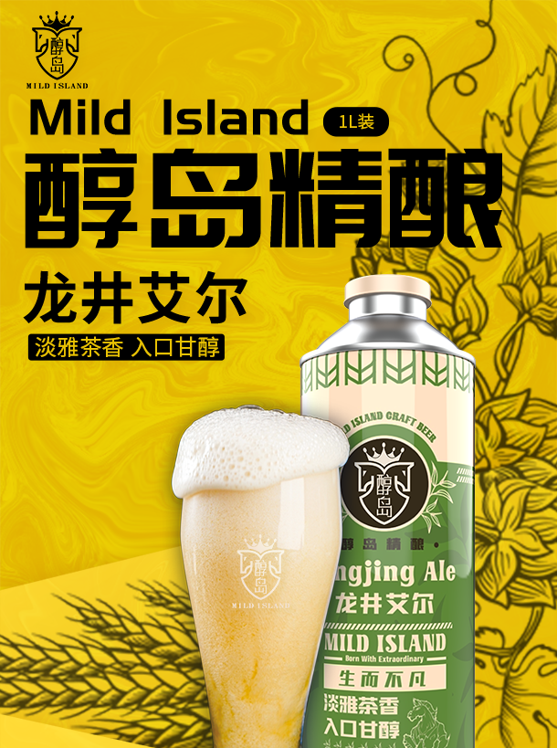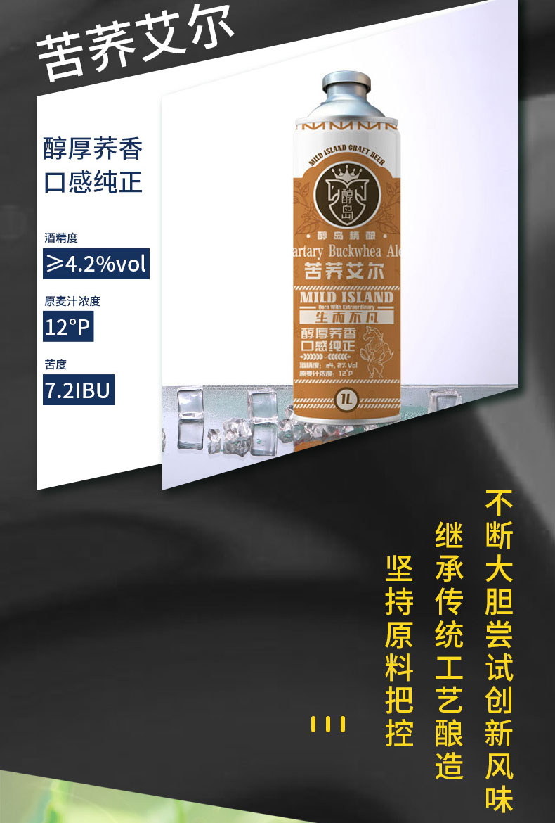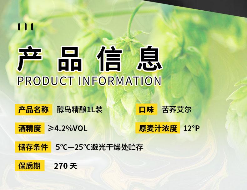 【青岛原产 慢工精酿 原麦汁浓度12°P 】醇岛精酿啤酒 ≥4.2%vol (龙井艾尔/百香果艾尔/苦荞艾尔) 1L装*2瓶