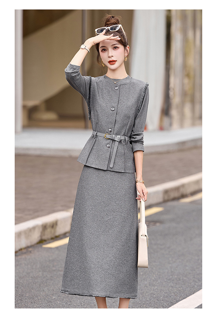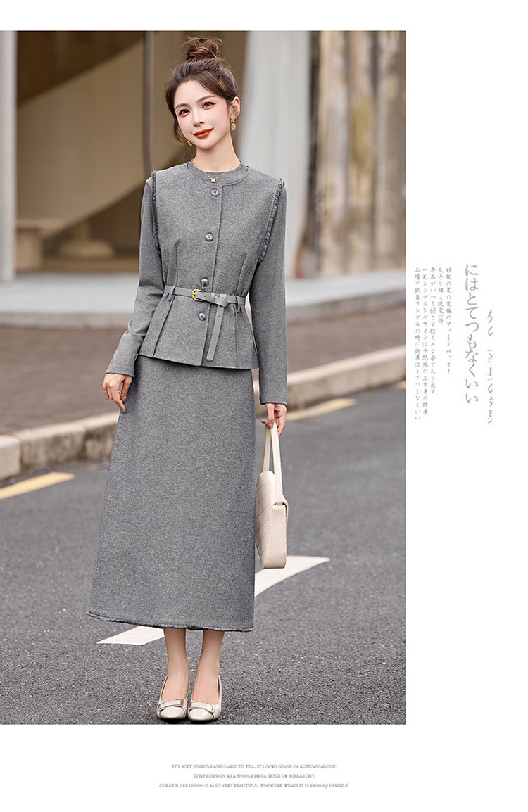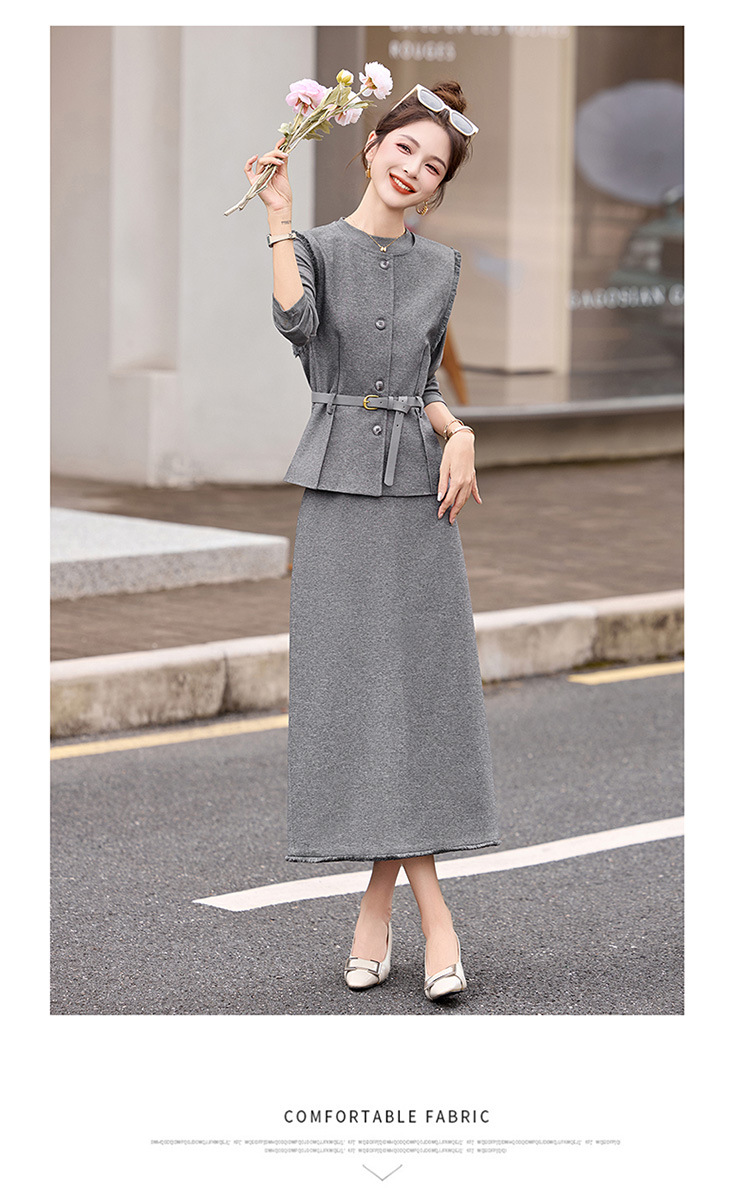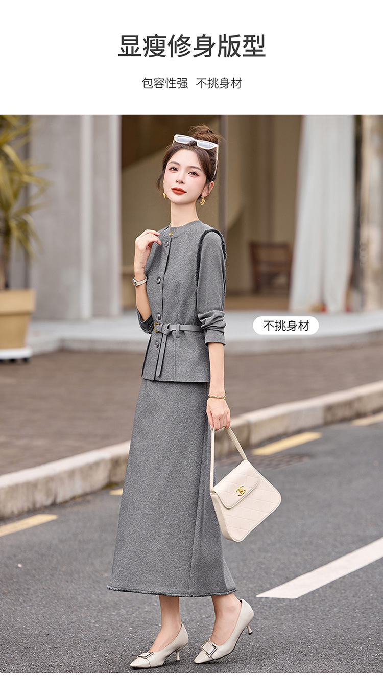 HR YBX8609韩系气质毛边马甲套装系带收腰半身裙三件套 商品图4
