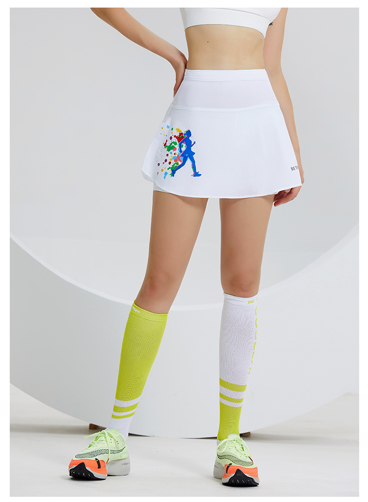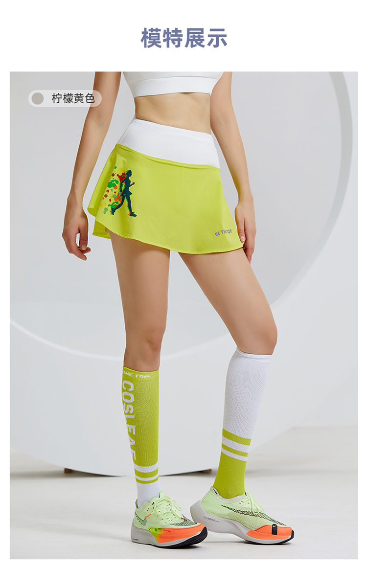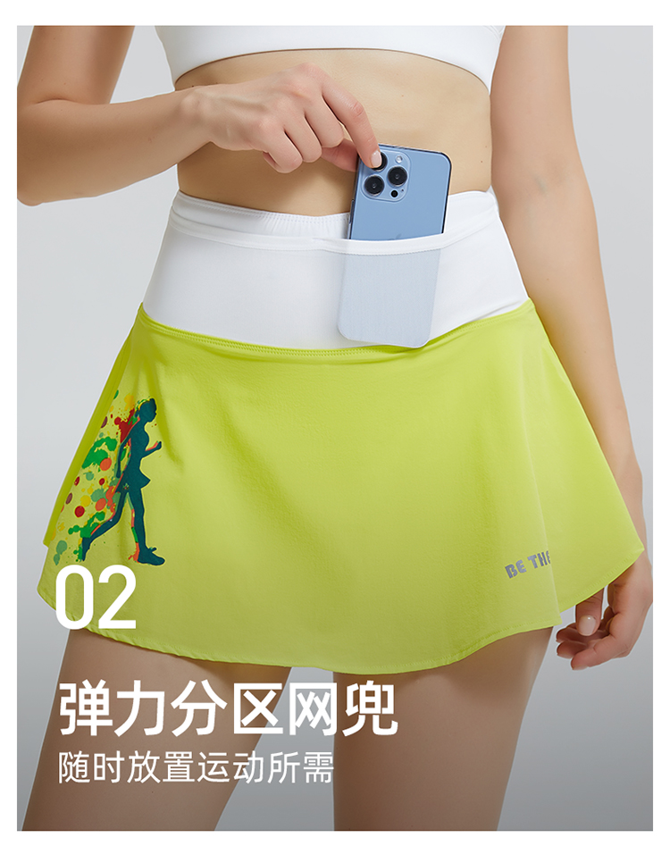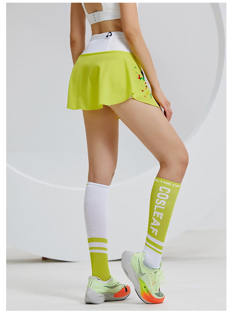 科里芙 假两件印花短裙全腰围多口袋健身裙跑步运动女半身裙