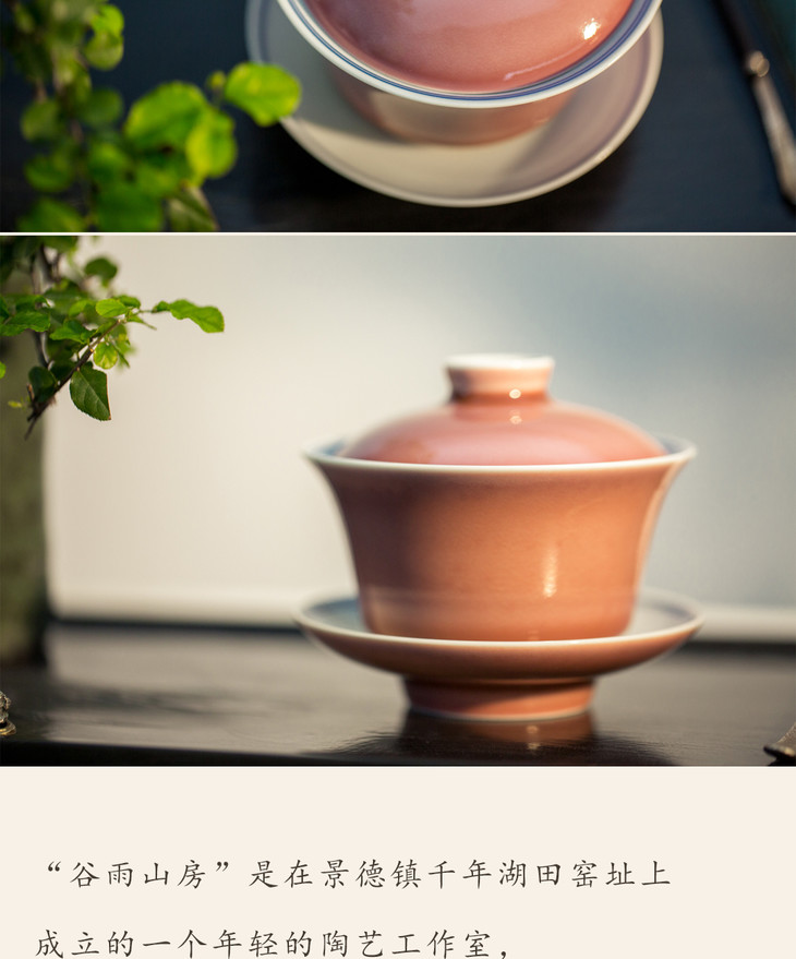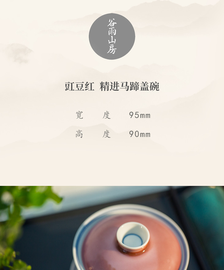 「茶器」豇豆红精进马蹄盖碗