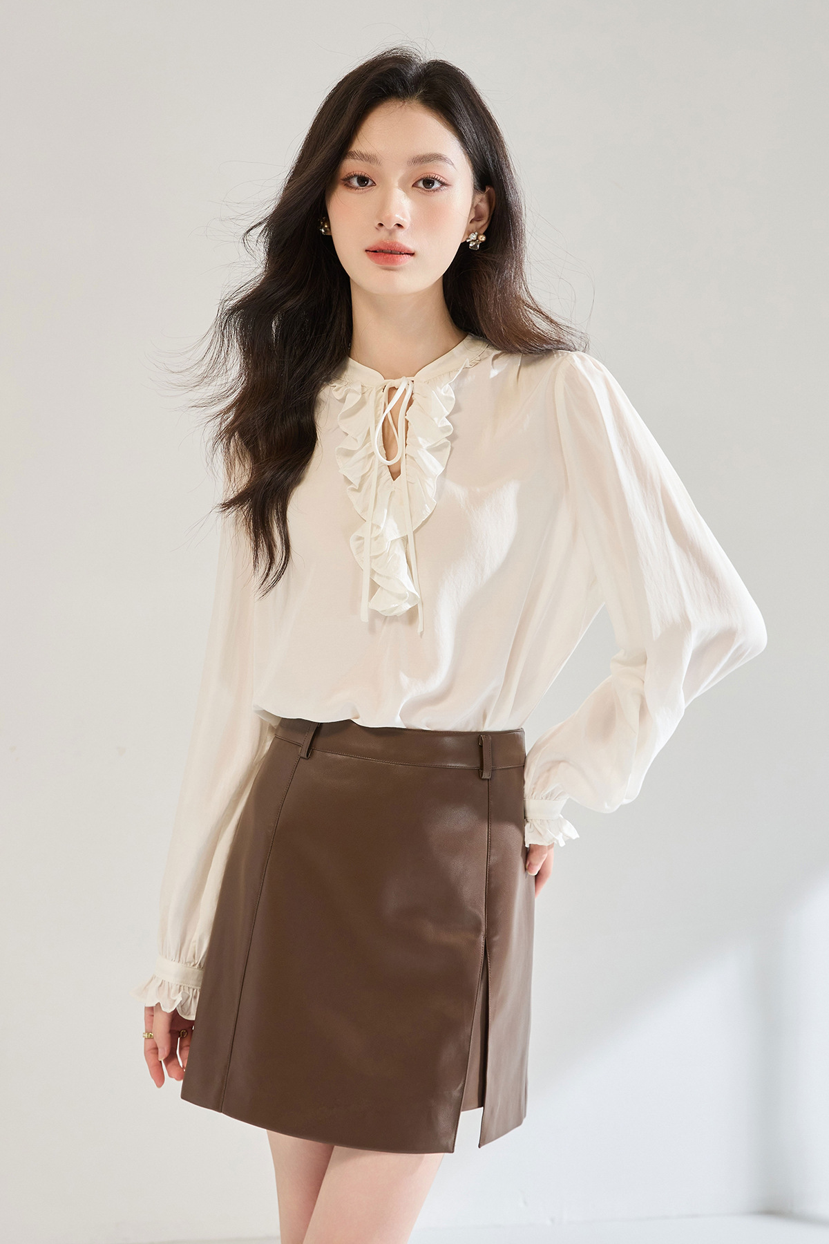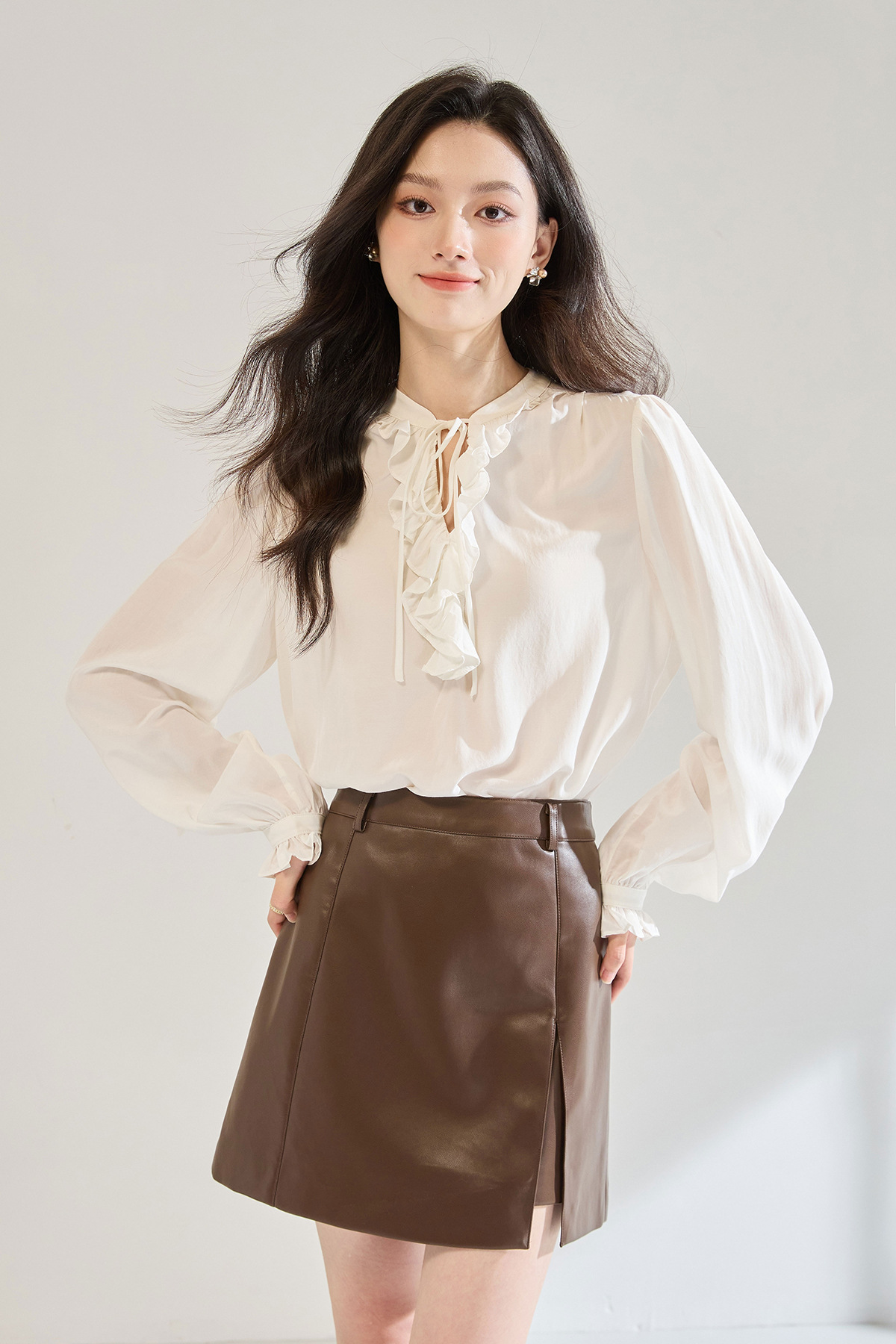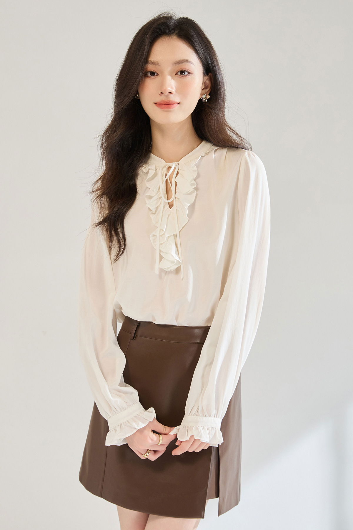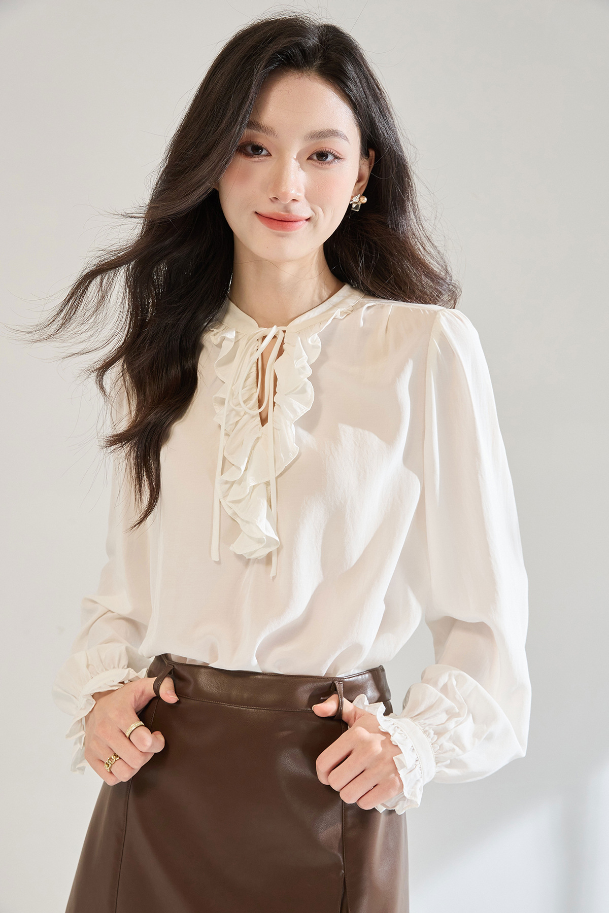 「高货sh」全新升级【铂金会员183/天猫239/差价56】(14200)洛诗琳法式荷叶边系带衬衫2025秋季浪漫天丝雪纺上衣女