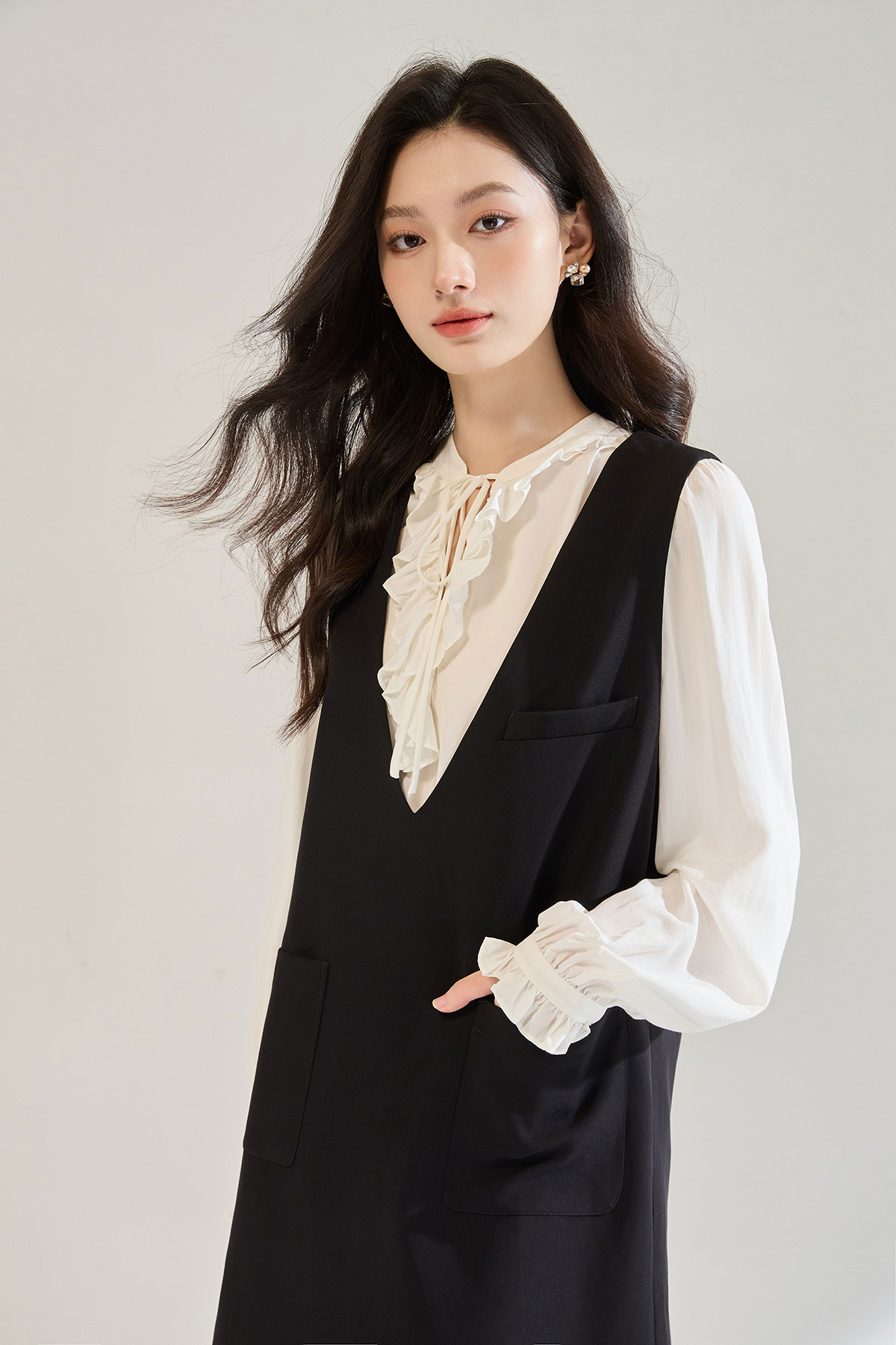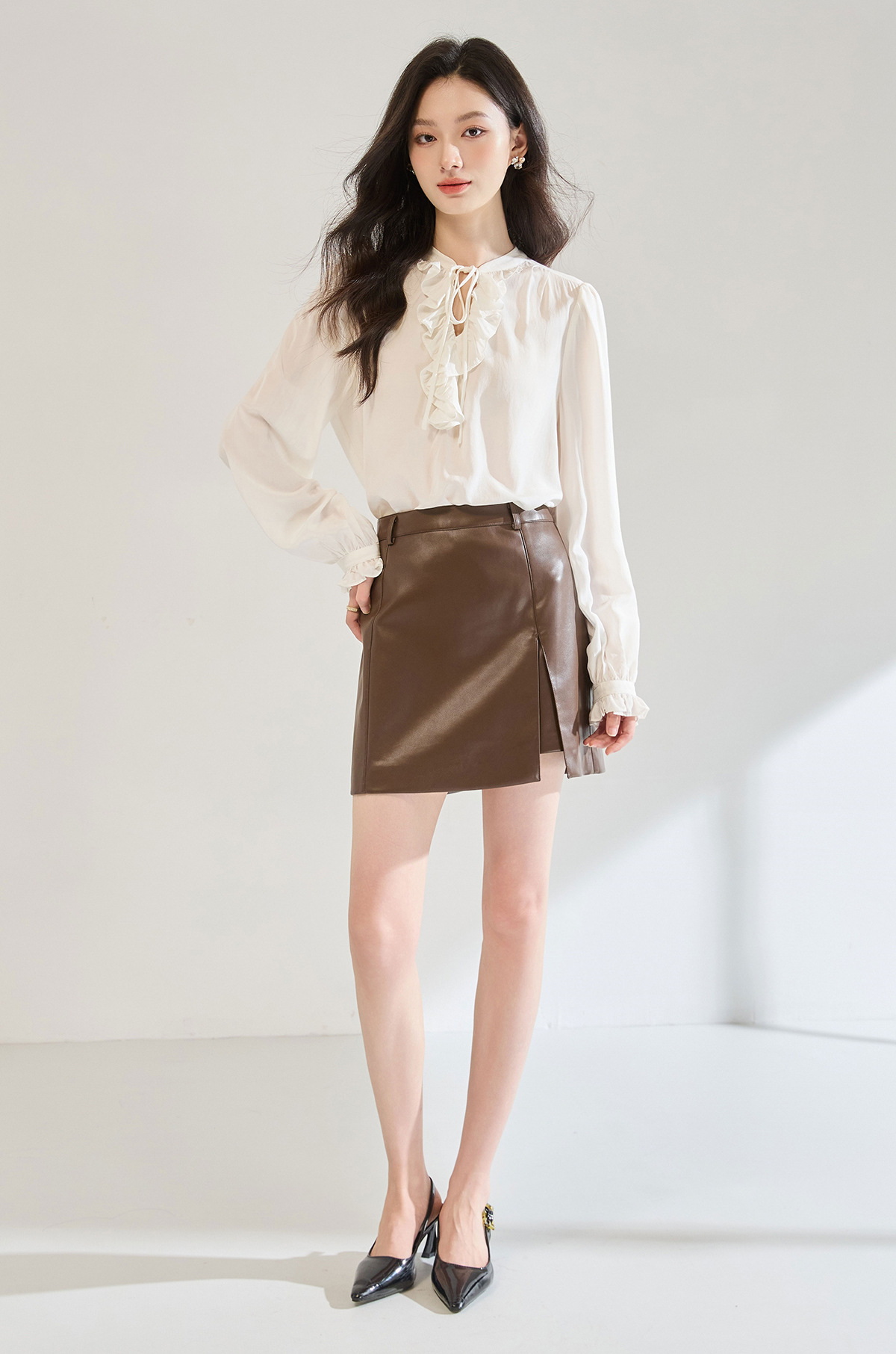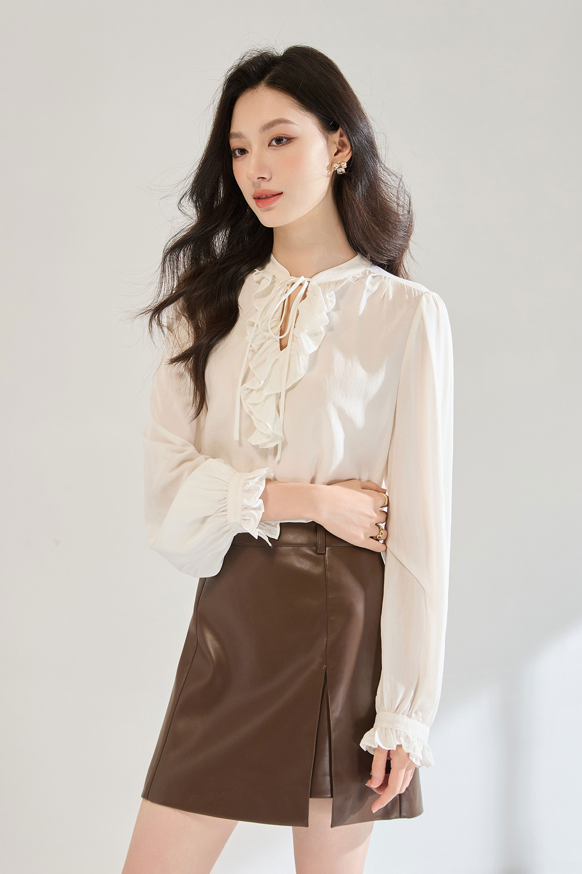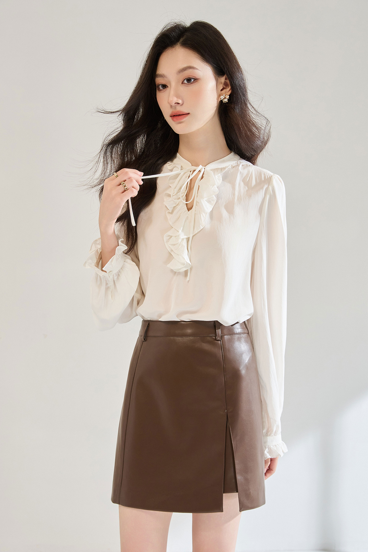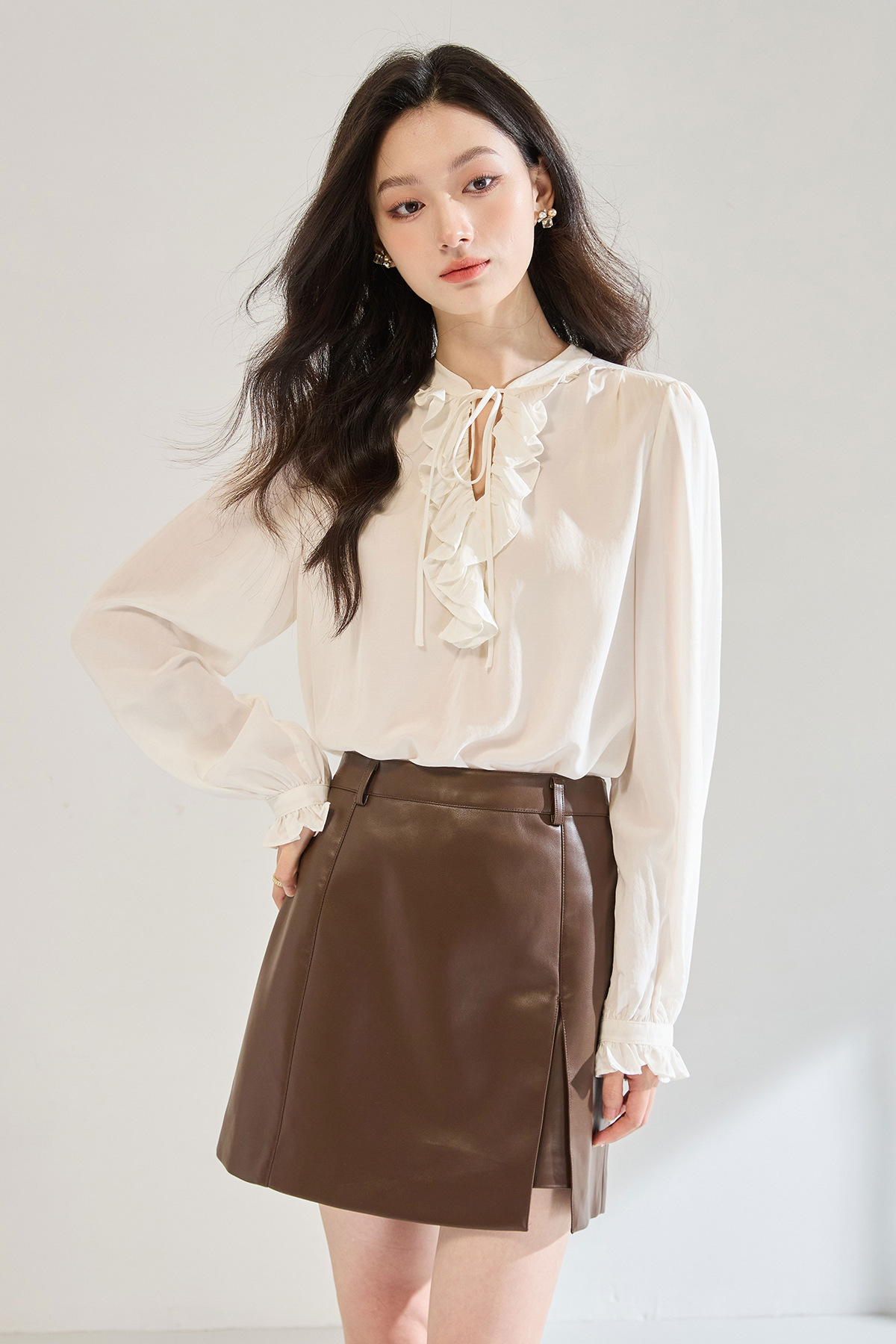 「高货sh」全新升级【铂金会员183/天猫239/差价56】(14200)洛诗琳法式荷叶边系带衬衫2025秋季浪漫天丝雪纺上衣女