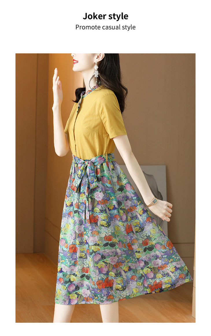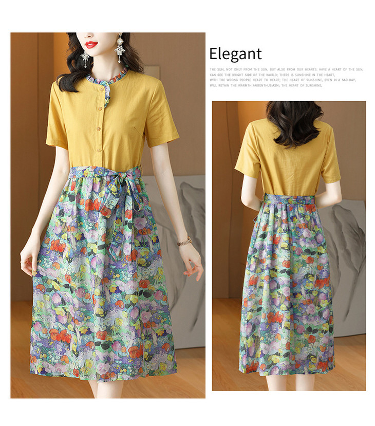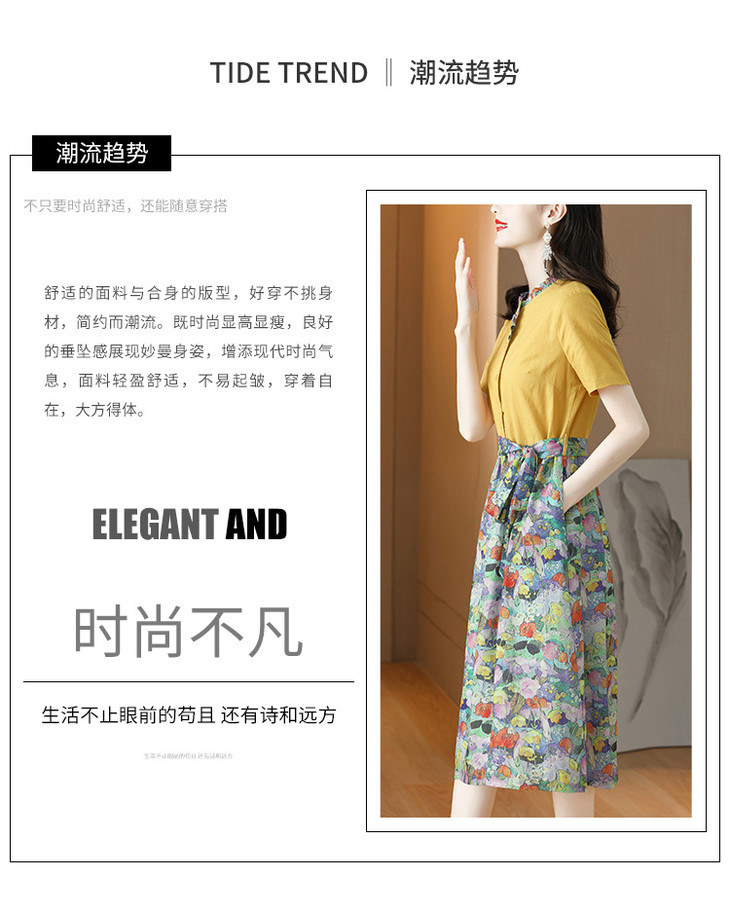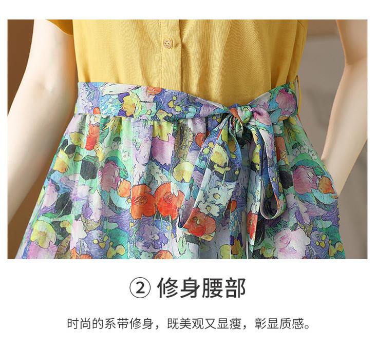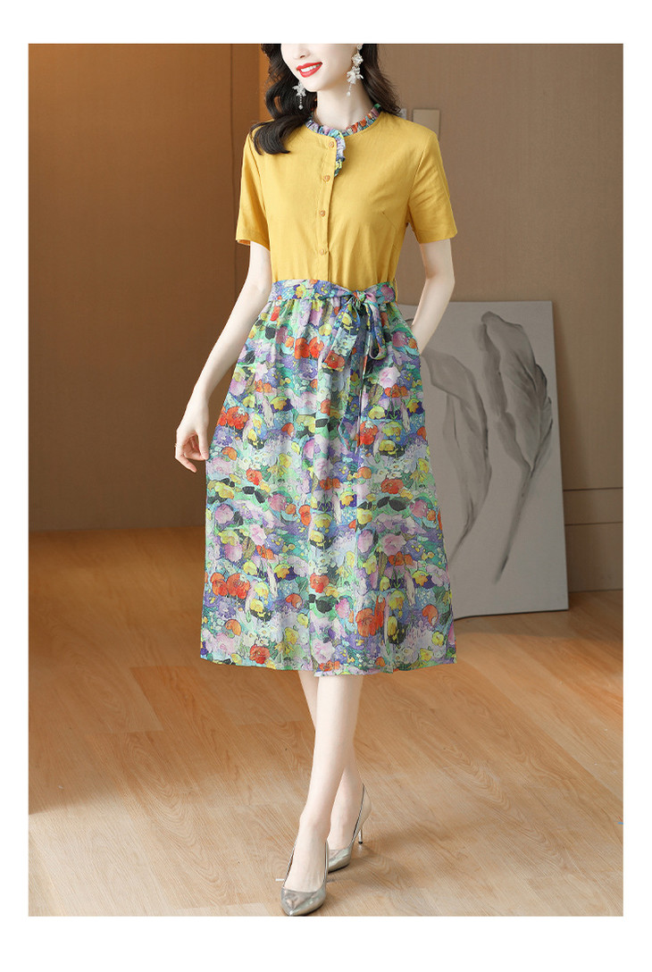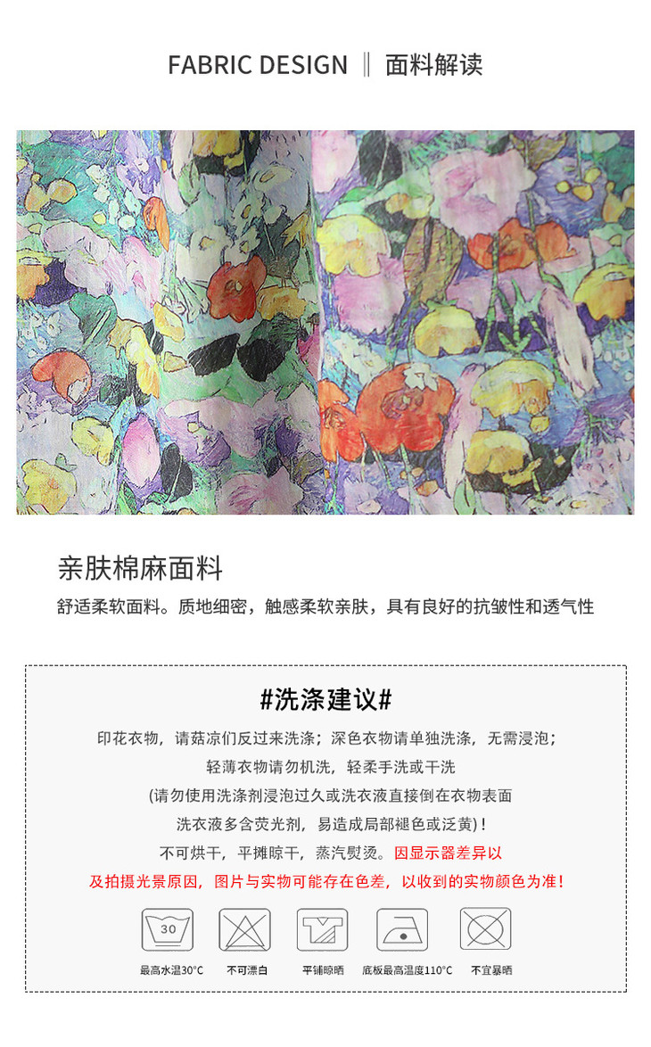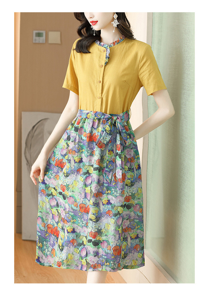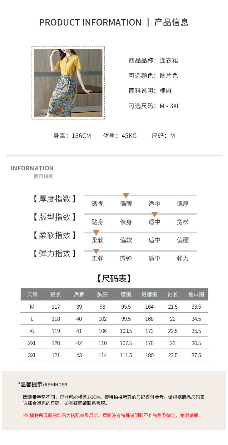AHM-xxnz6036时尚优雅减龄木耳边裙子棉麻拼接碎花连衣裙