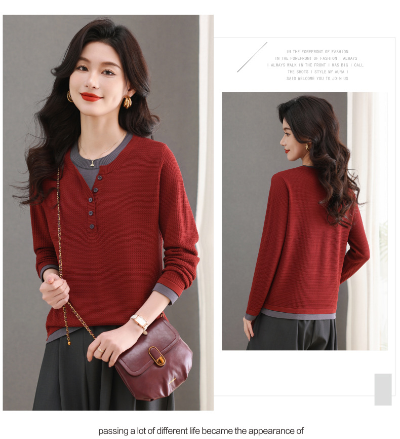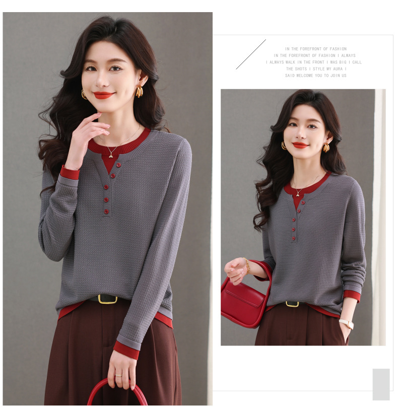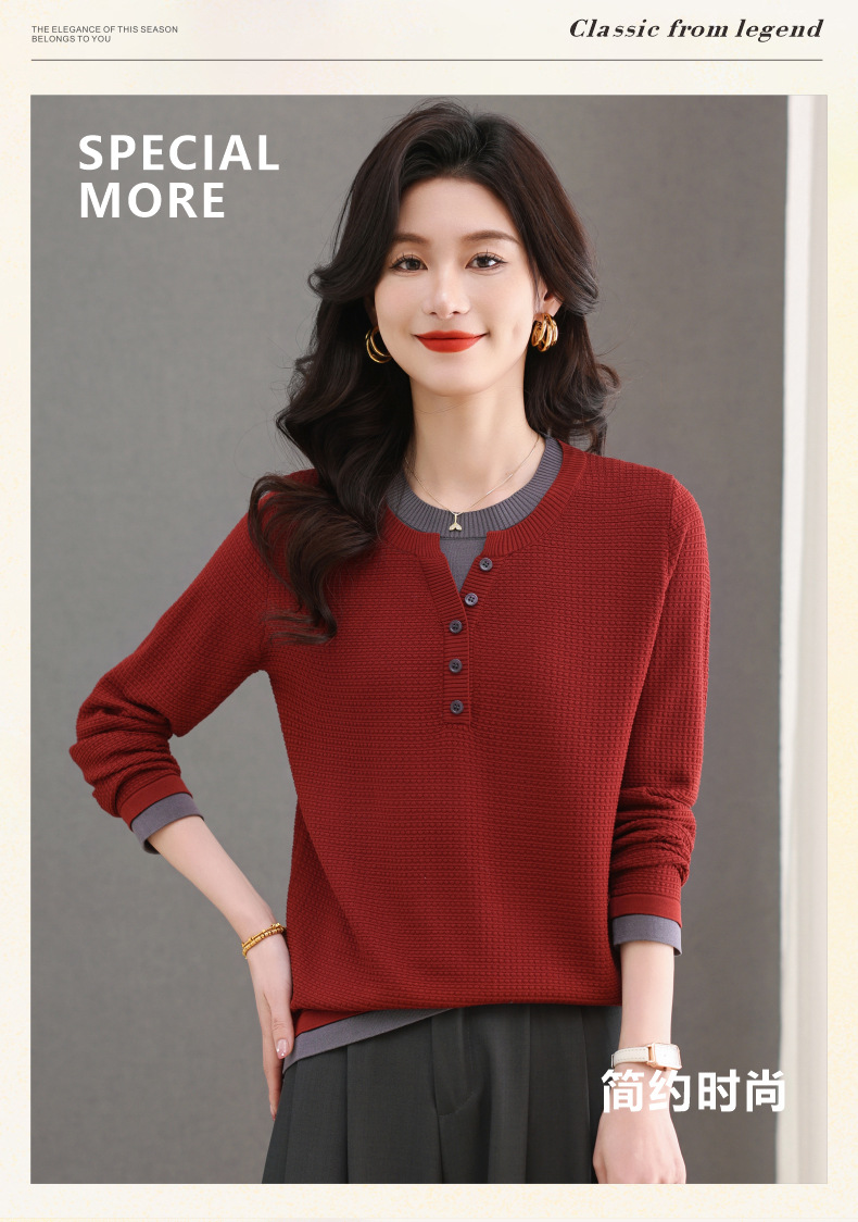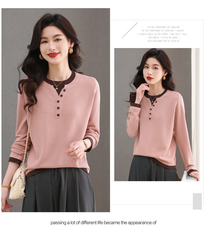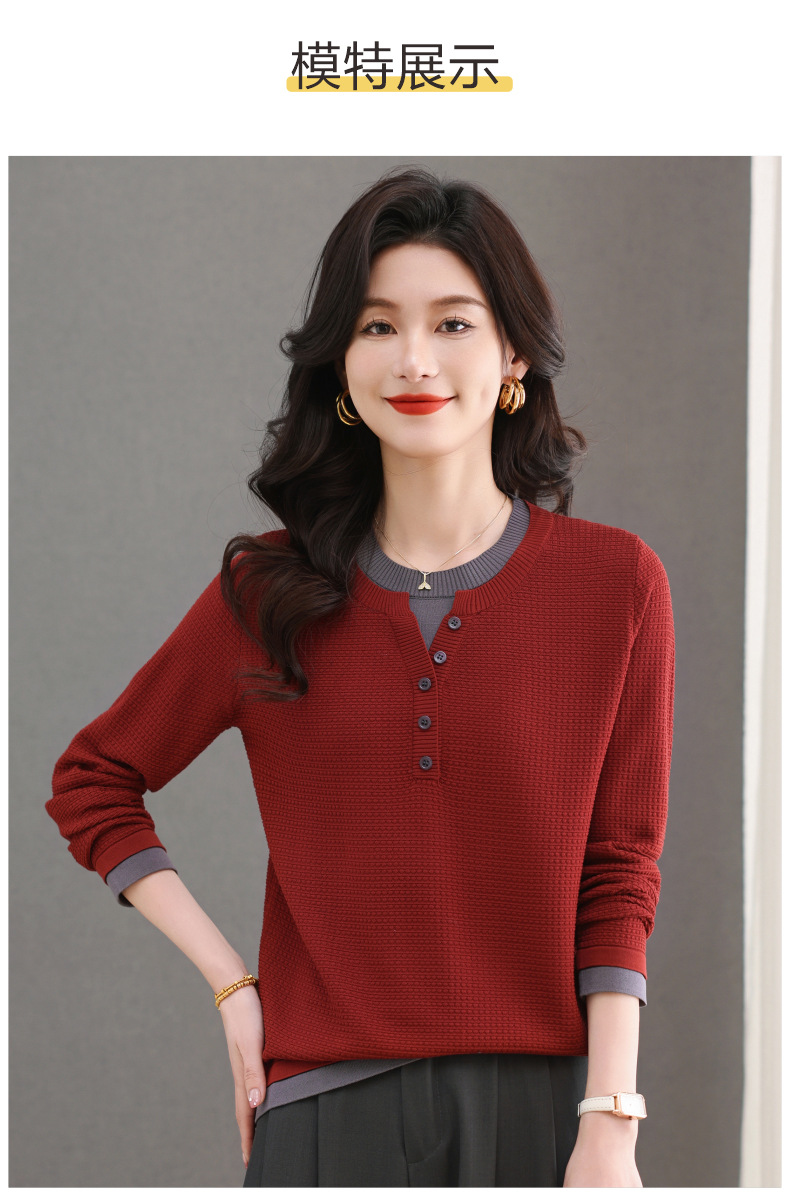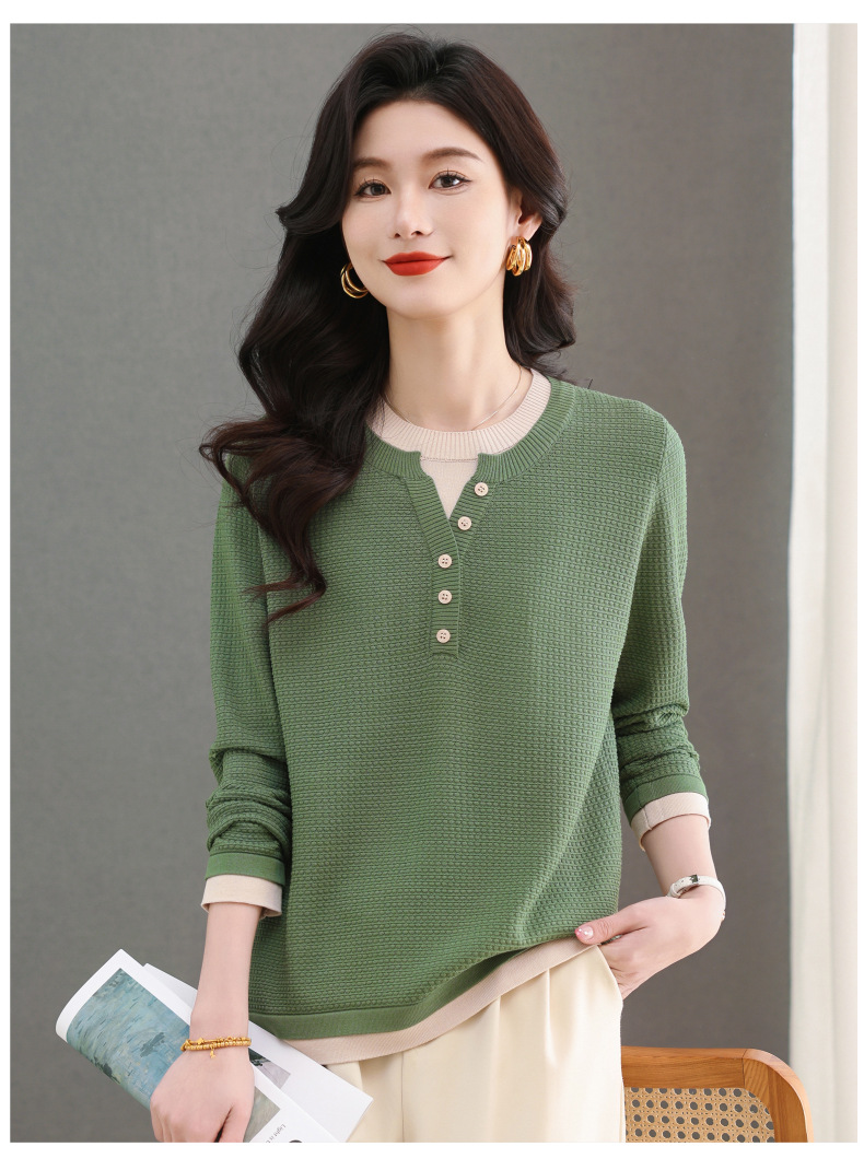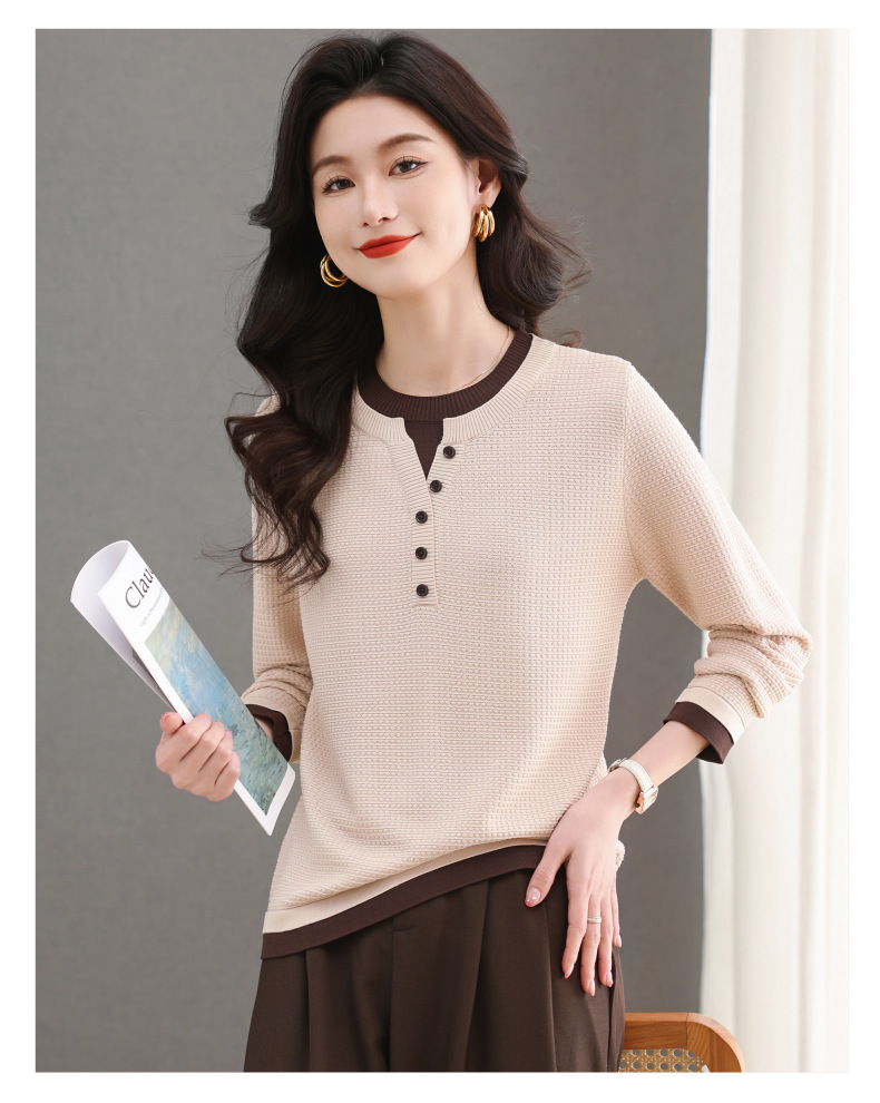CC-103-8233假两件长袖t恤女2025春装新款宽松显瘦遮肚子毛衣洋气针织打底衫