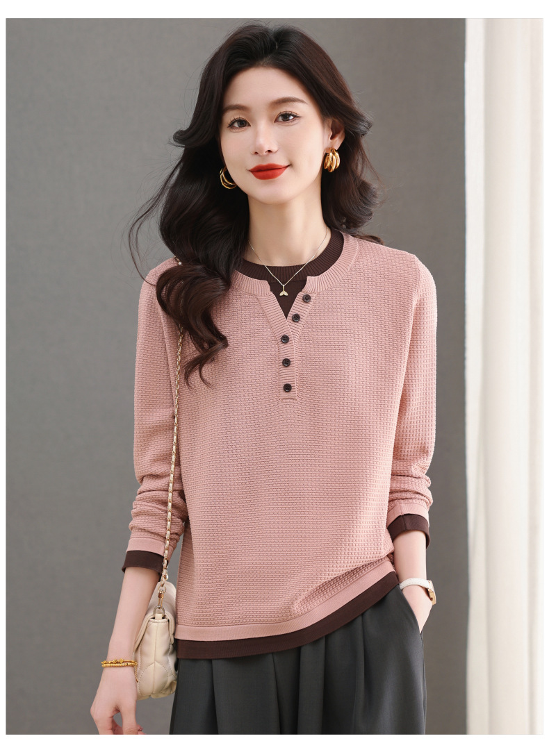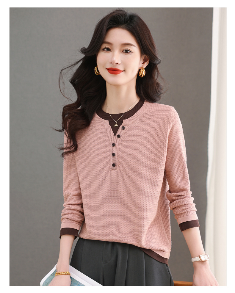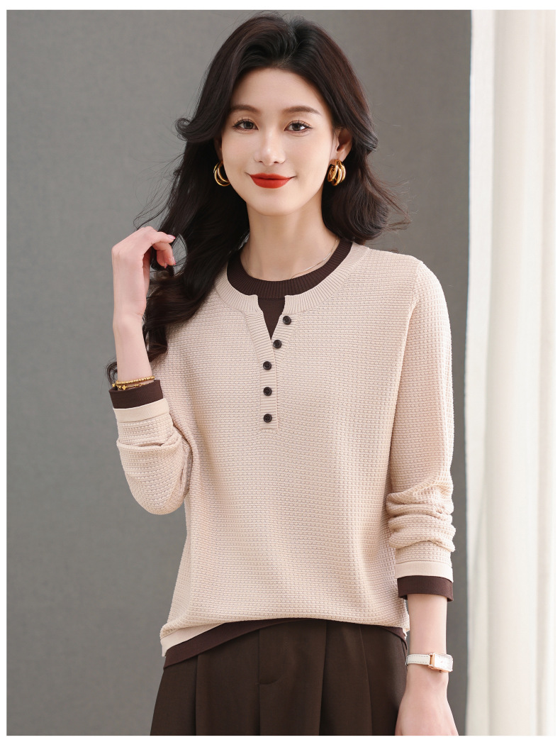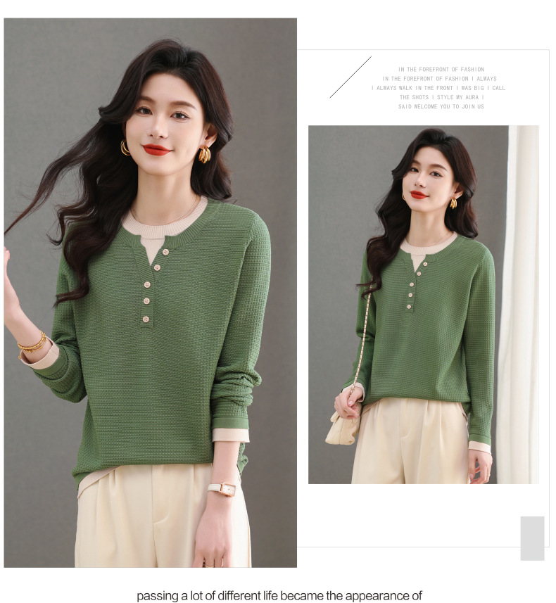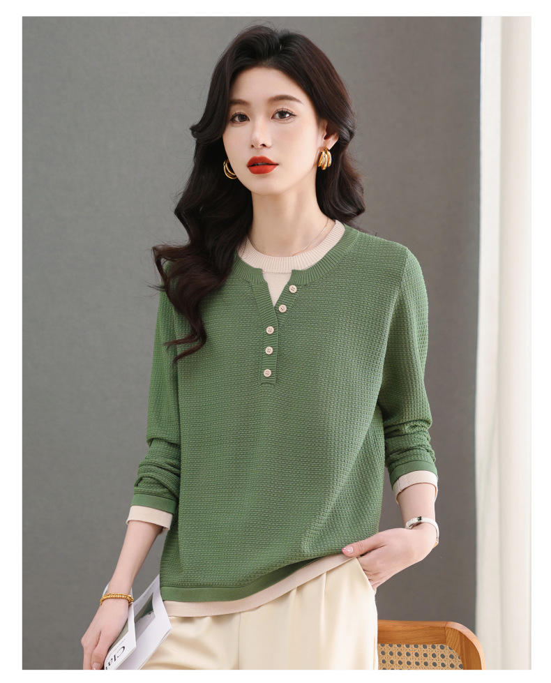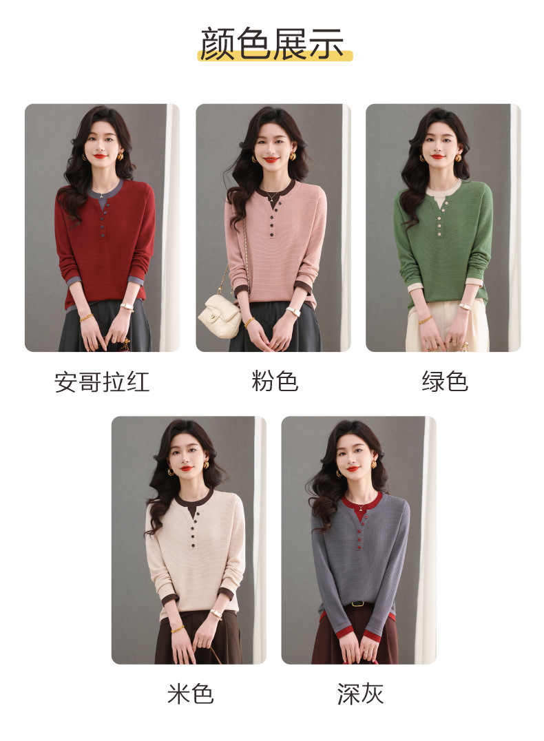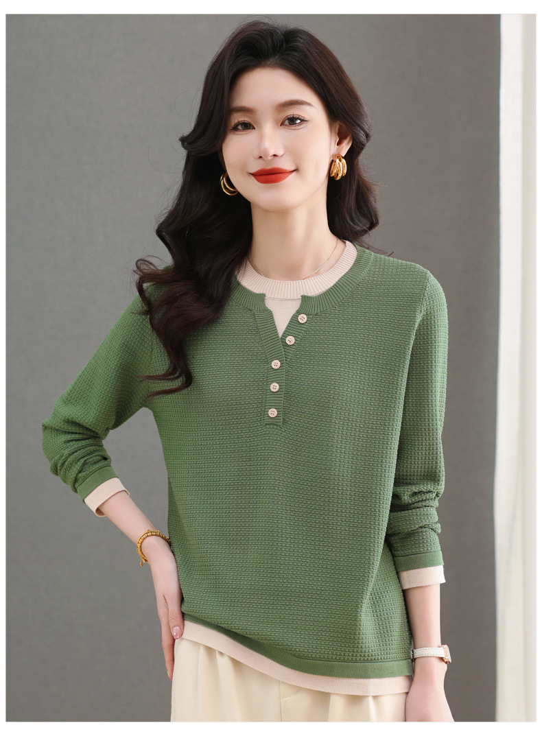 CC-103-8233假两件长袖t恤女2025春装新款宽松显瘦遮肚子毛衣洋气针织打底衫