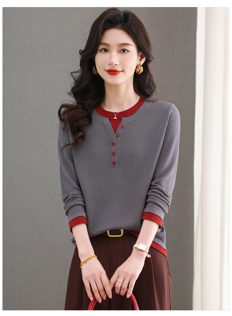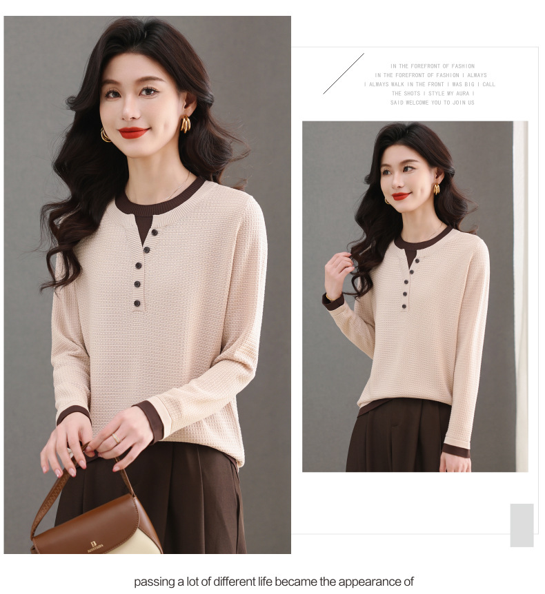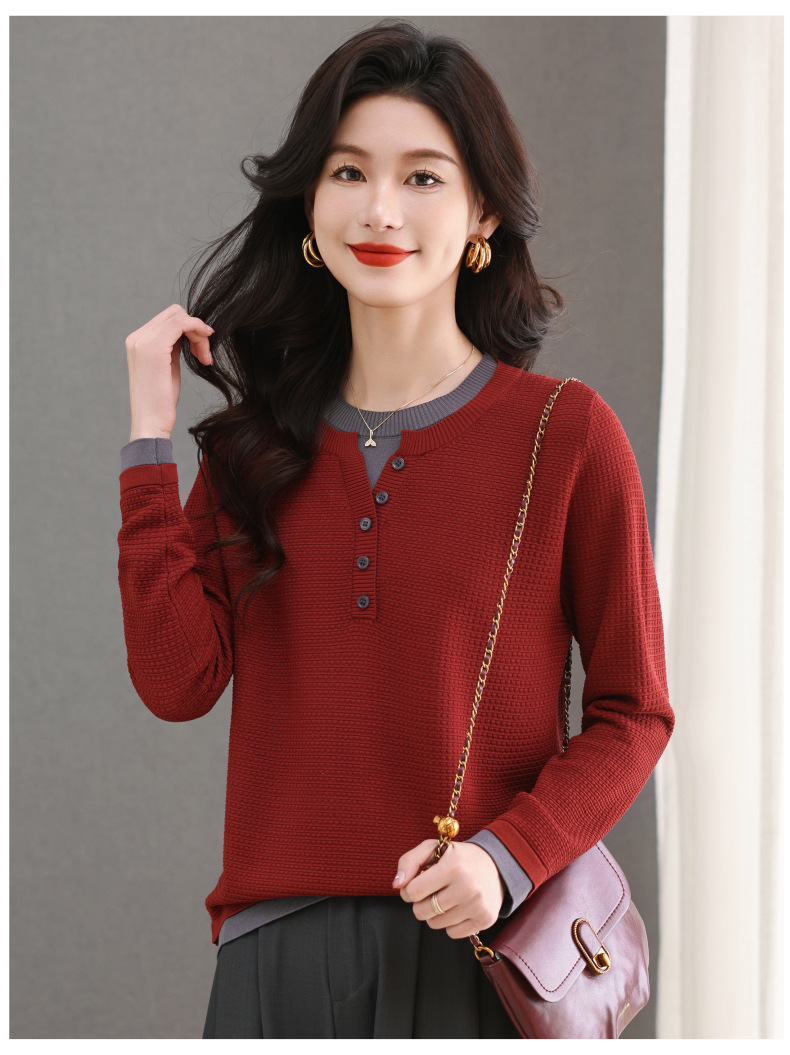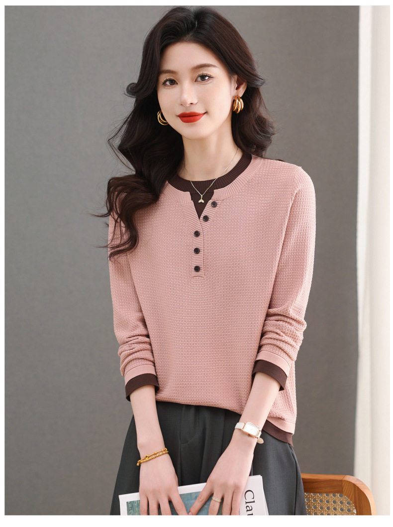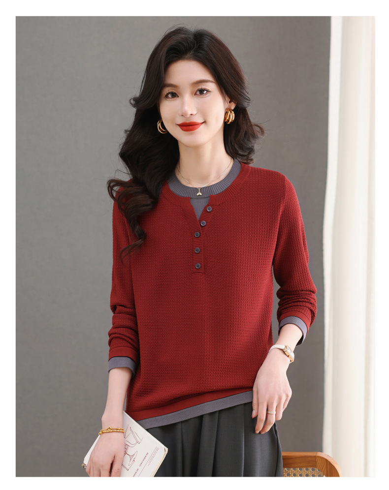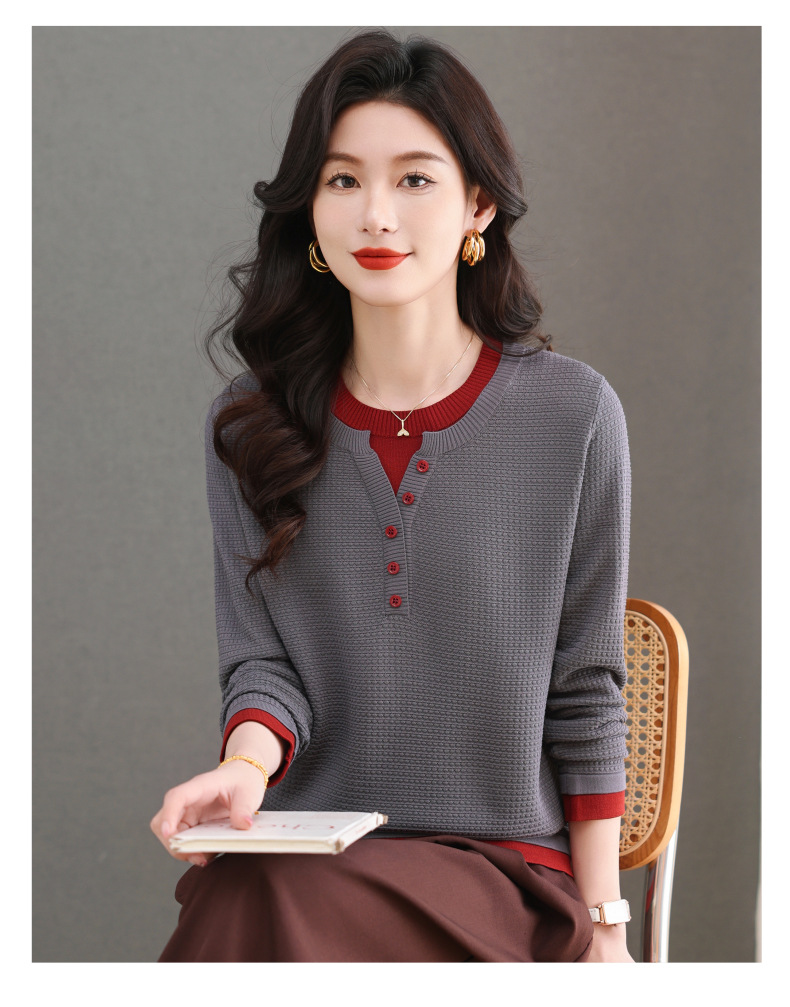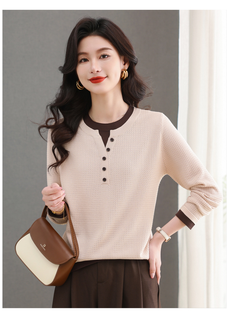 CC-103-8233假两件长袖t恤女2025春装新款宽松显瘦遮肚子毛衣洋气针织打底衫