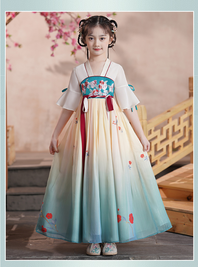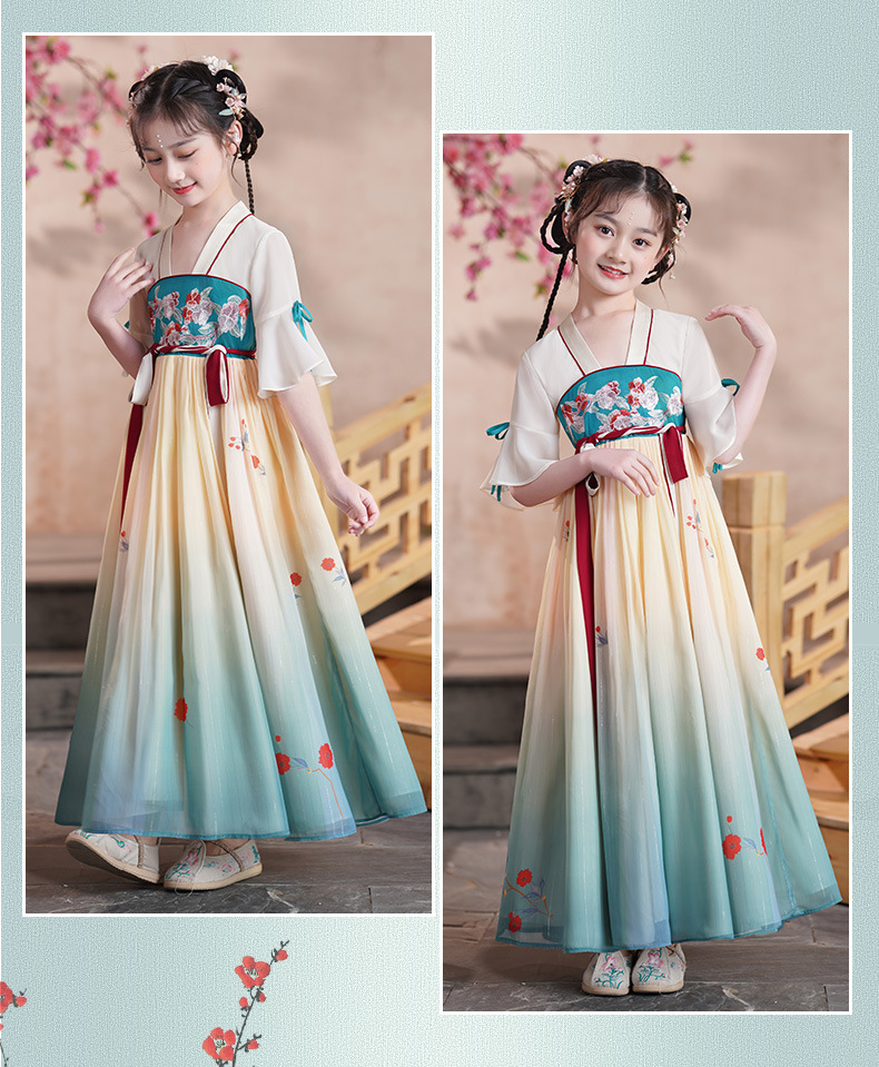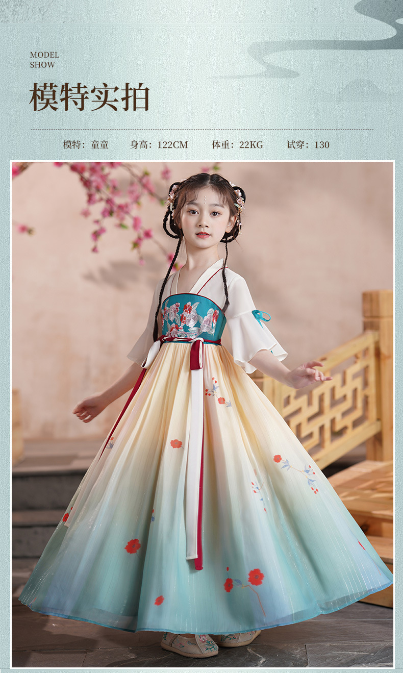 ST-24P2207夏季汉服女童古装襦裙仙儿童唐装小女孩古风连衣裙夏款