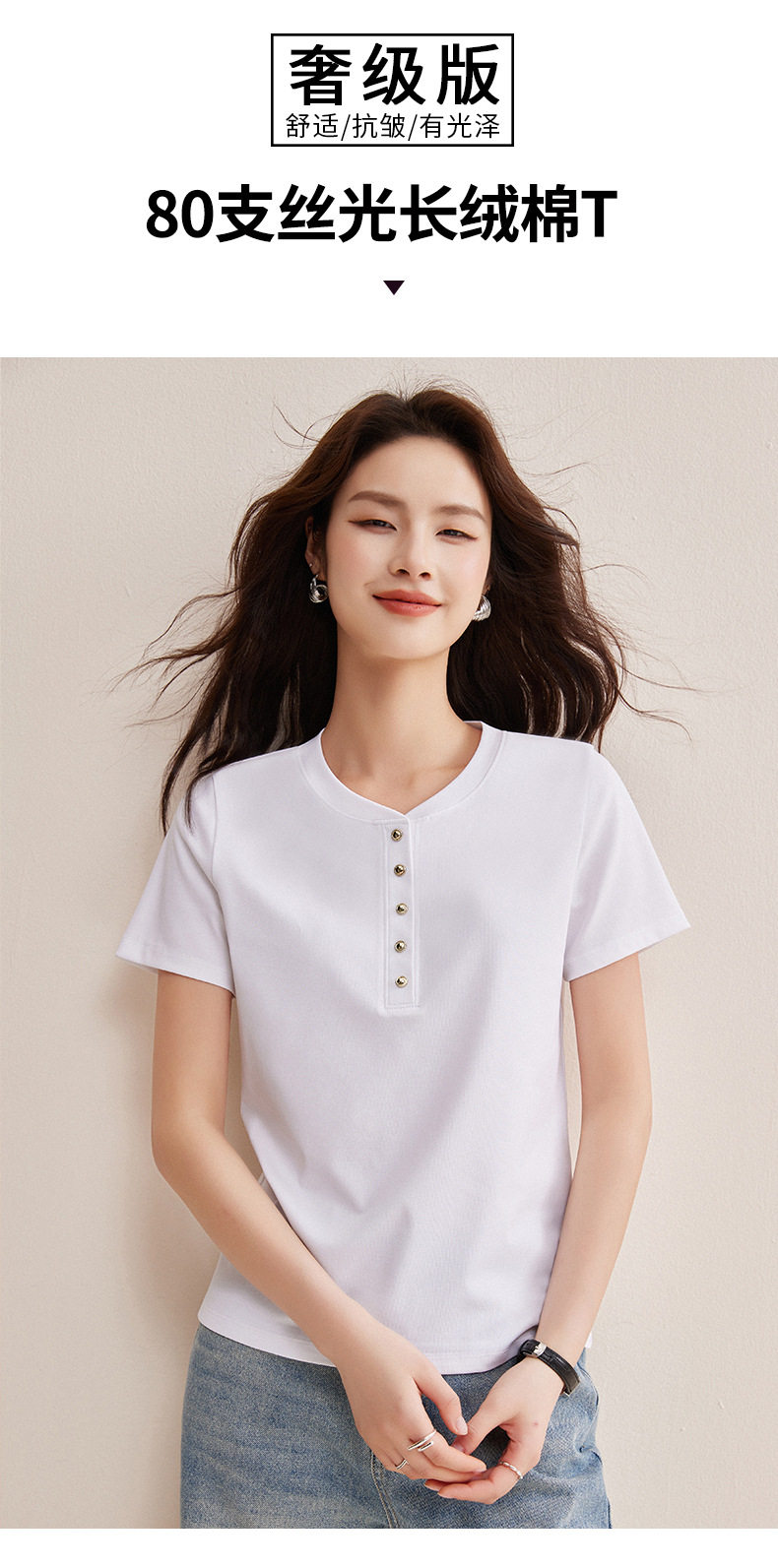 「自j」全新升级【铂金会员119/天猫159/差价40】(13325)洛诗琳80支丝光棉T恤女2026夏新款排扣正肩显瘦短袖上衣