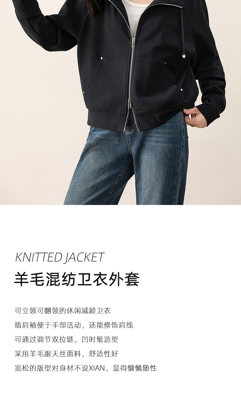 「高货xg」全新升级【铂金会员211/天猫279/差价68】(41900)洛诗琳新款拉链卫衣外套2025秋季羊毛混纺休闲夹克上衣女