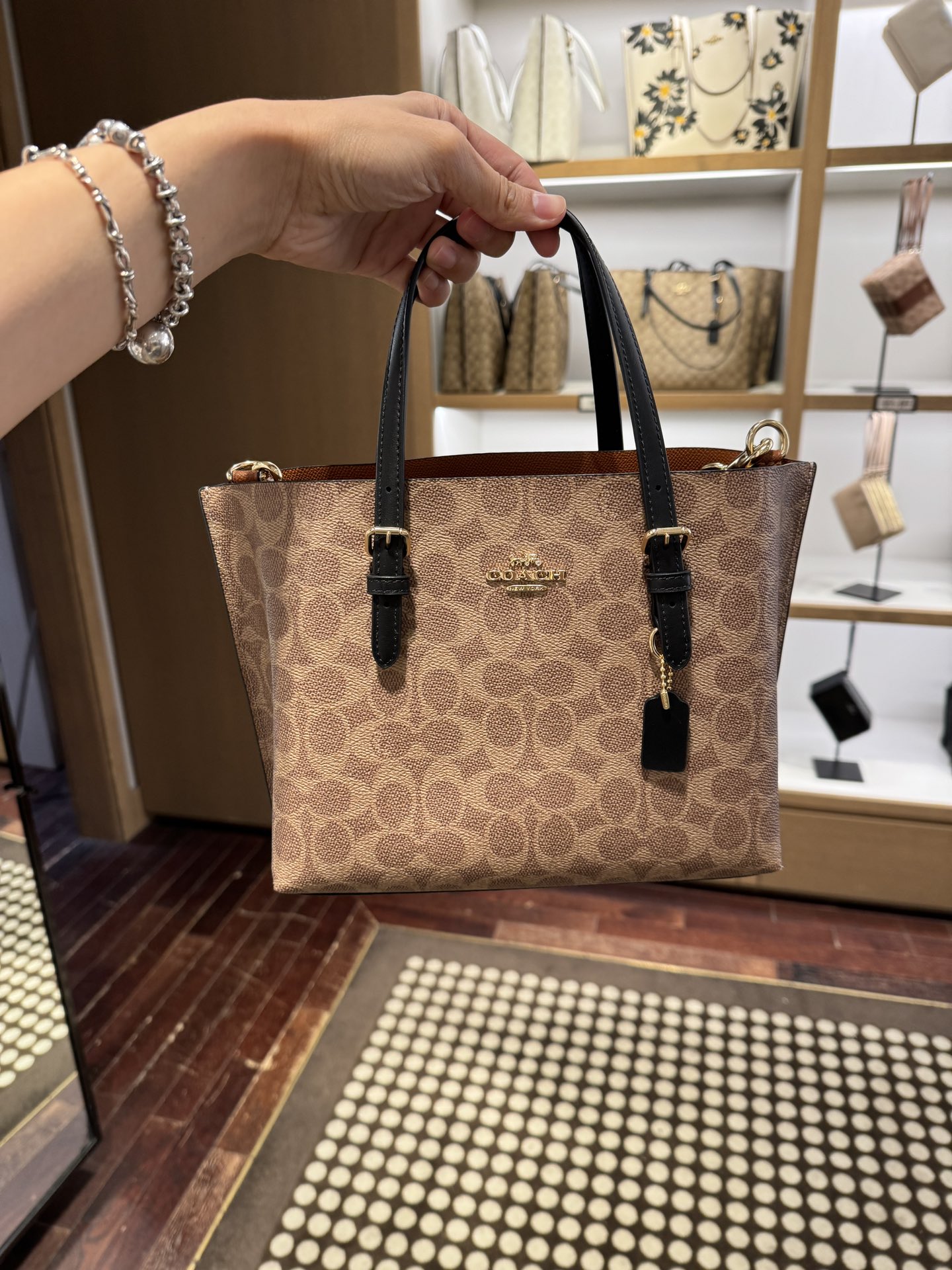 到手价1899元 Coach爆款 mollie 25小号托特 25*19cm 棕色老花 美国代购,无中文标签,介意慎拍