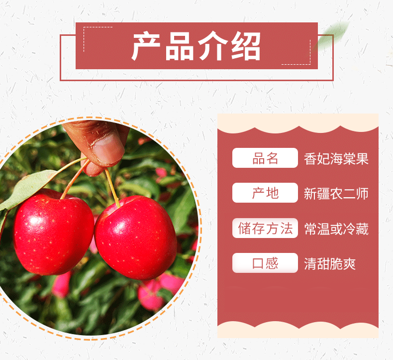 【果蔬精选】新疆香妃海棠果(顺丰直达)新鲜采摘 苹果和海棠的结晶 娇小玲珑 颜值可人 口感独特 果肉脆甜 带“香妃”的水果皆不凡
